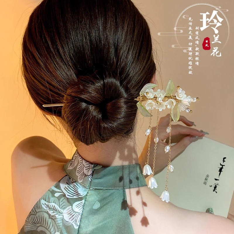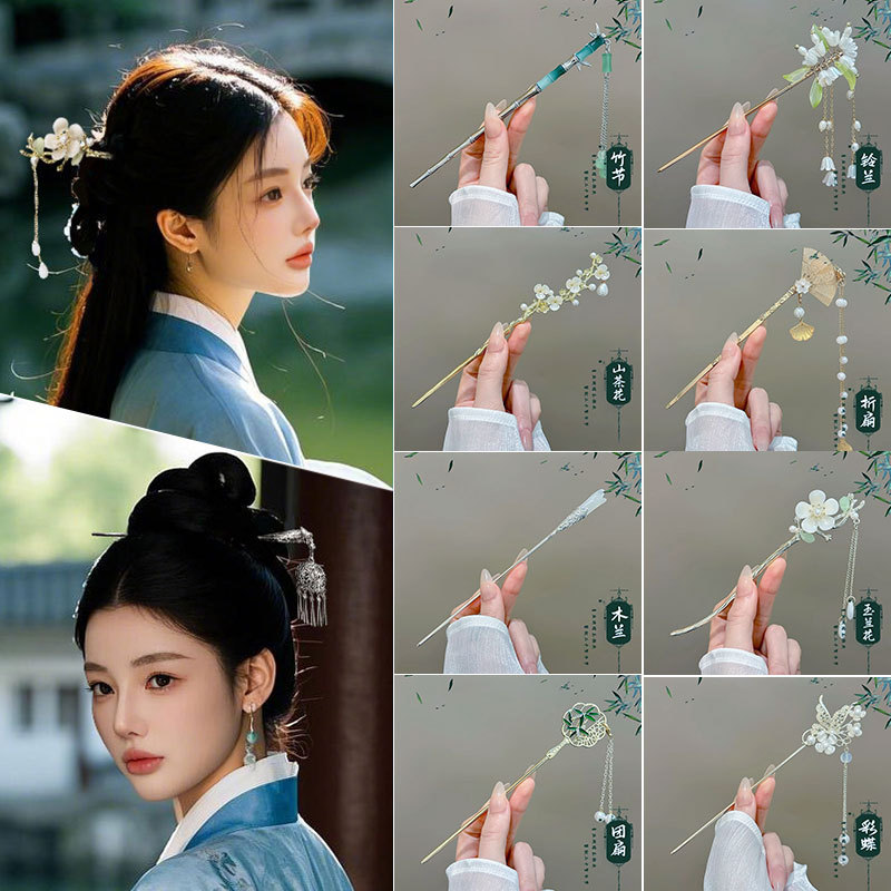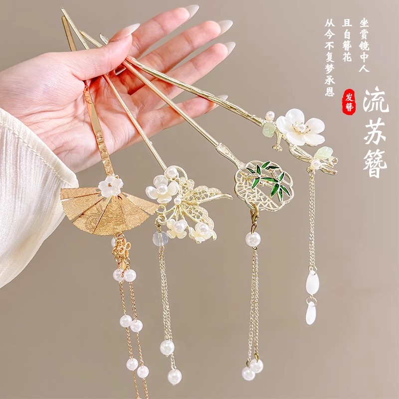 发簪古风檀木簪高级感手工流苏发钗盘发簪子新中式汉服精致发饰女