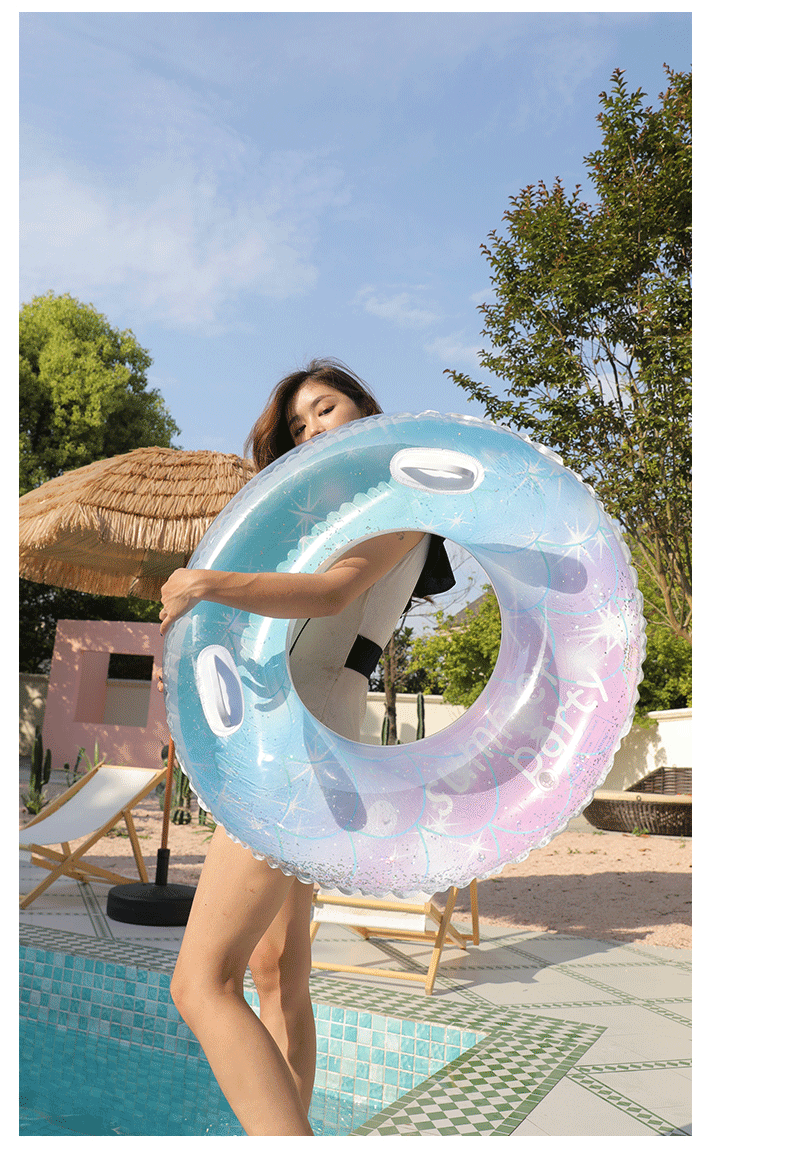 夏日新款网红简约风游泳圈成人儿童3-6泳圈充气加厚腋下游泳浮圈