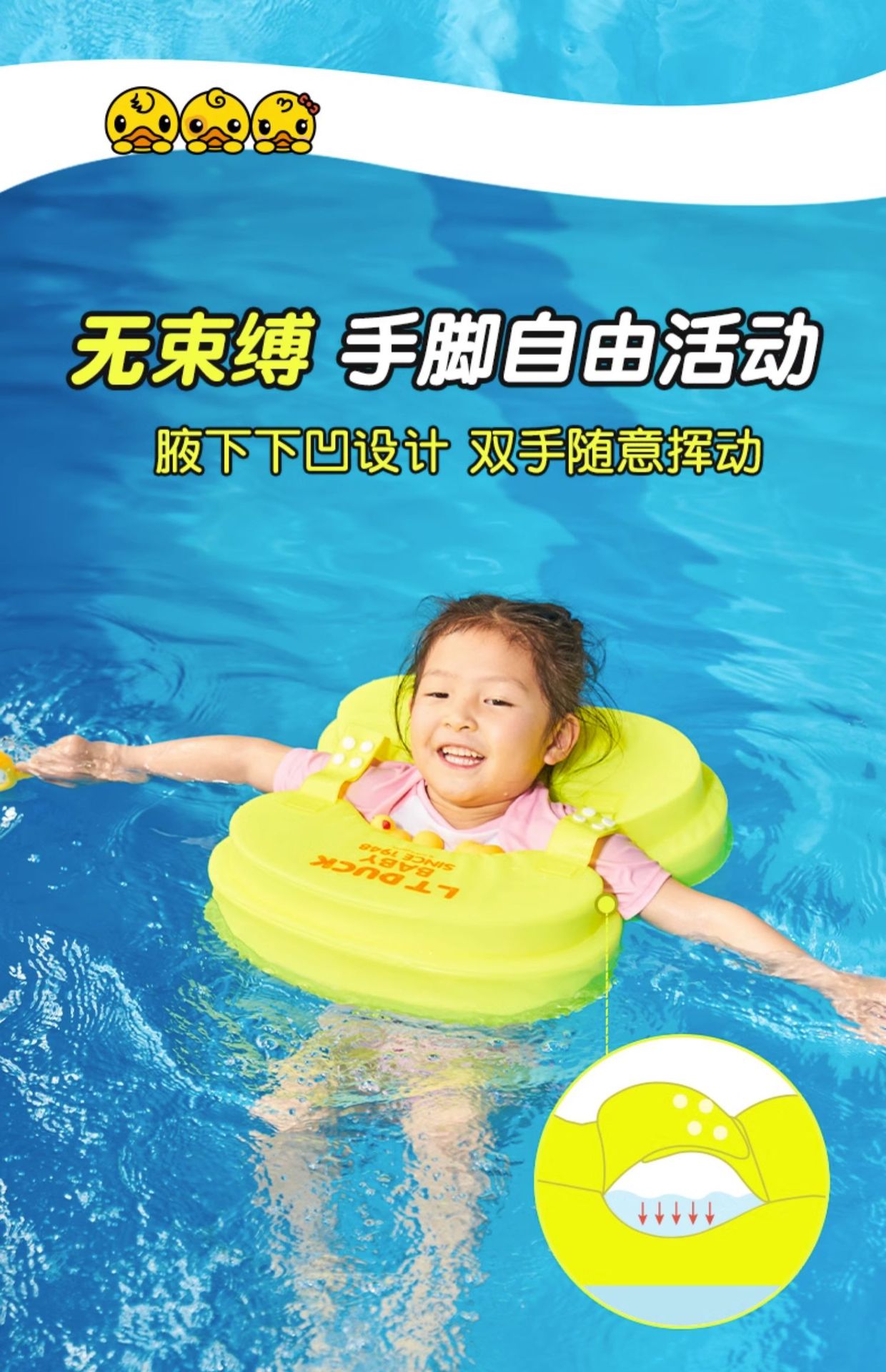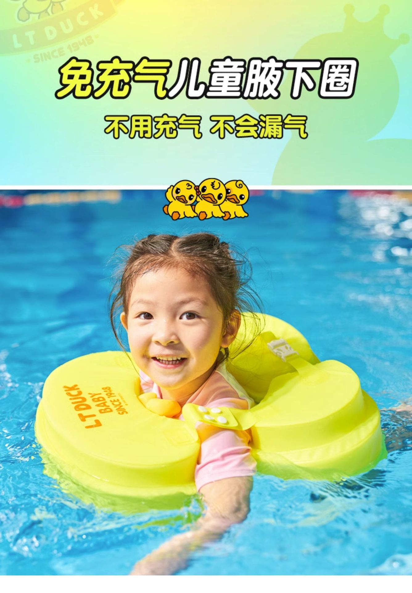 免充气游泳圈婴幼儿泳圈腋下圈3月-10岁男女童防侧翻儿童游泳装备