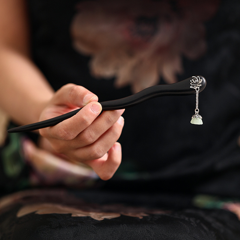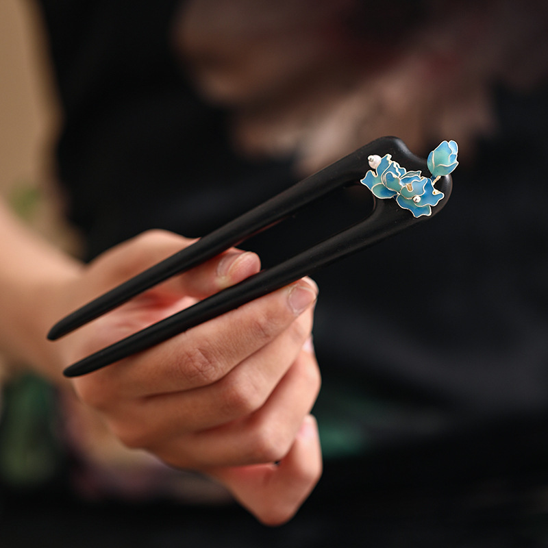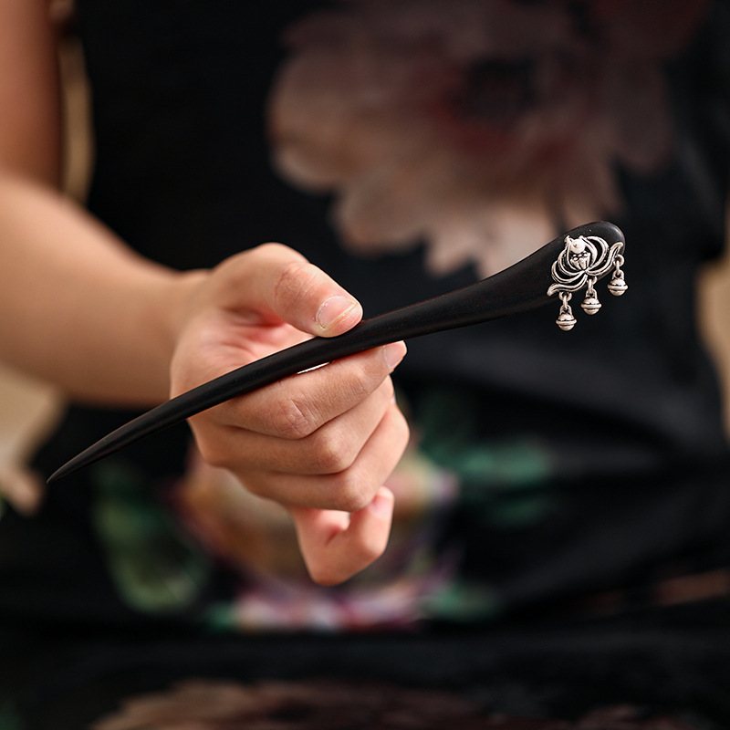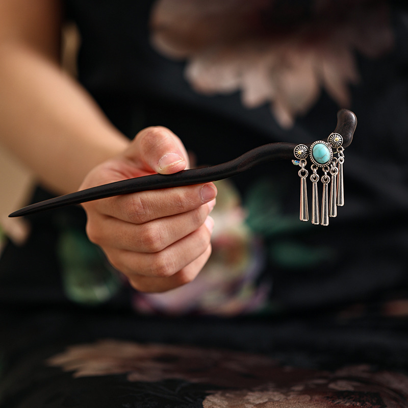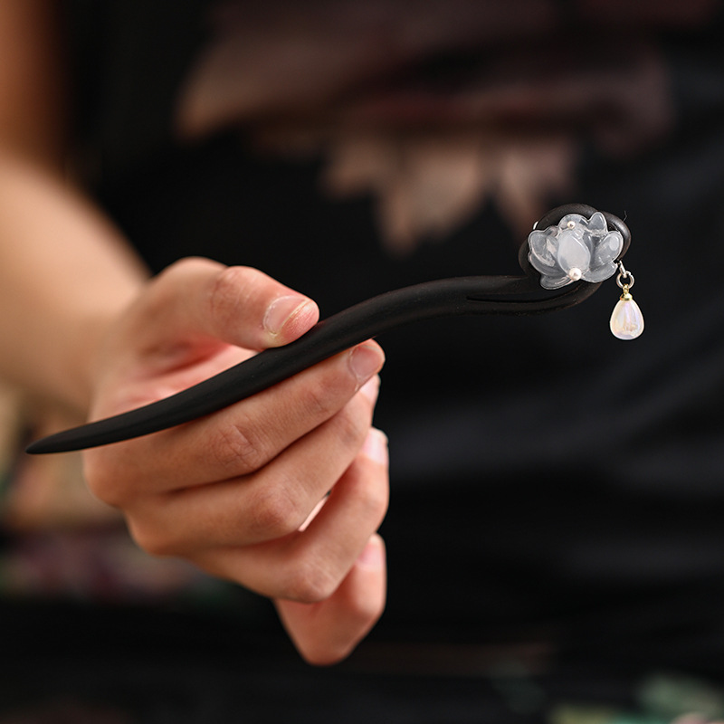 古风黑檀木发簪U型簪日常盘发簪子国风新中式高级感木簪发钗发饰