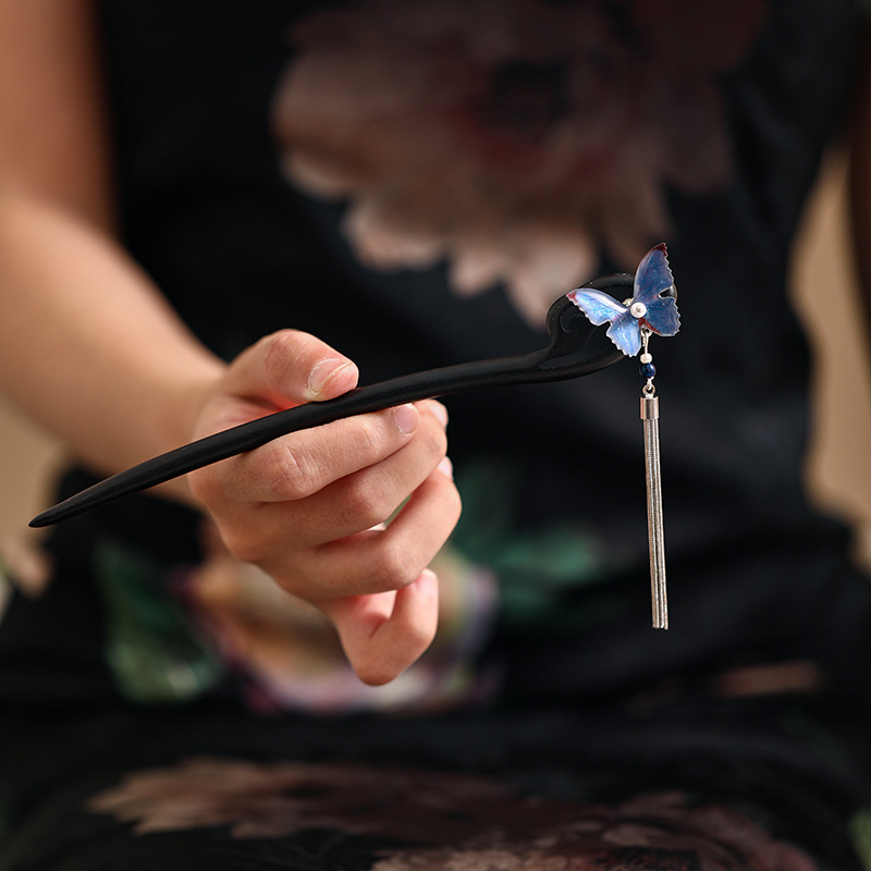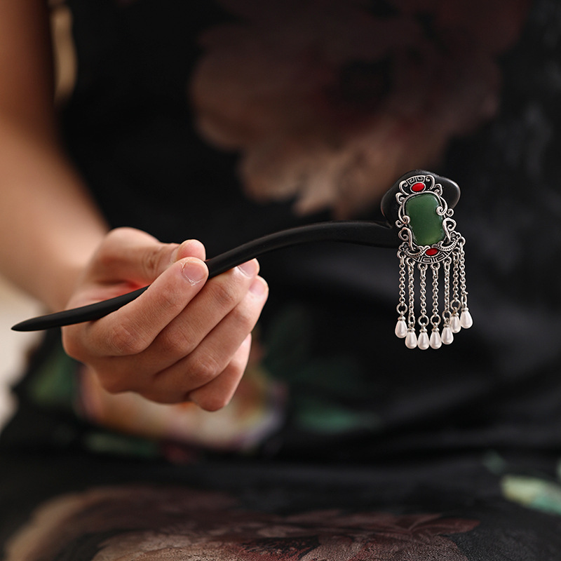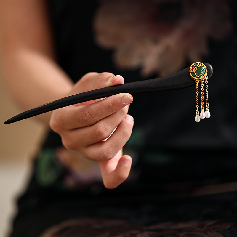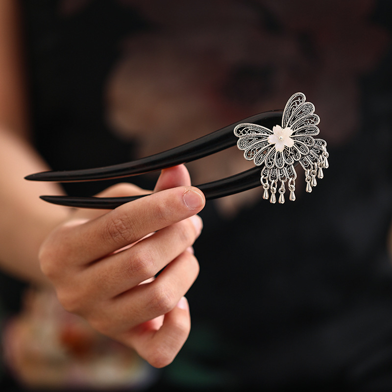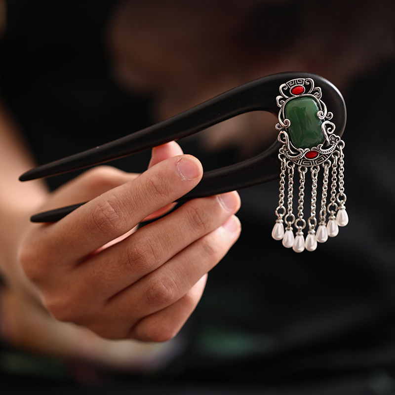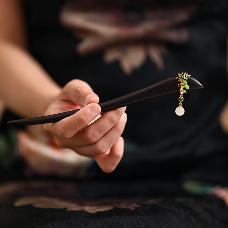 古风黑檀木发簪U型簪日常盘发簪子国风新中式高级感木簪发钗发饰