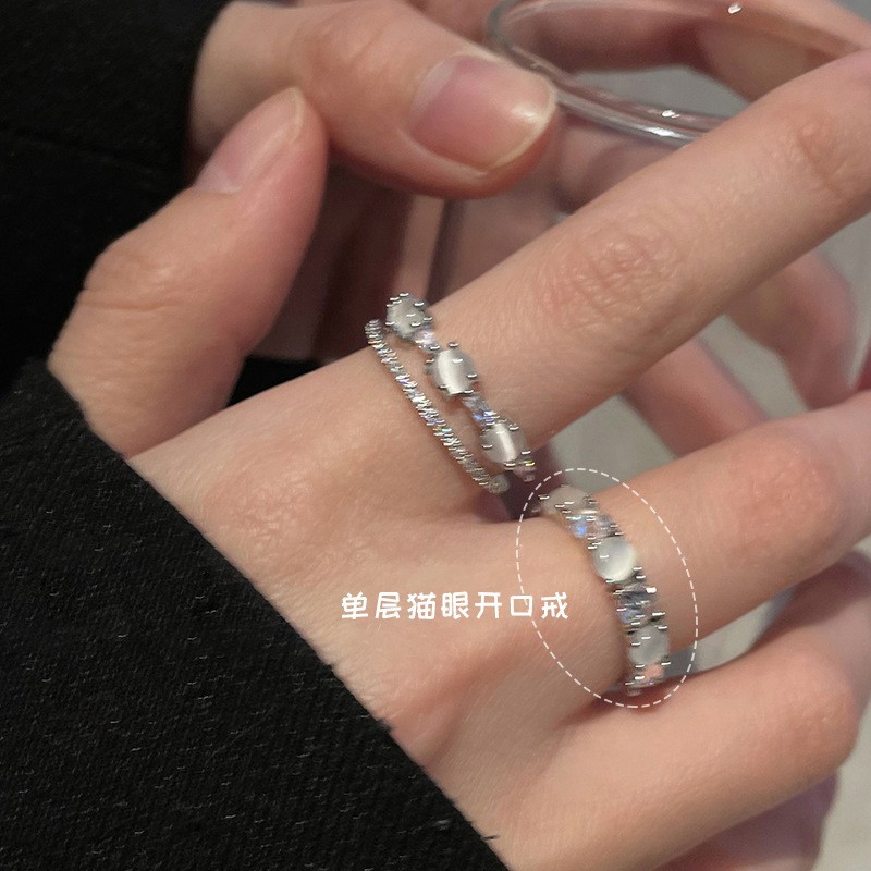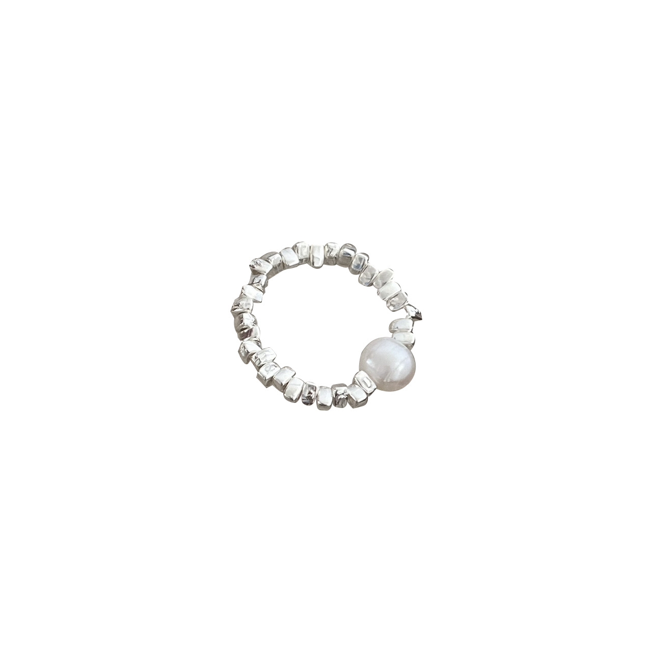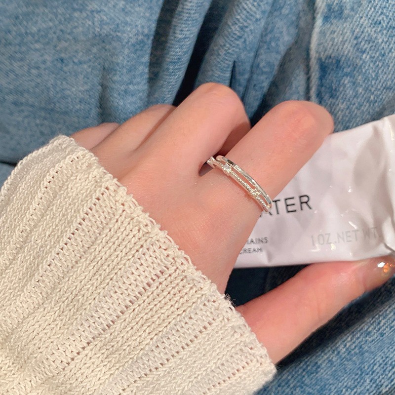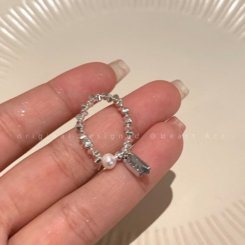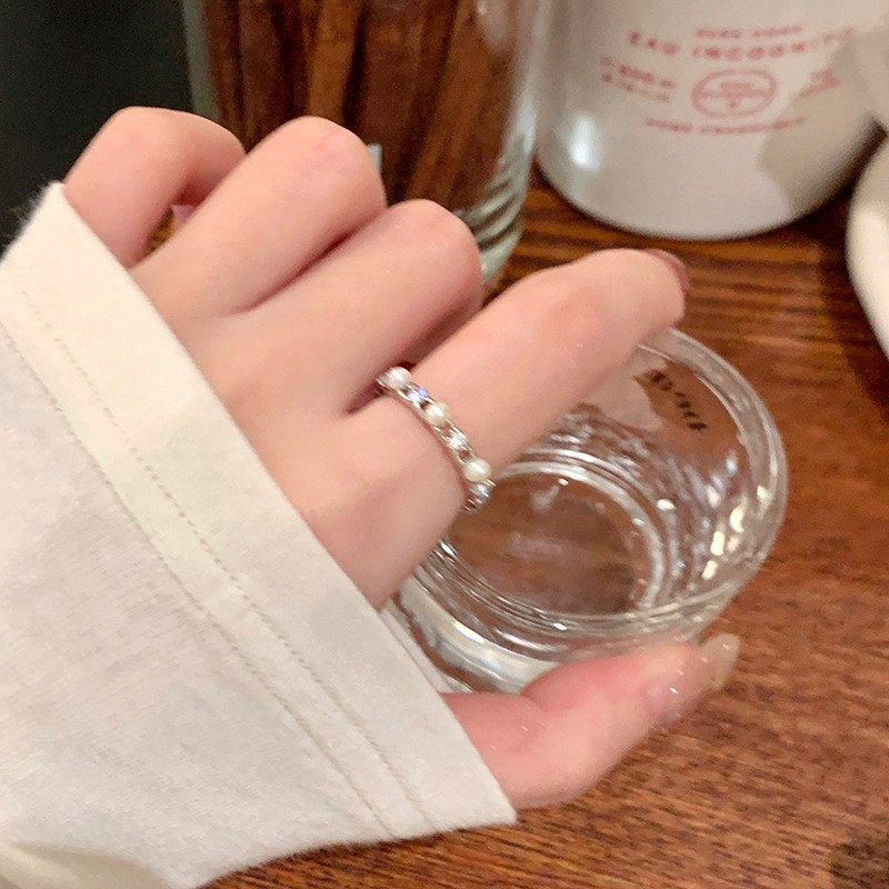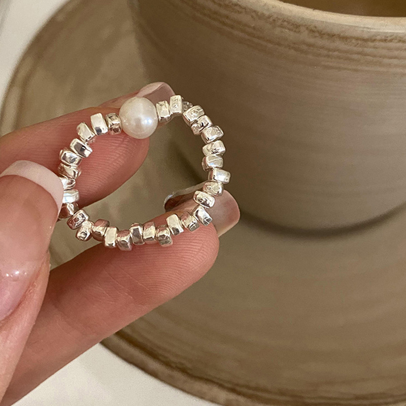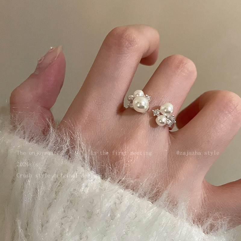 新款简约小众设计碎银子珍珠戒指女时尚百搭高级感可调节指环批发