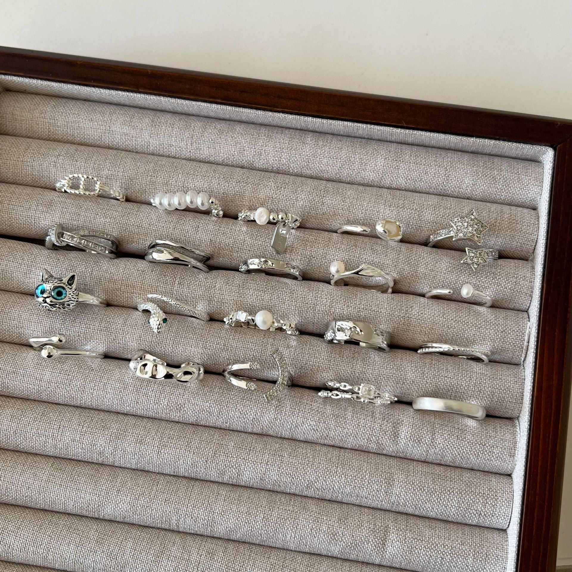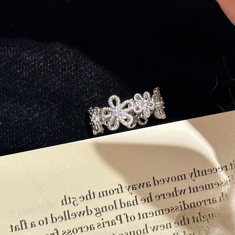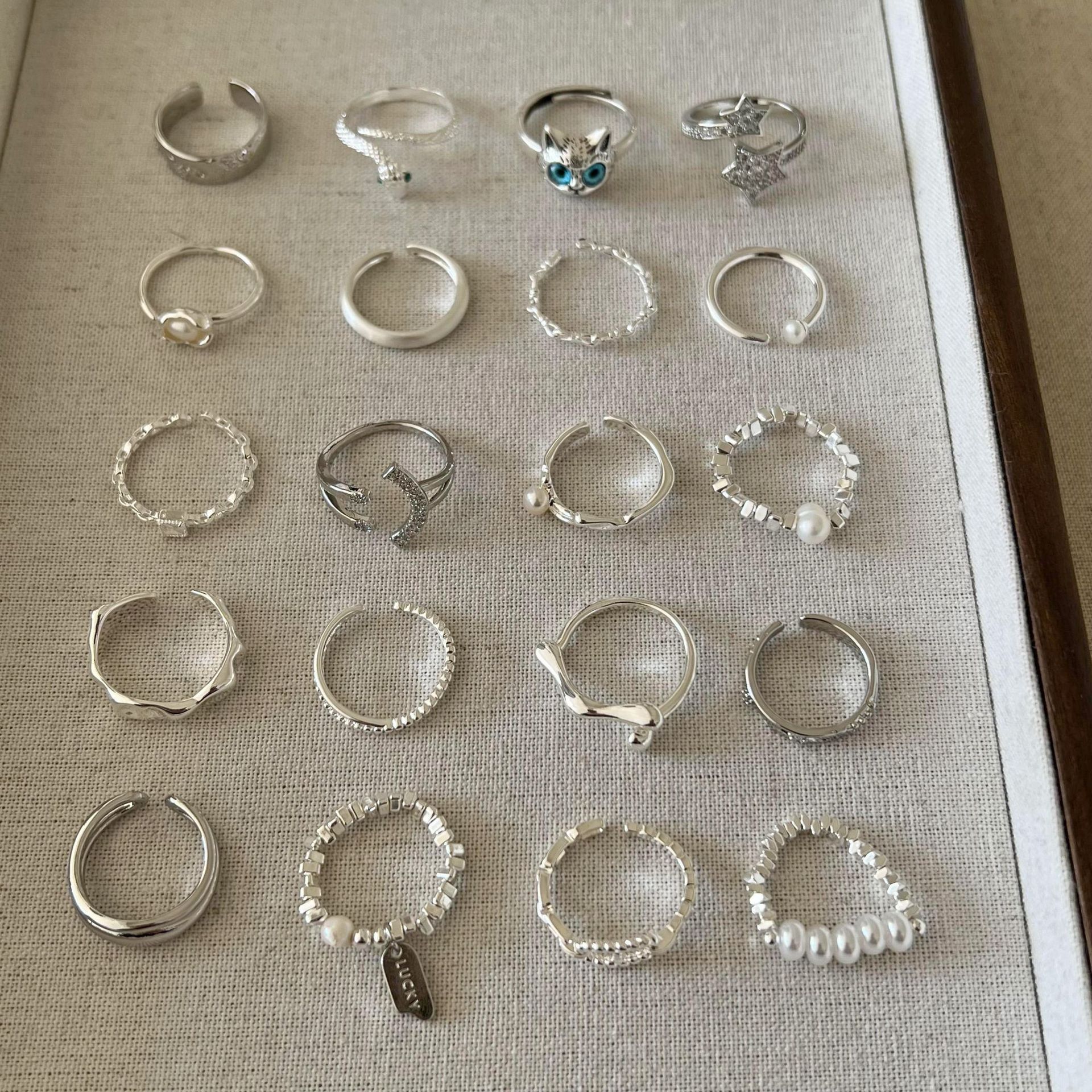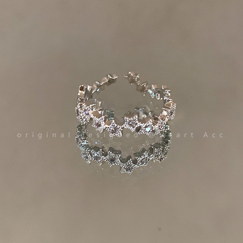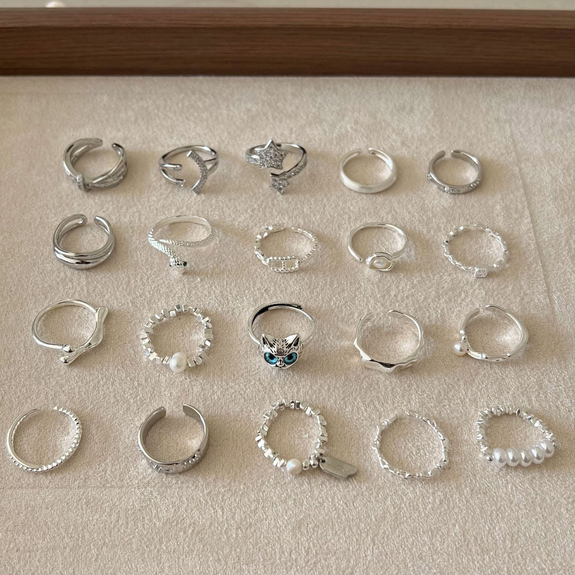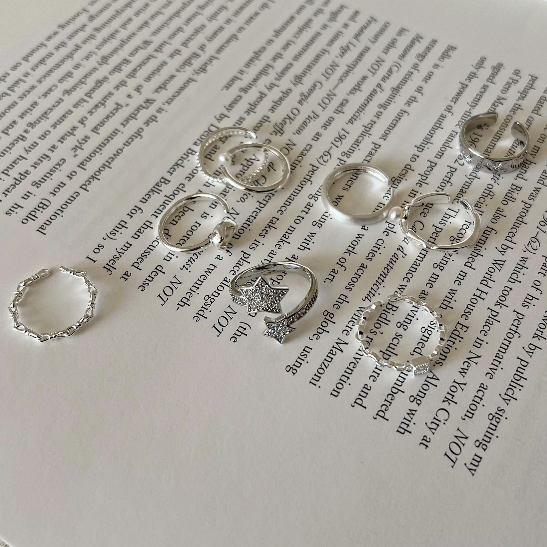 新款简约小众设计碎银子珍珠戒指女时尚百搭高级感可调节指环批发