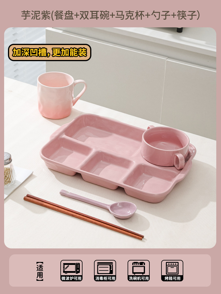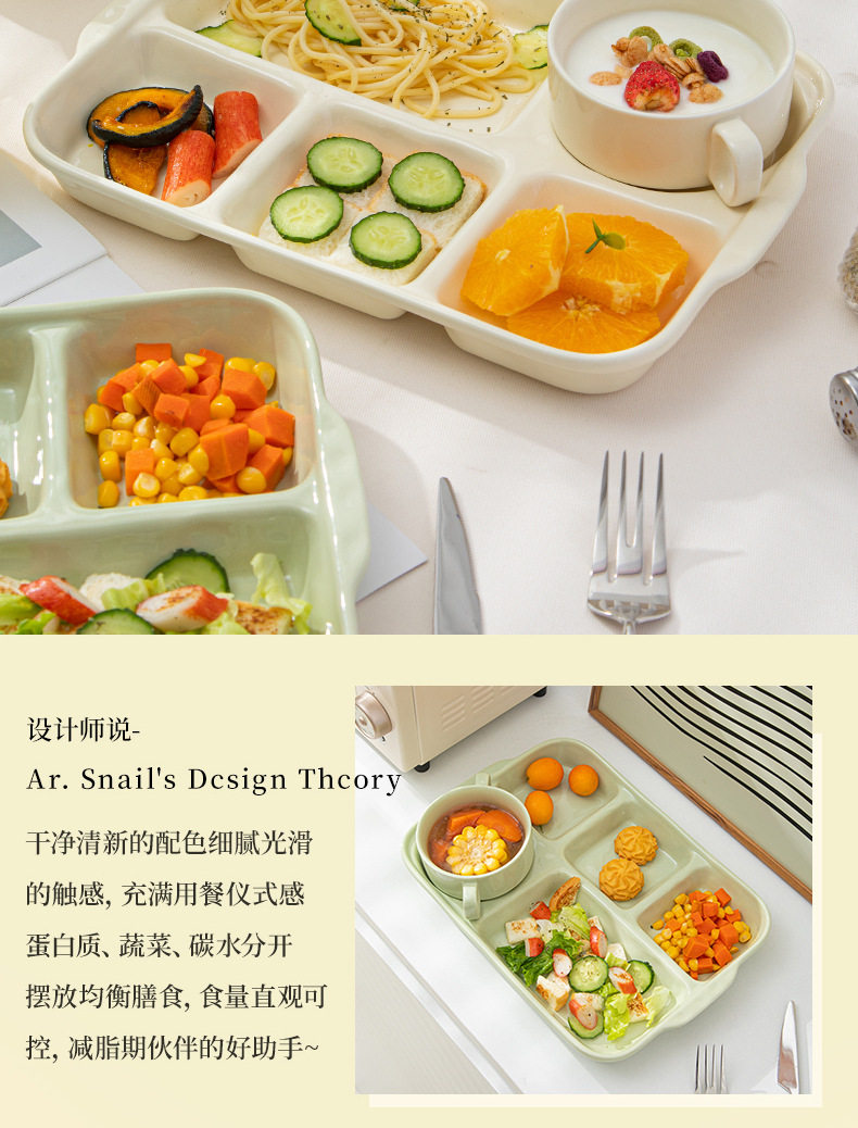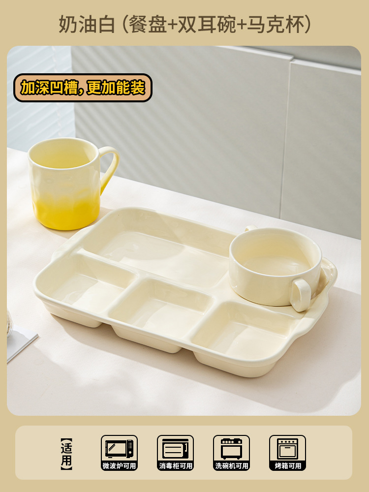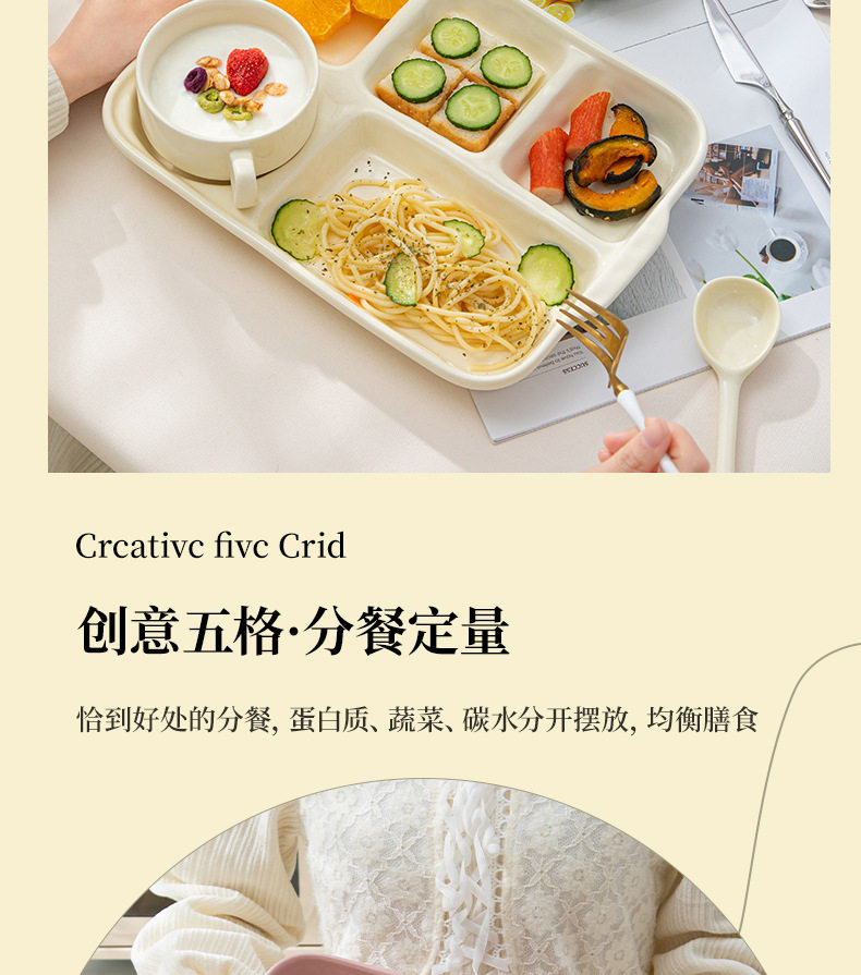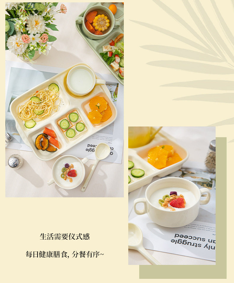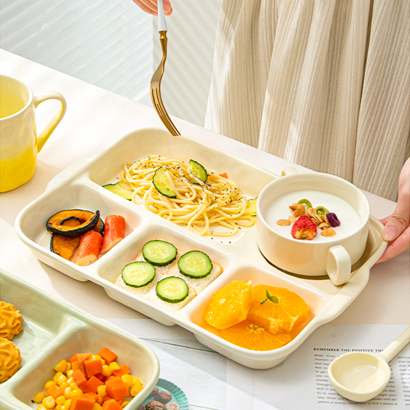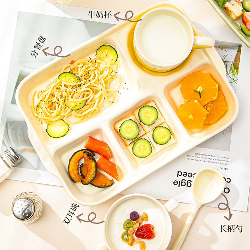 陶瓷分格餐盘高颜值减脂餐具家用一人食儿童早餐盘子套装