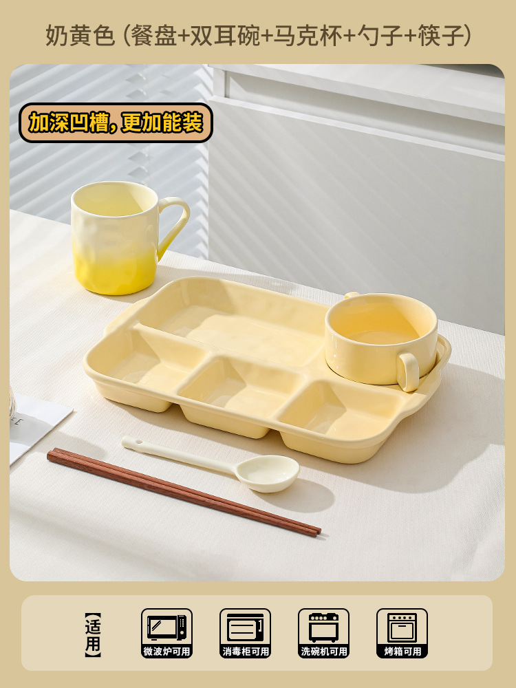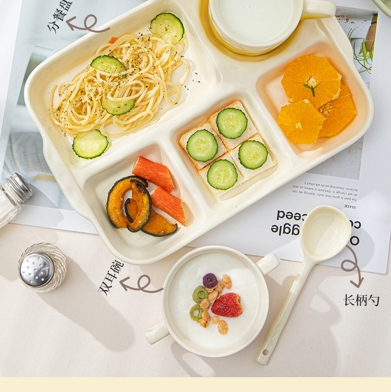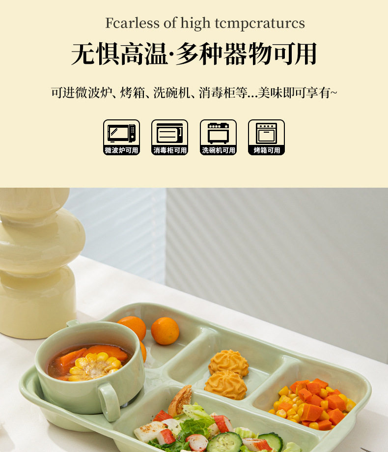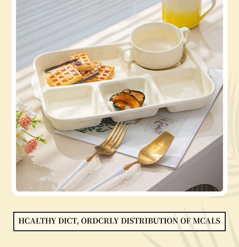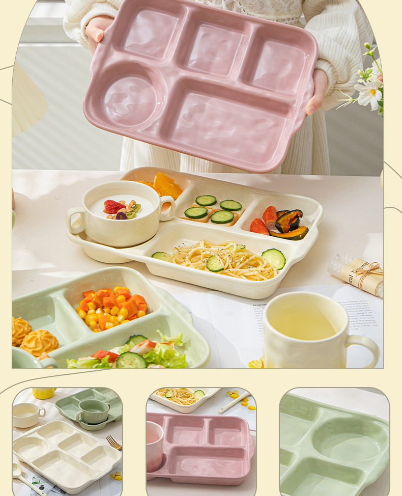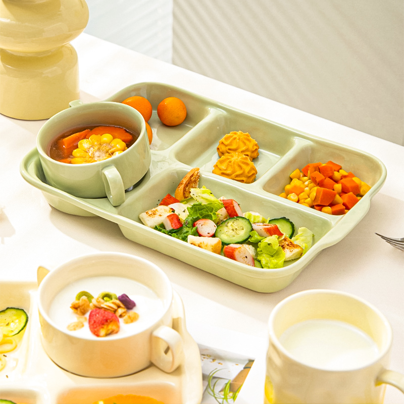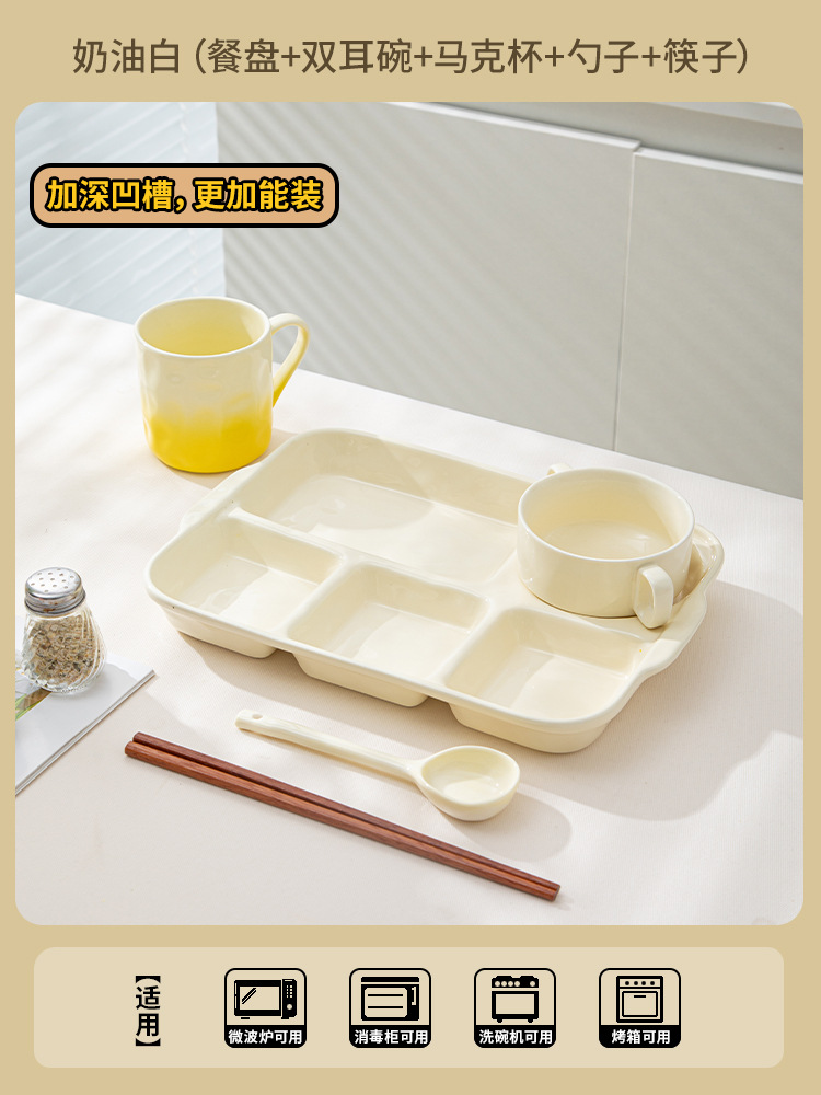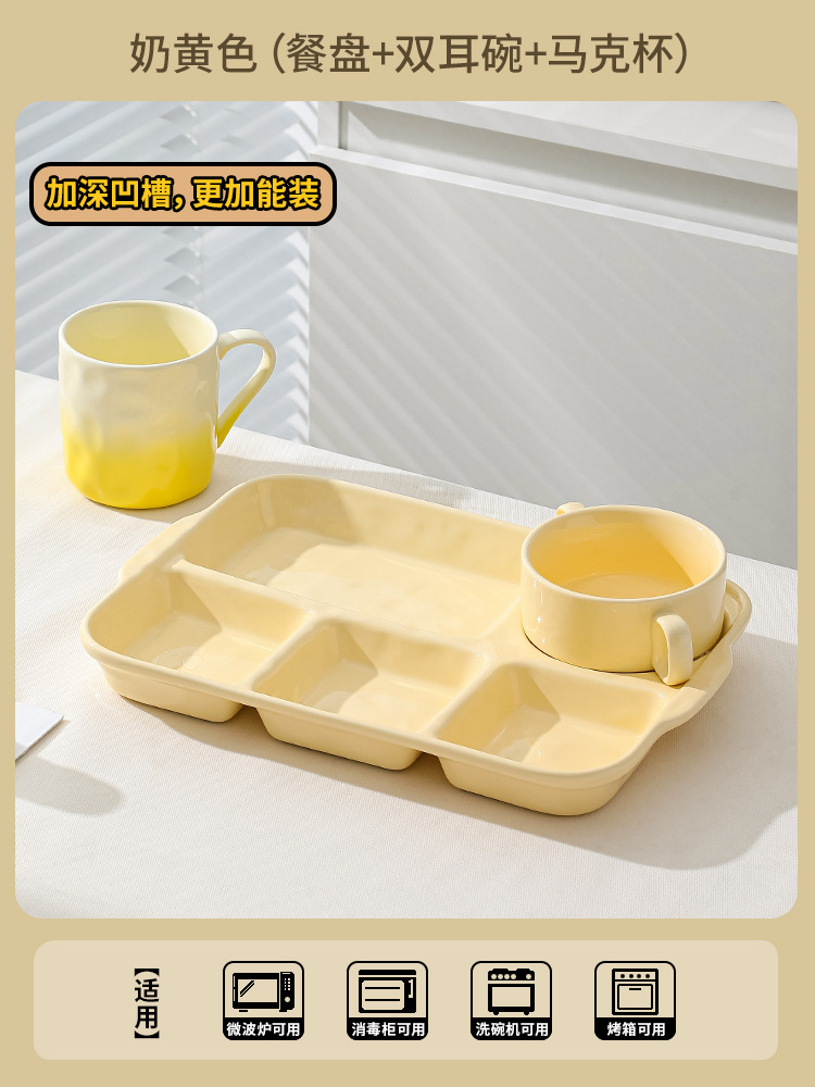 陶瓷分格餐盘高颜值减脂餐具家用一人食儿童早餐盘子套装