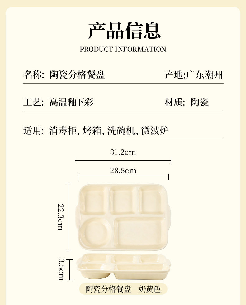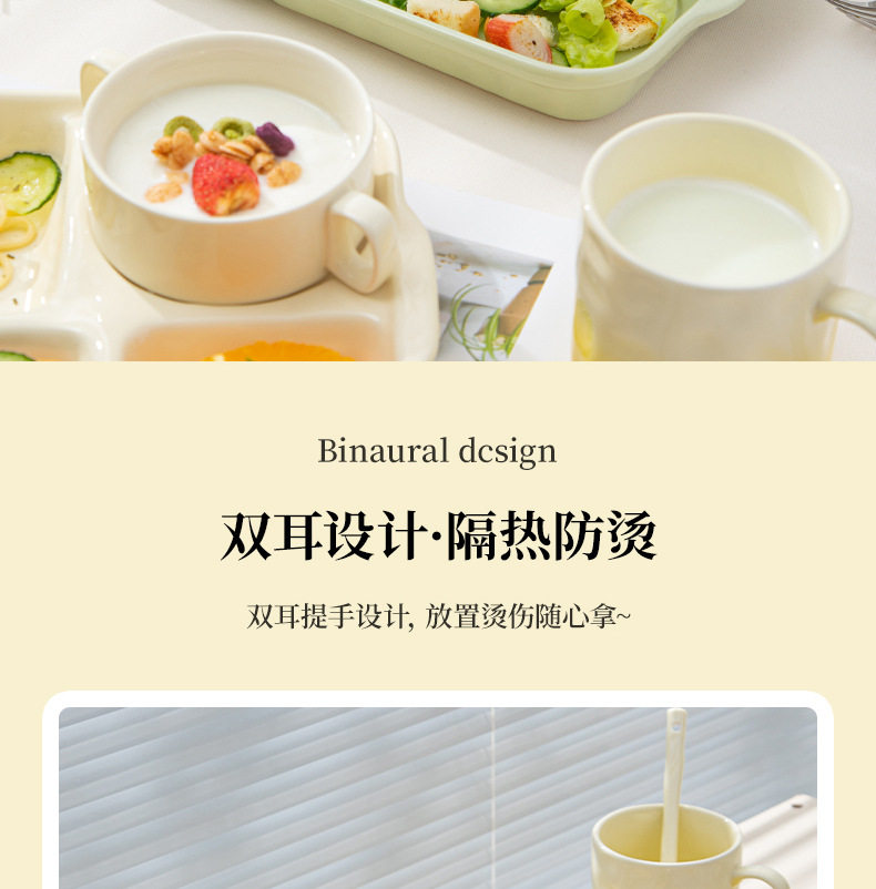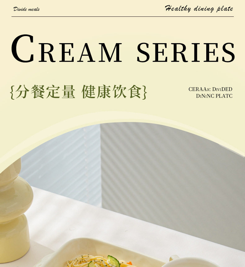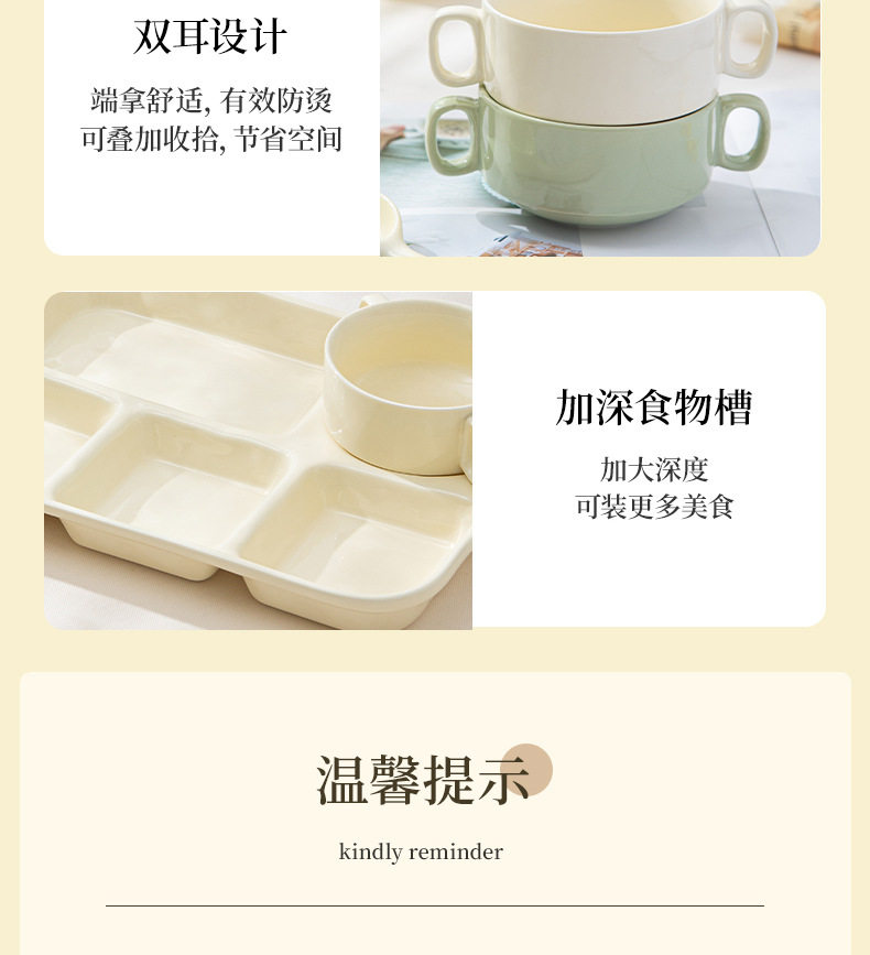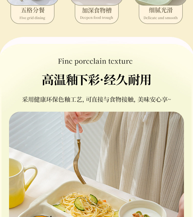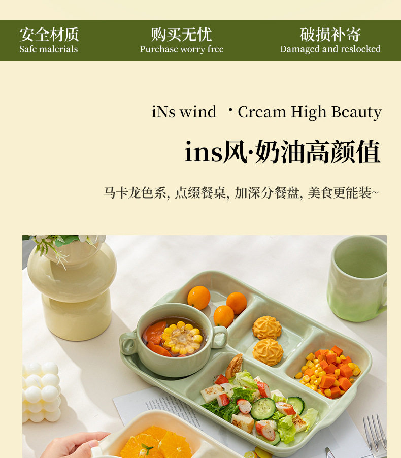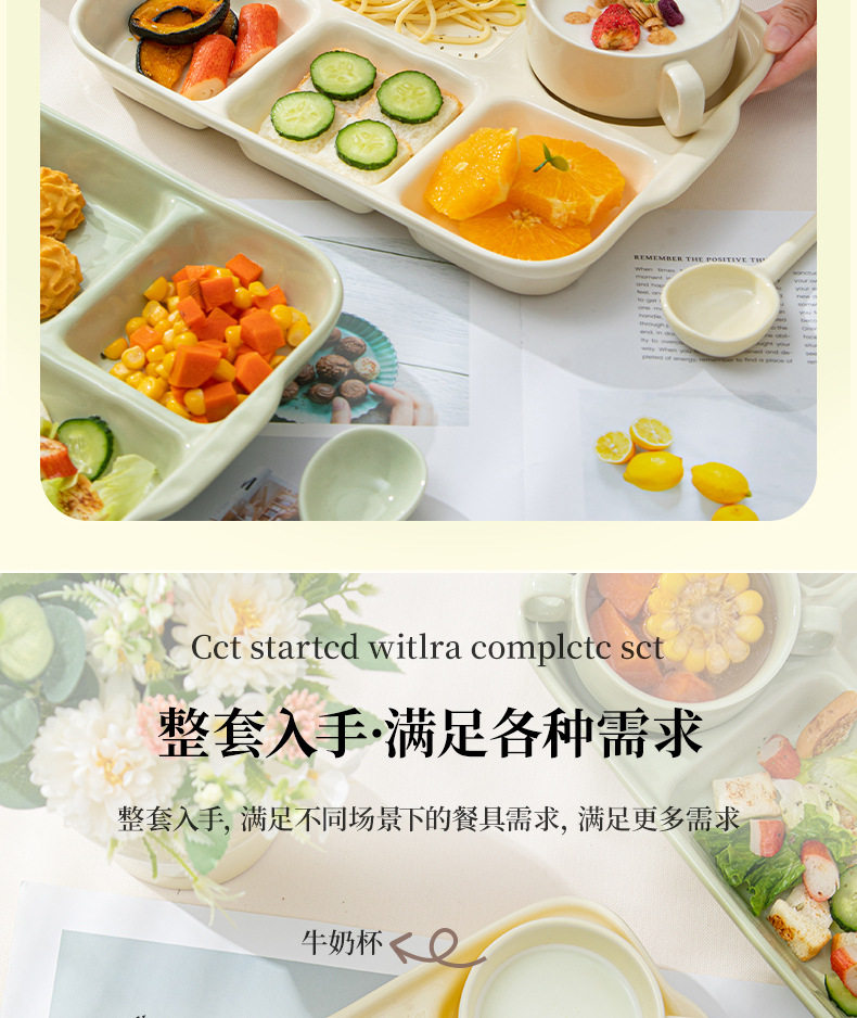 陶瓷分格餐盘高颜值减脂餐具家用一人食儿童早餐盘子套装