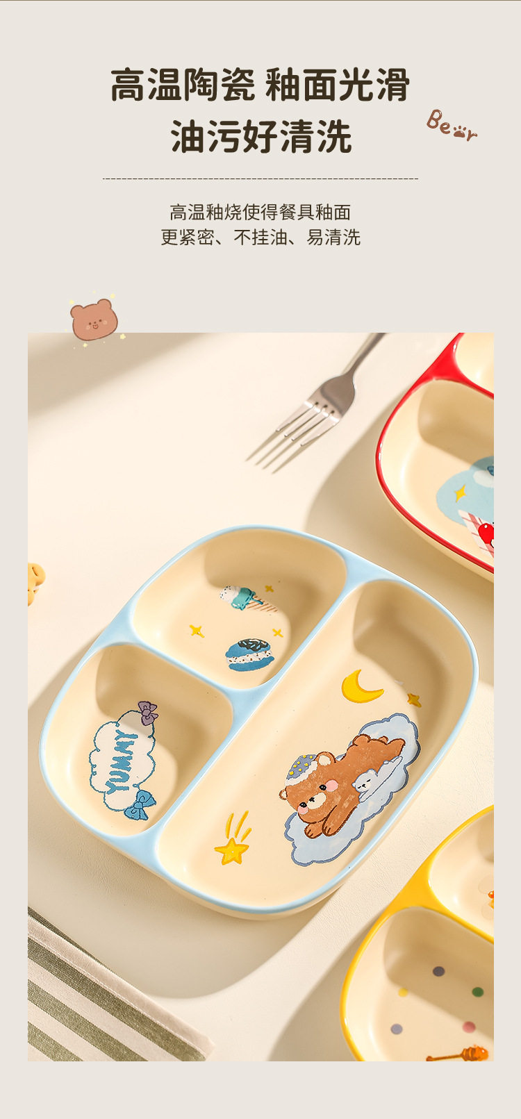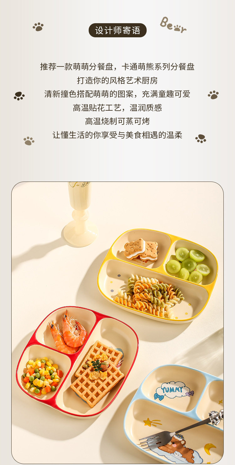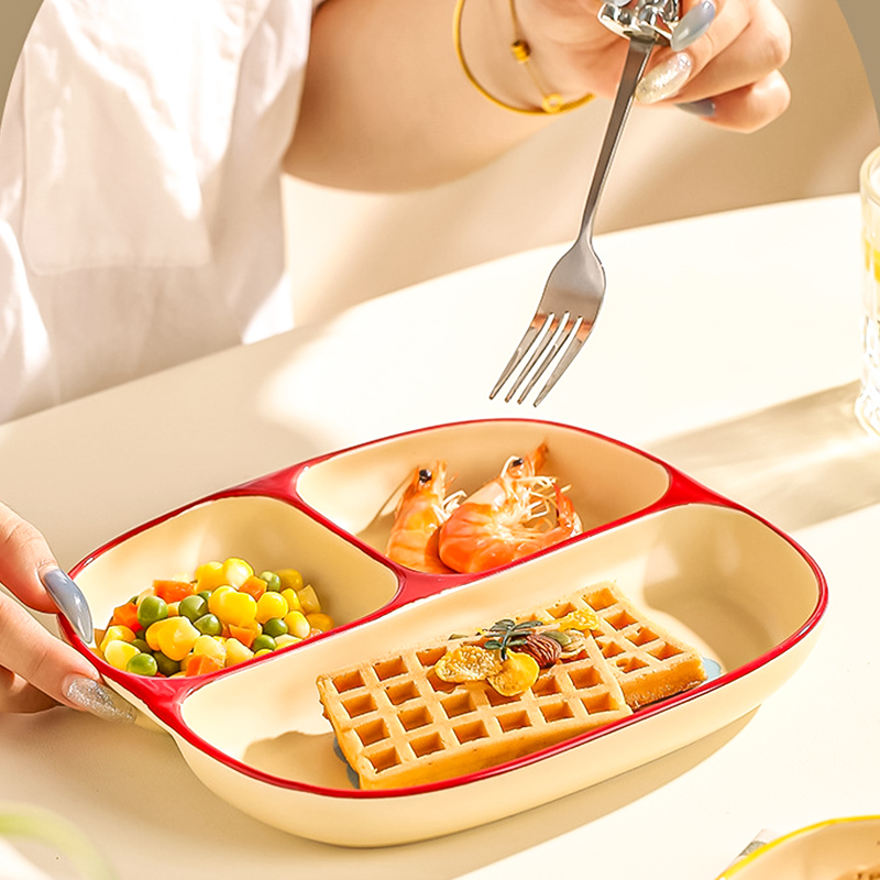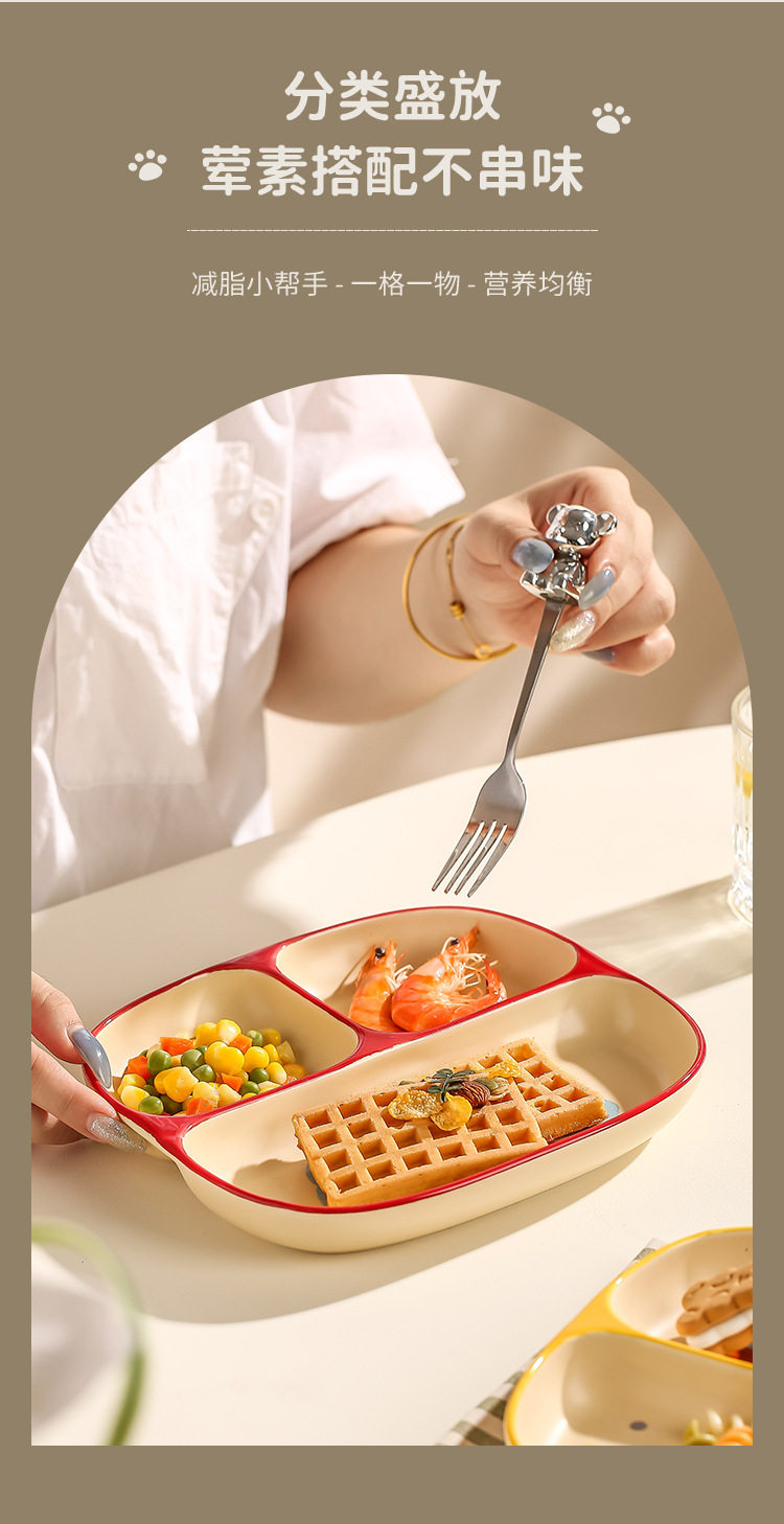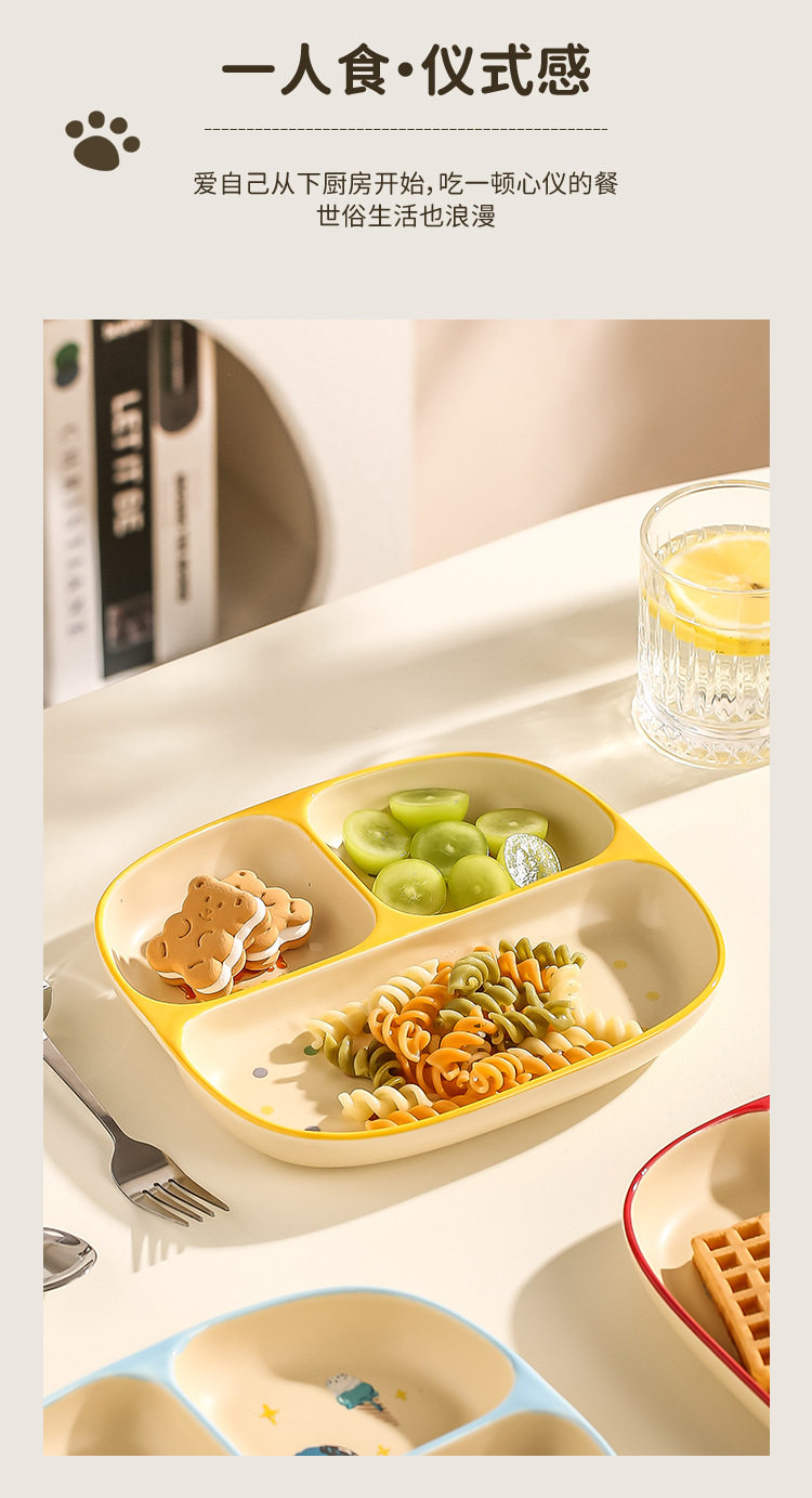陶瓷分格餐盘家用儿童分餐盘一人食减脂定量饭盘三格2025新款