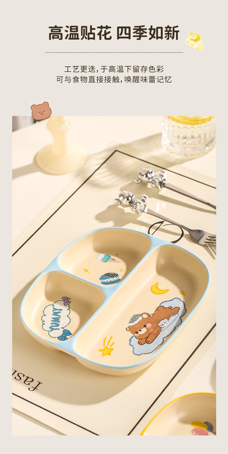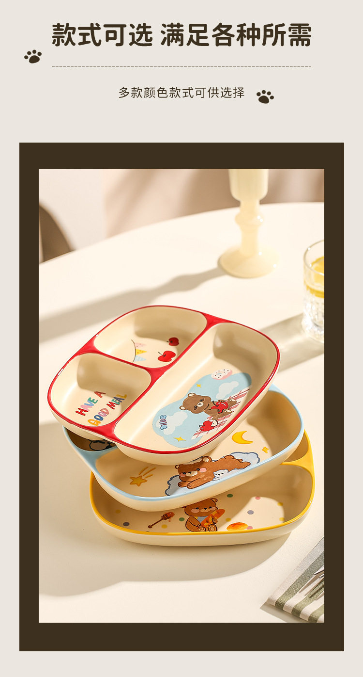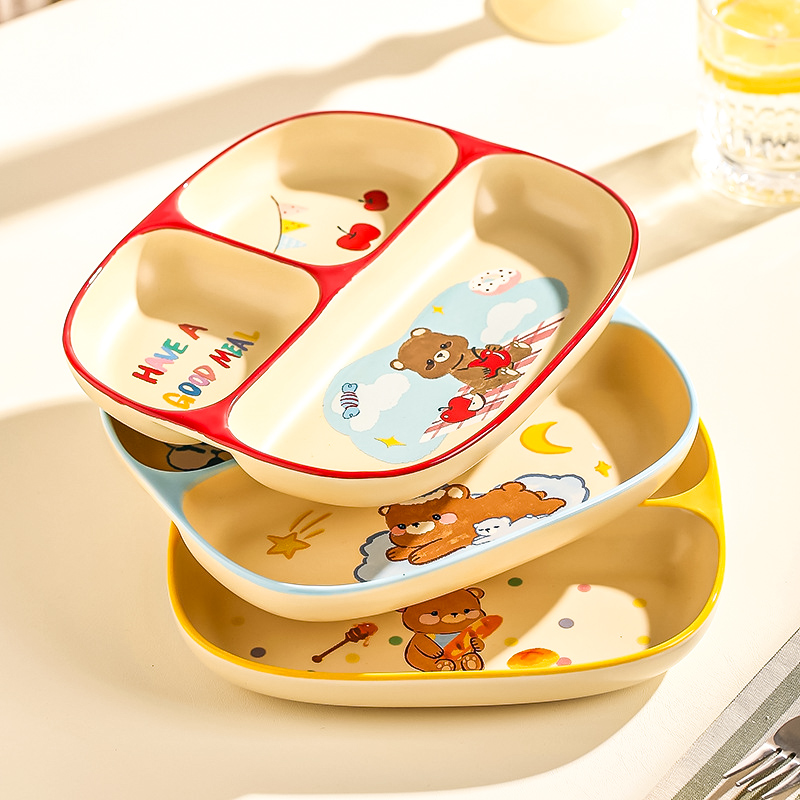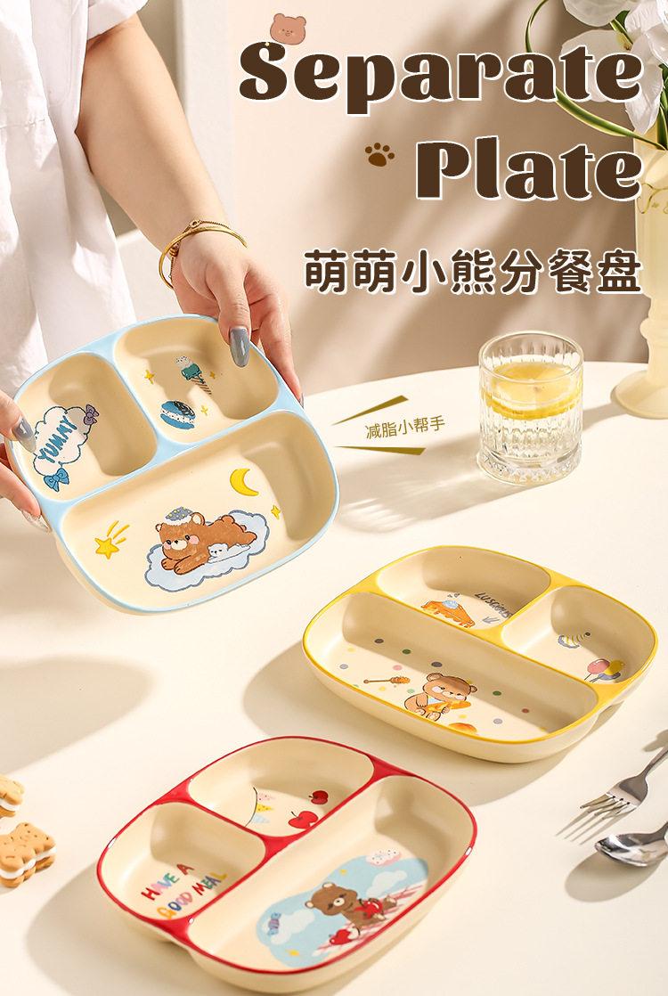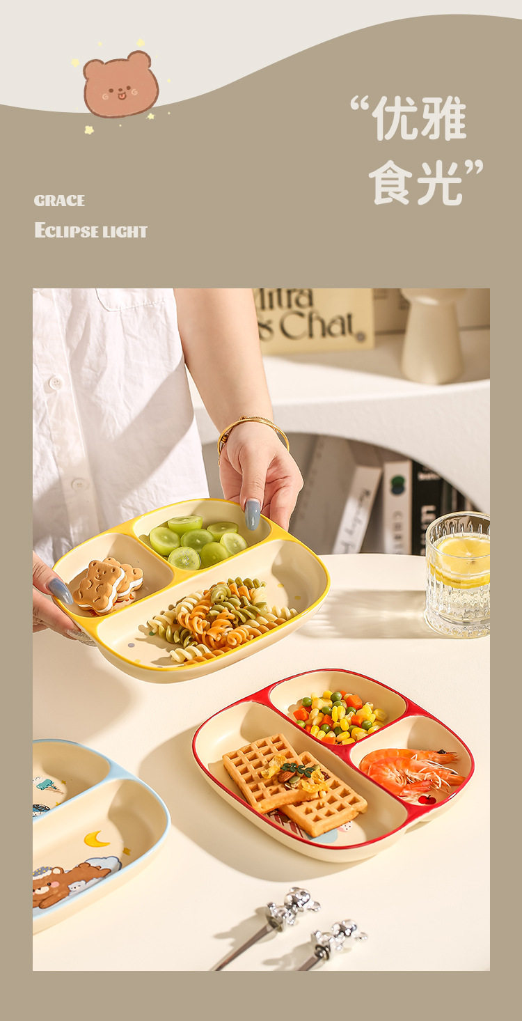陶瓷分格餐盘家用儿童分餐盘一人食减脂定量饭盘三格2025新款