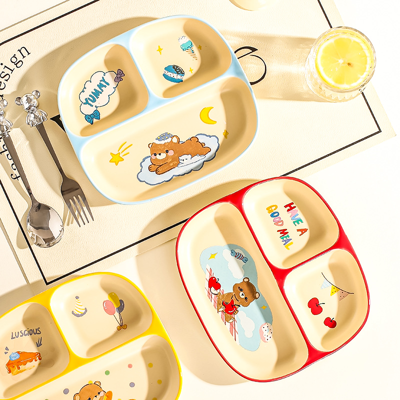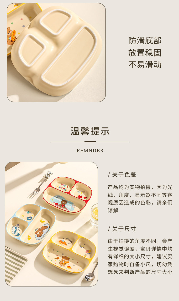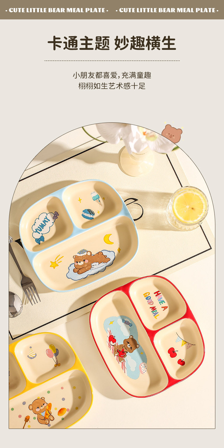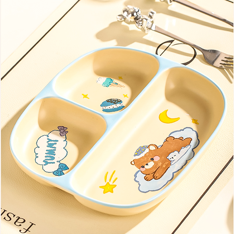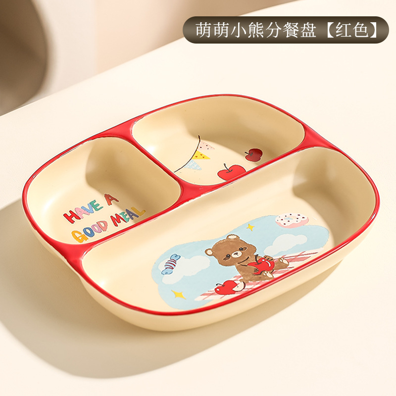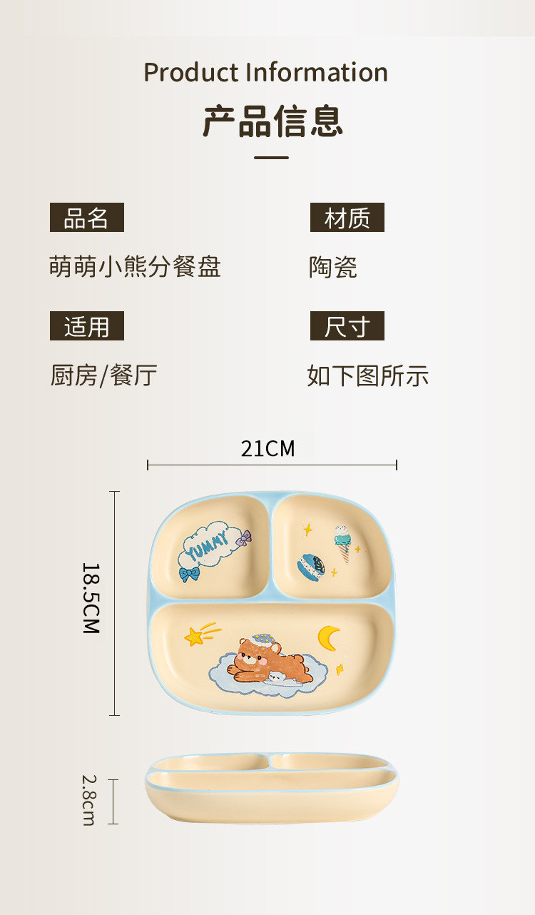 陶瓷分格餐盘家用儿童分餐盘一人食减脂定量饭盘三格2025新款