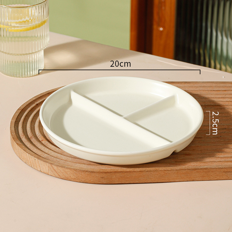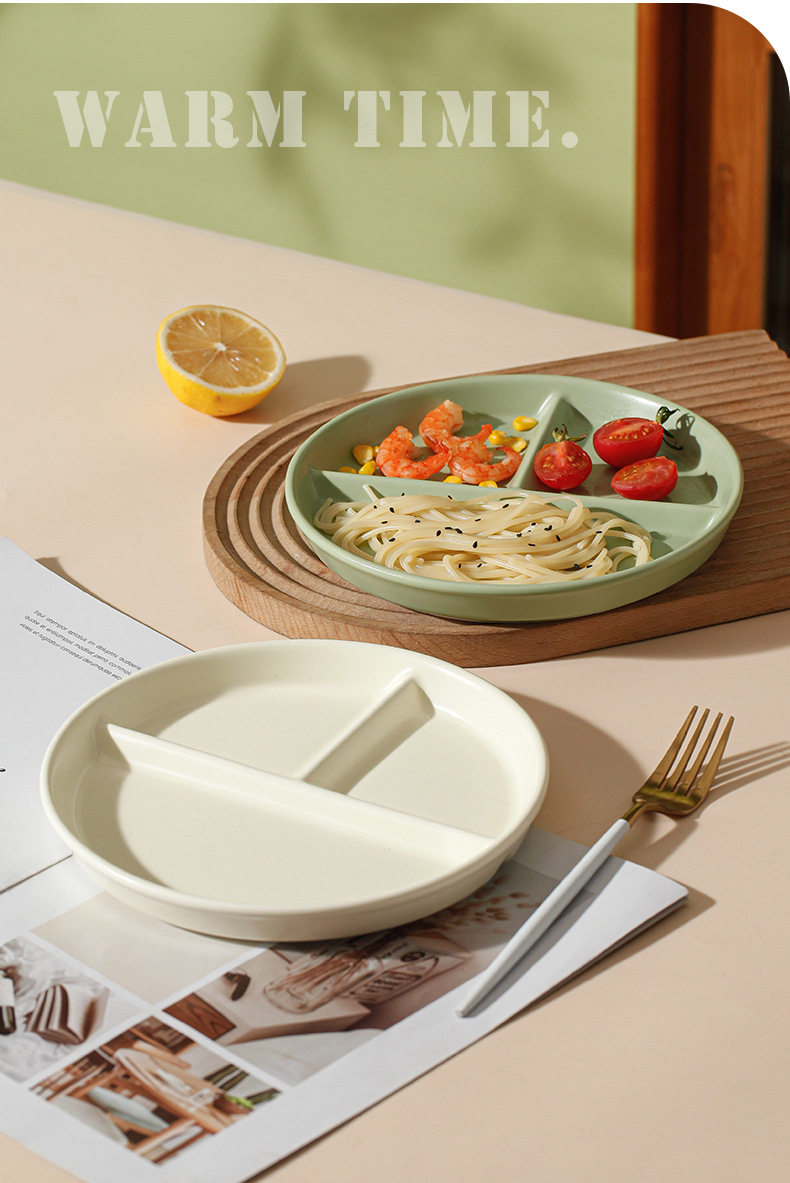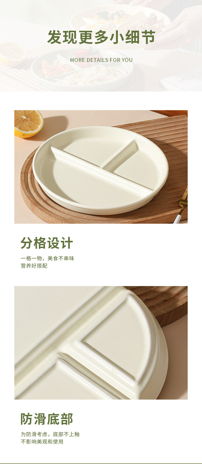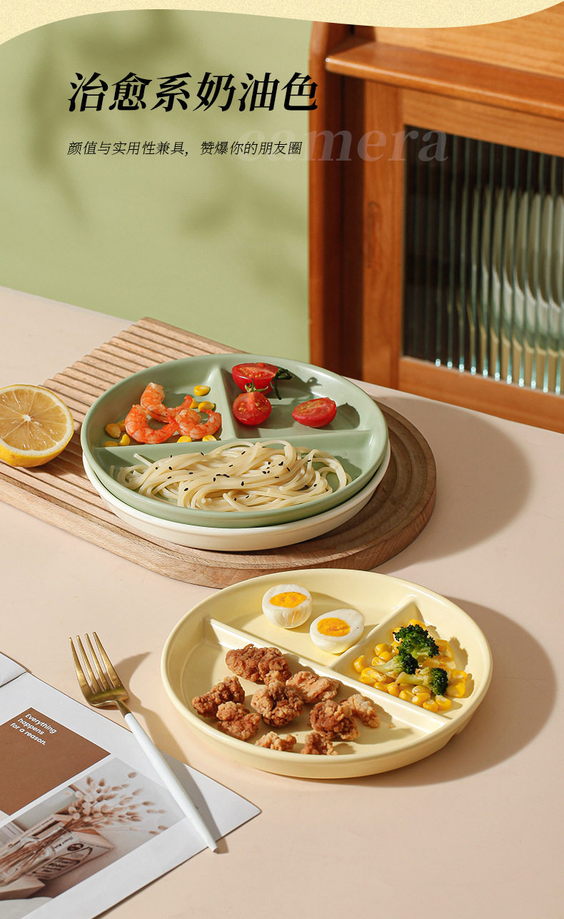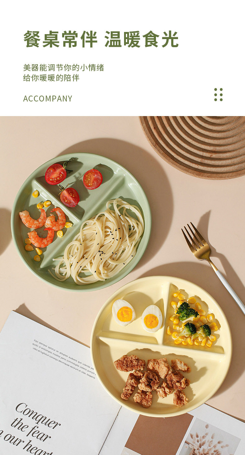 陶瓷盘圆形饭盘分格餐盘家用减脂轻食定量分隔盘子儿童分餐盘餐具