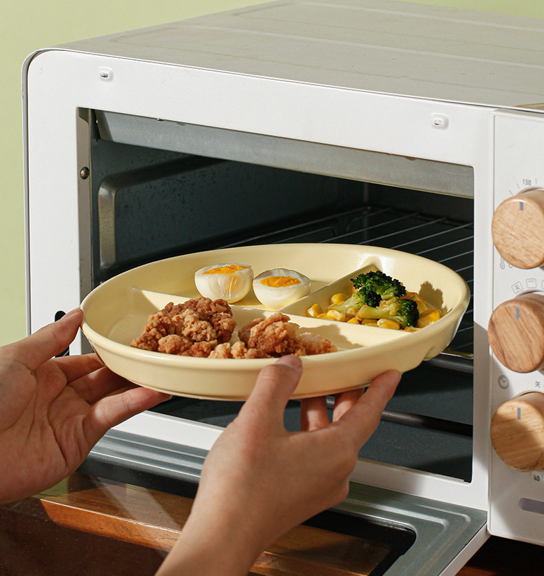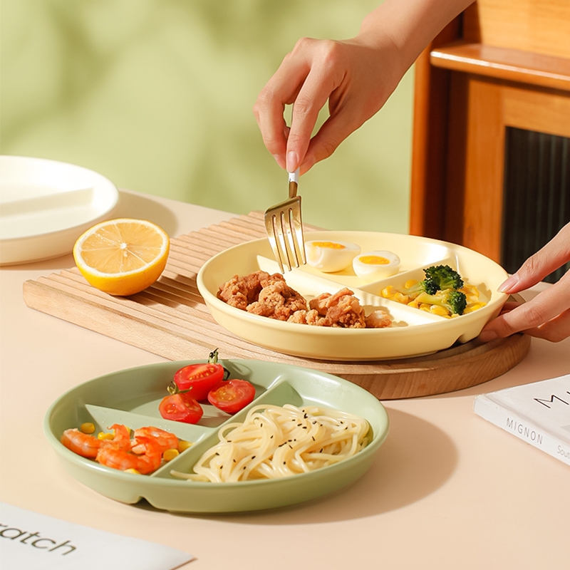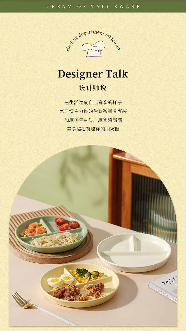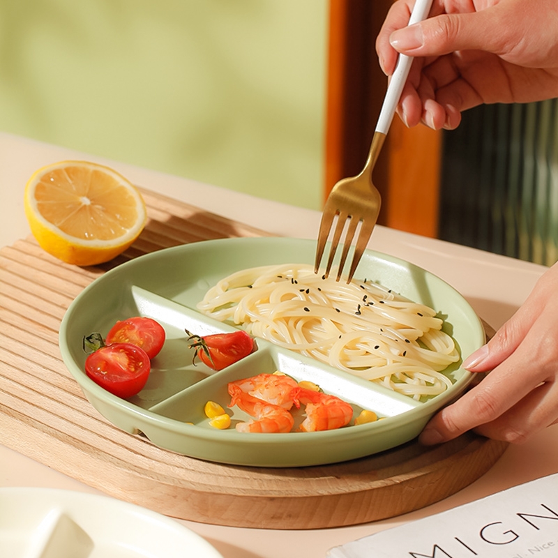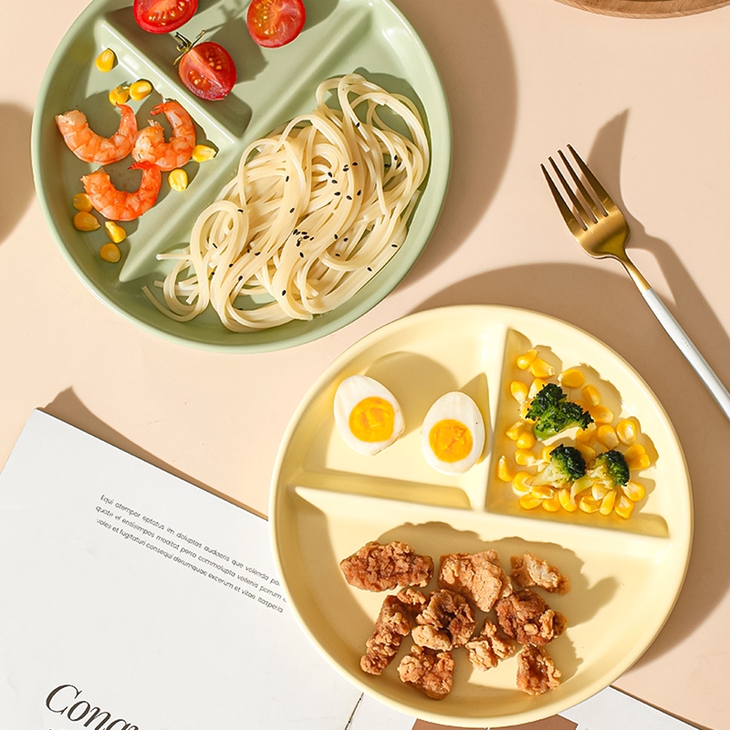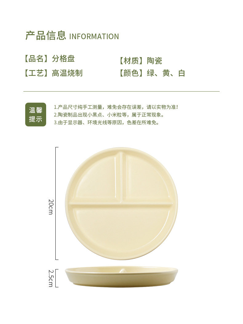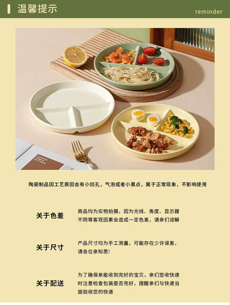 陶瓷盘圆形饭盘分格餐盘家用减脂轻食定量分隔盘子儿童分餐盘餐具