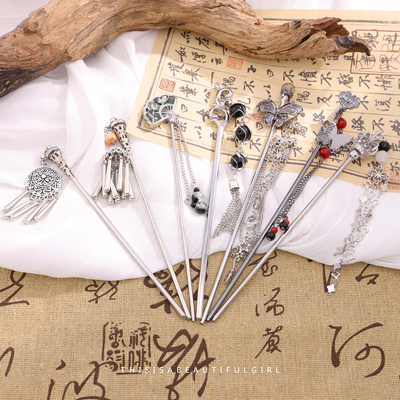 新中式流苏发簪女高级感银色苗族古风簪子2025年新款流苏汉服发钗