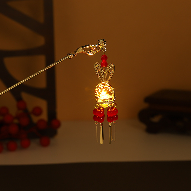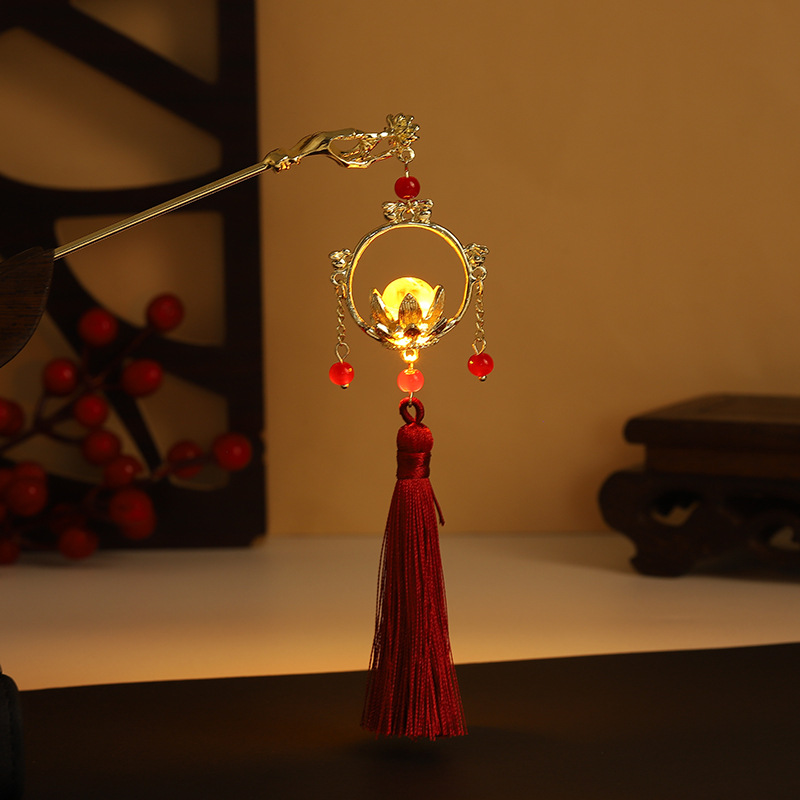 古风发簪流苏发光灯笼簪子挽发宫廷仙气头饰日常气质百搭发饰品女