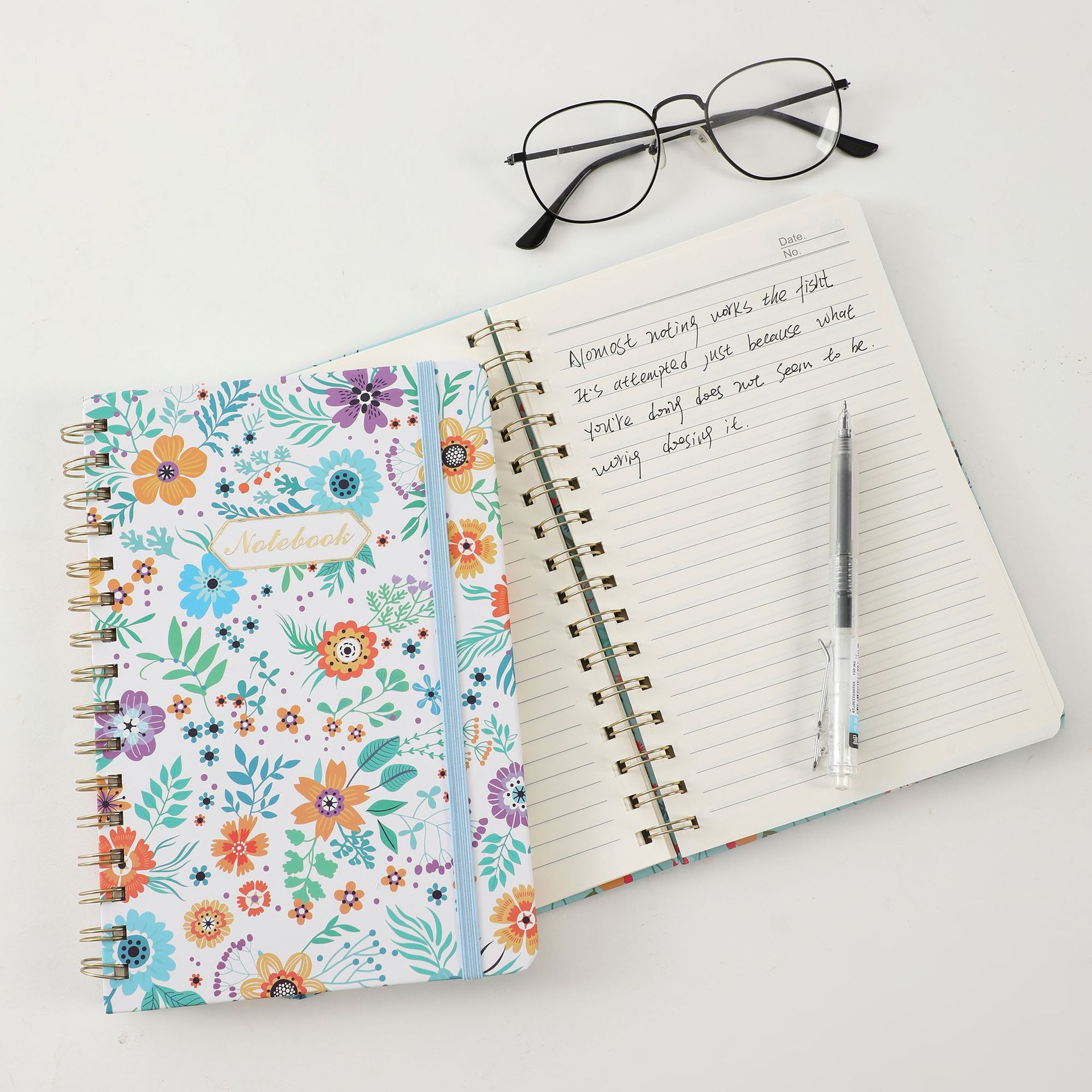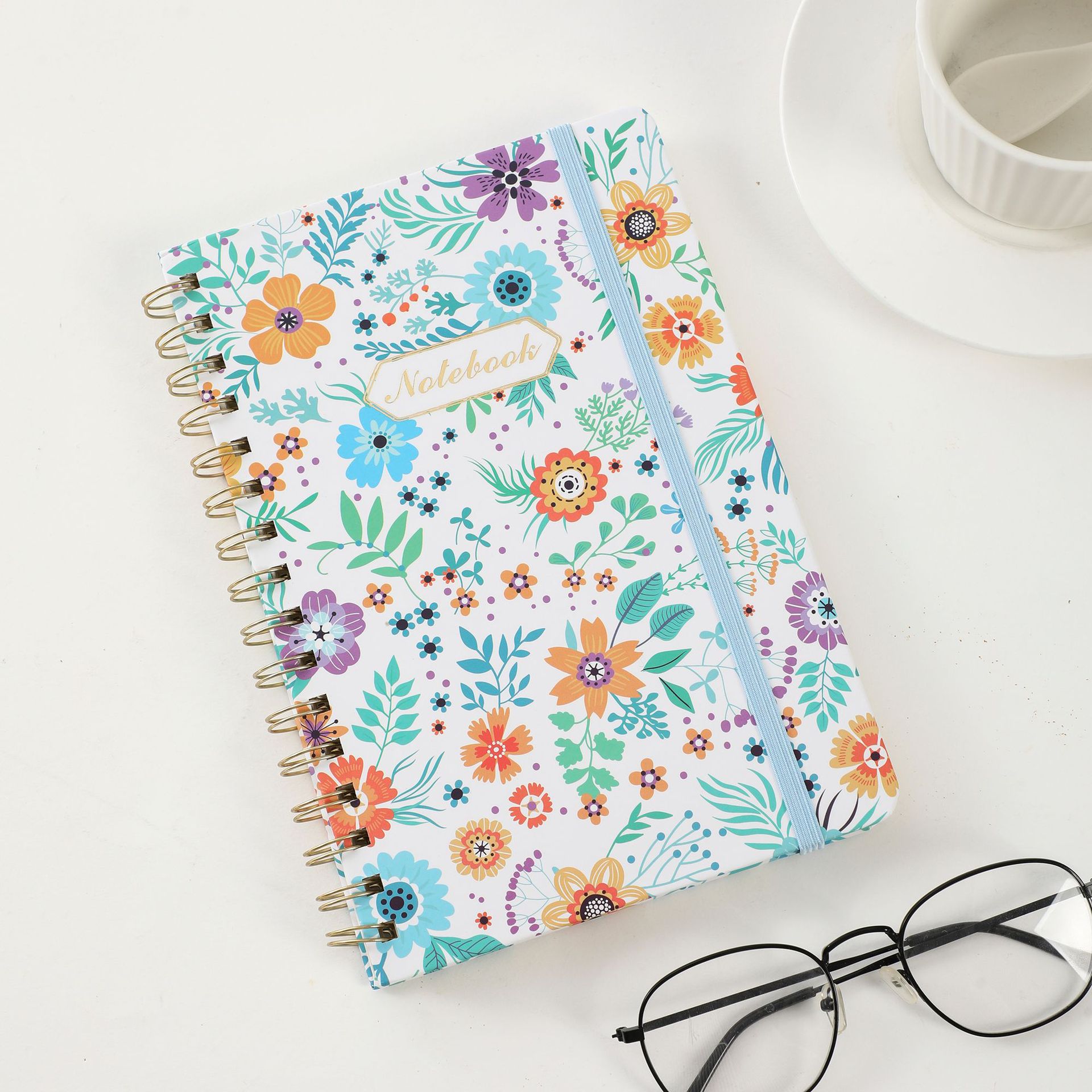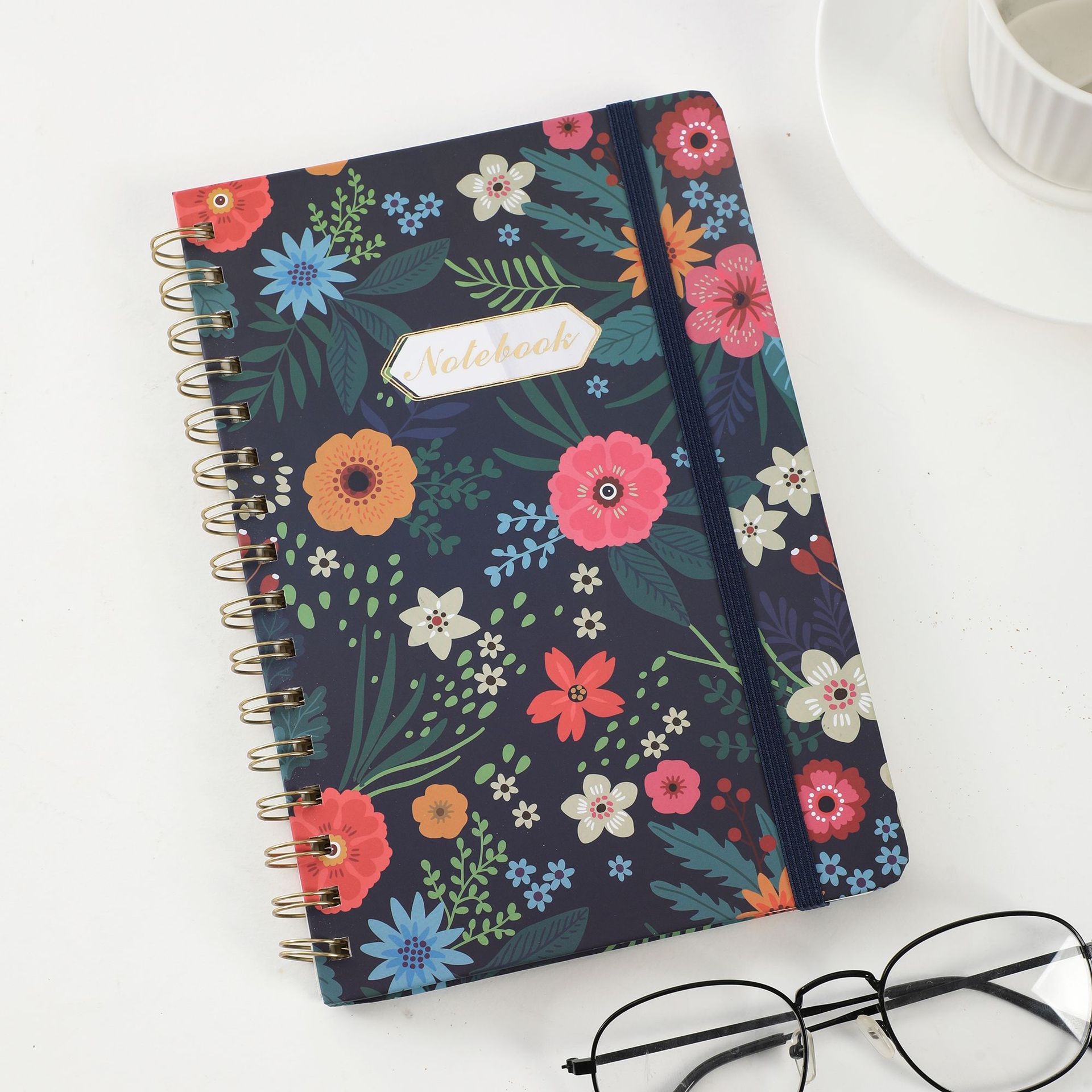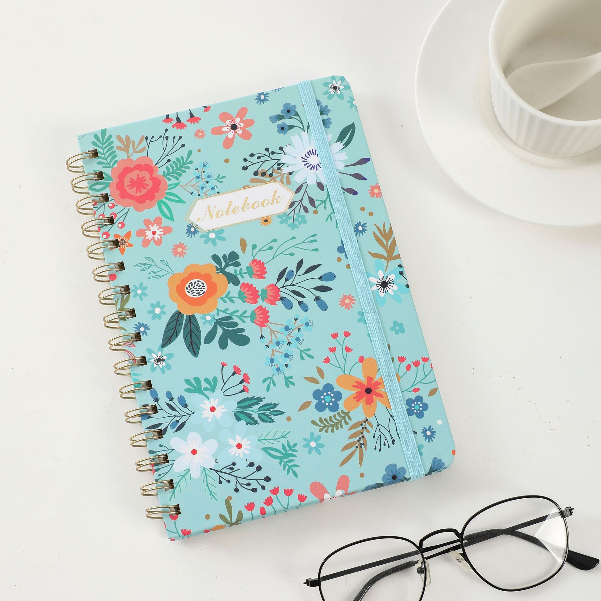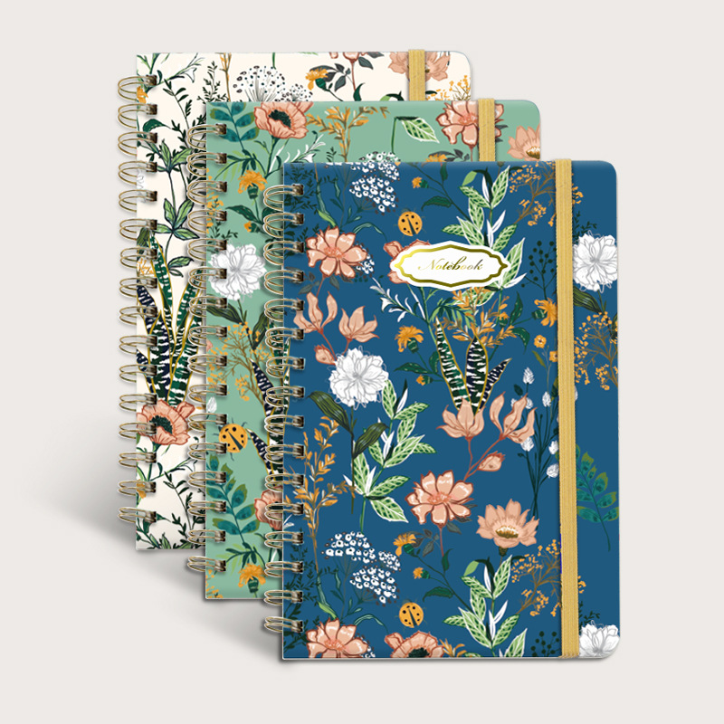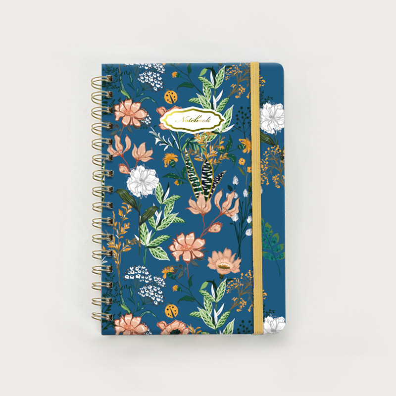 跨境亚马逊2025A5硬壳螺旋记事本带绑带背面带口袋金属线圈本计划