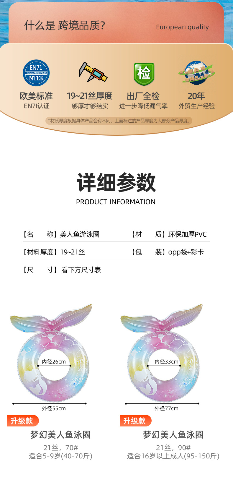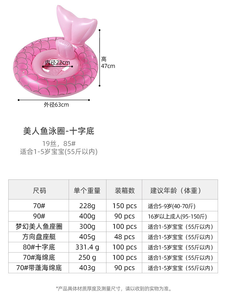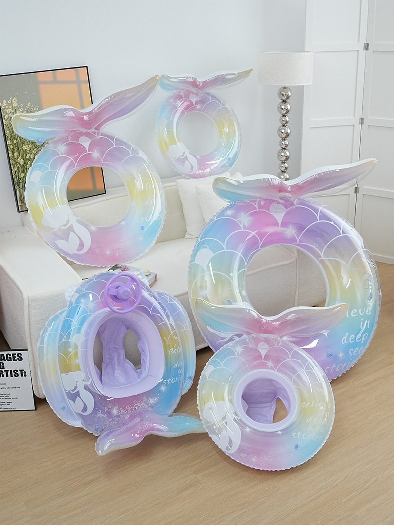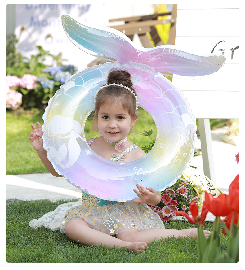 现货美人鱼尾儿童泳圈加厚腋下游泳圈小宝宝环保pvc充气游泳座圈