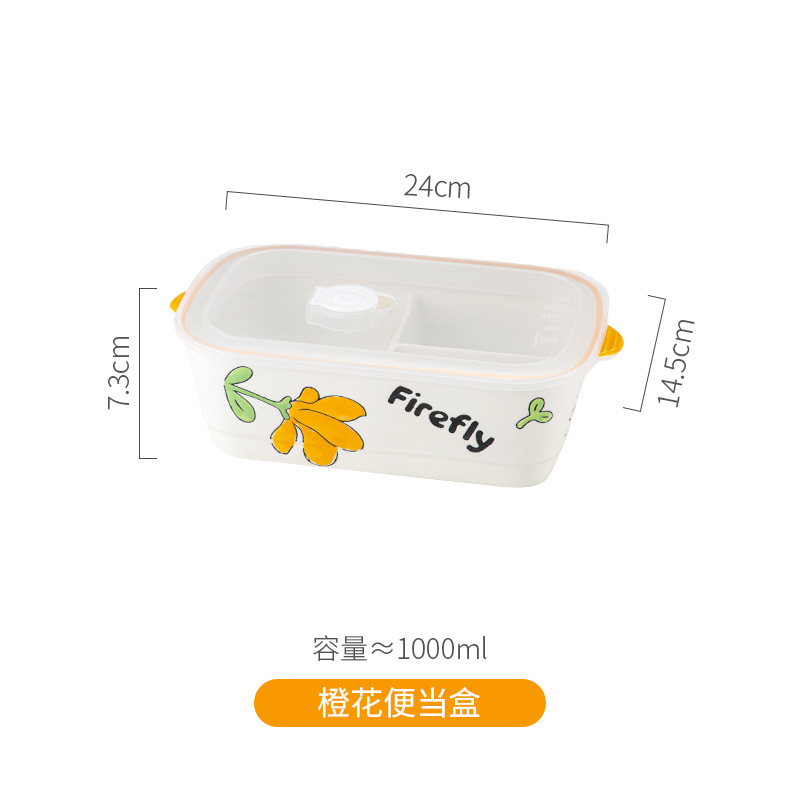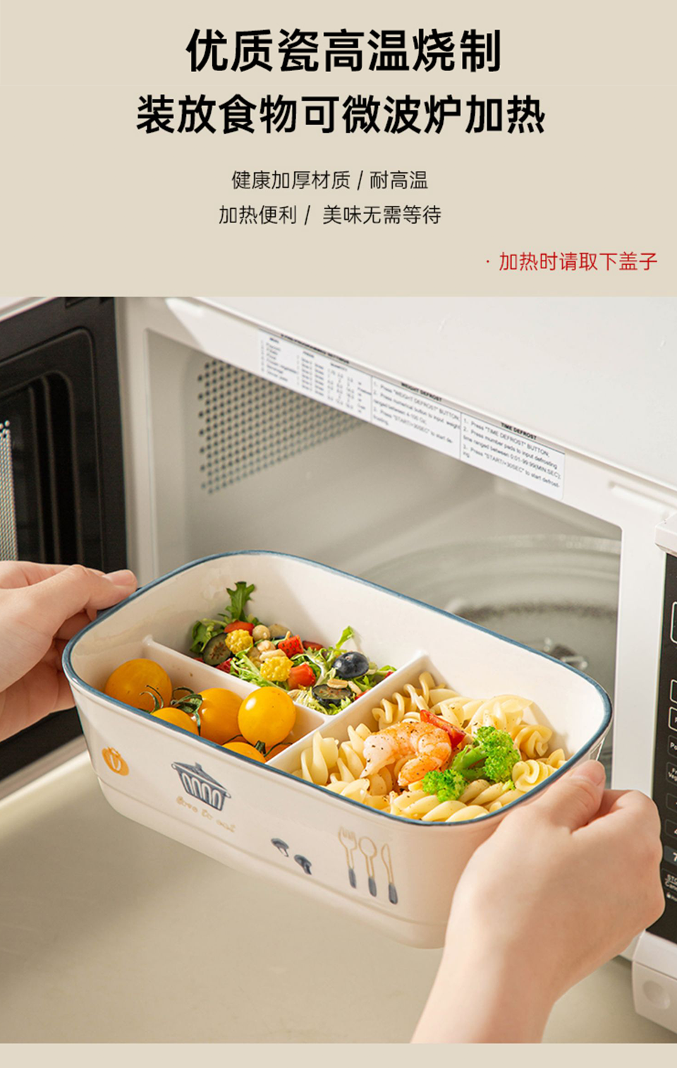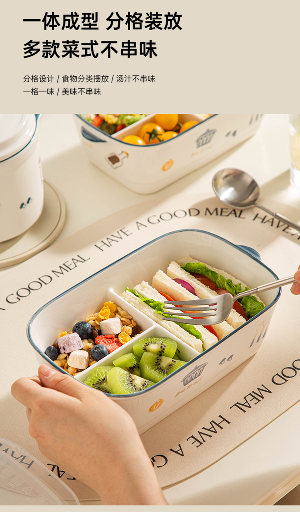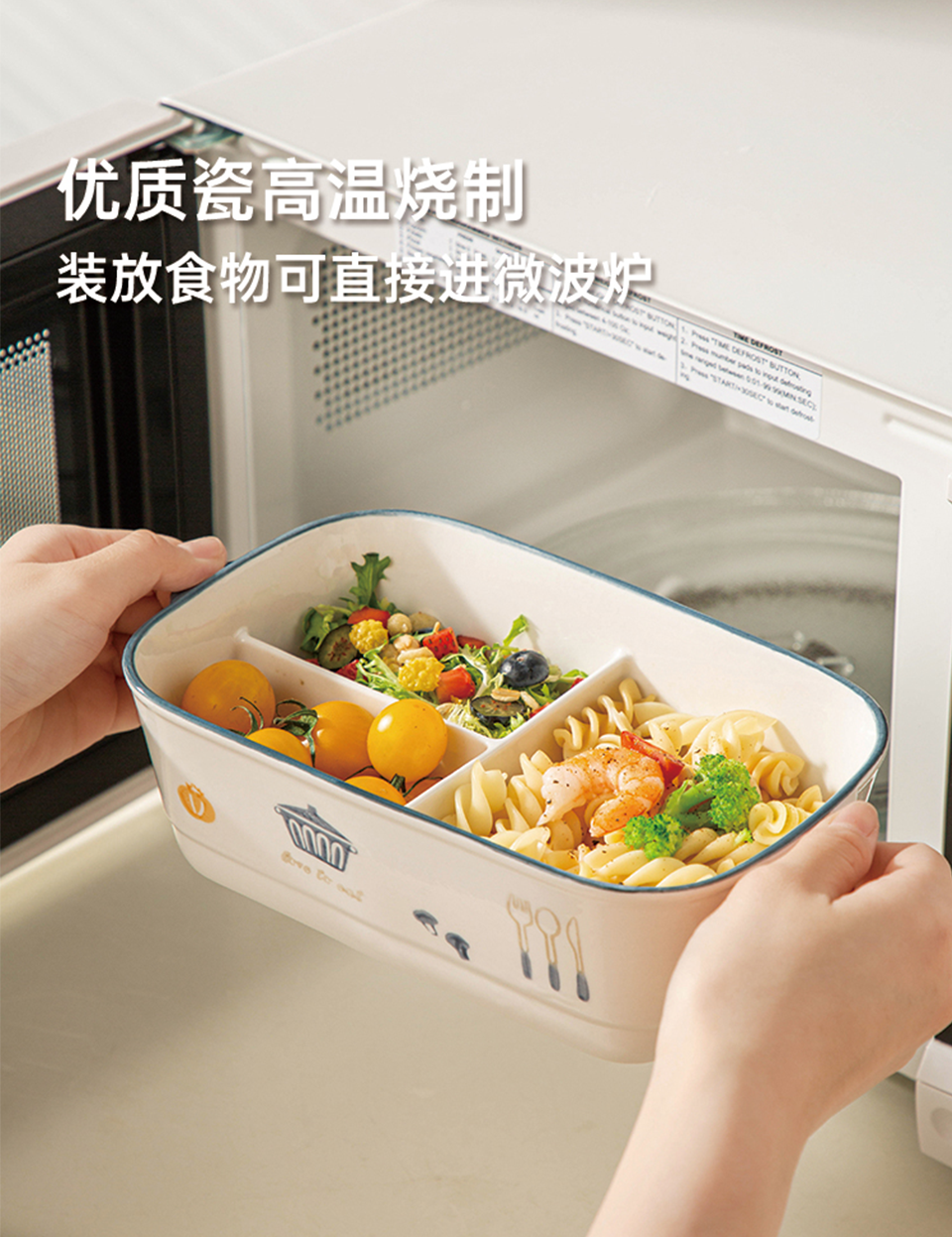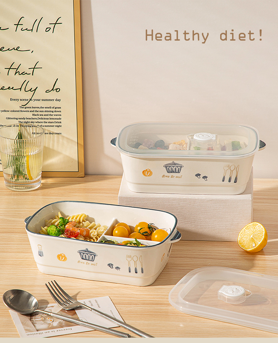 陶瓷风格盘陶瓷分格饭盒新款儿童分餐便当盒三格上班族轻食带饭