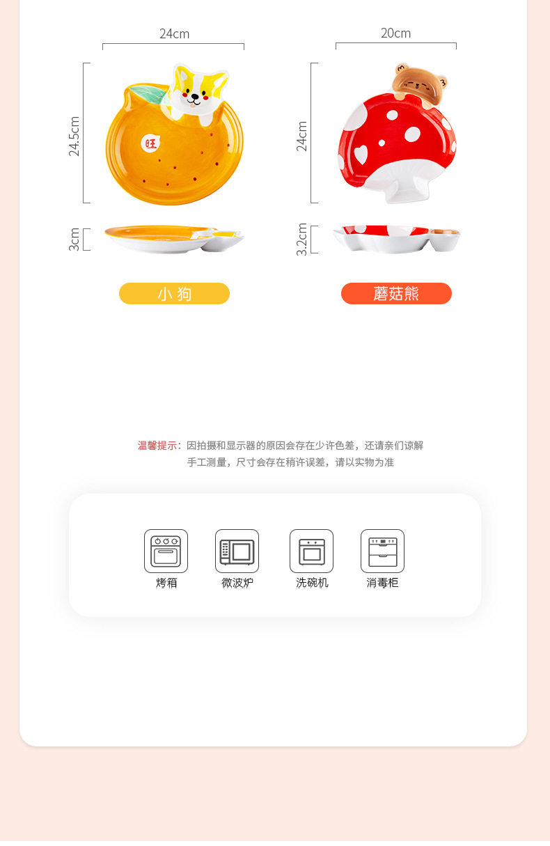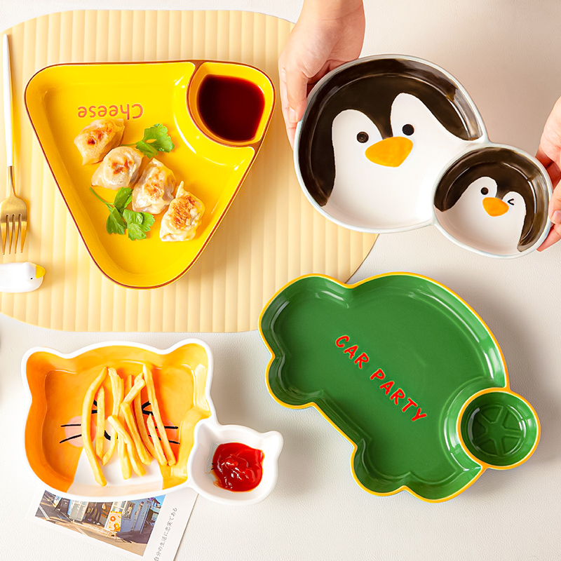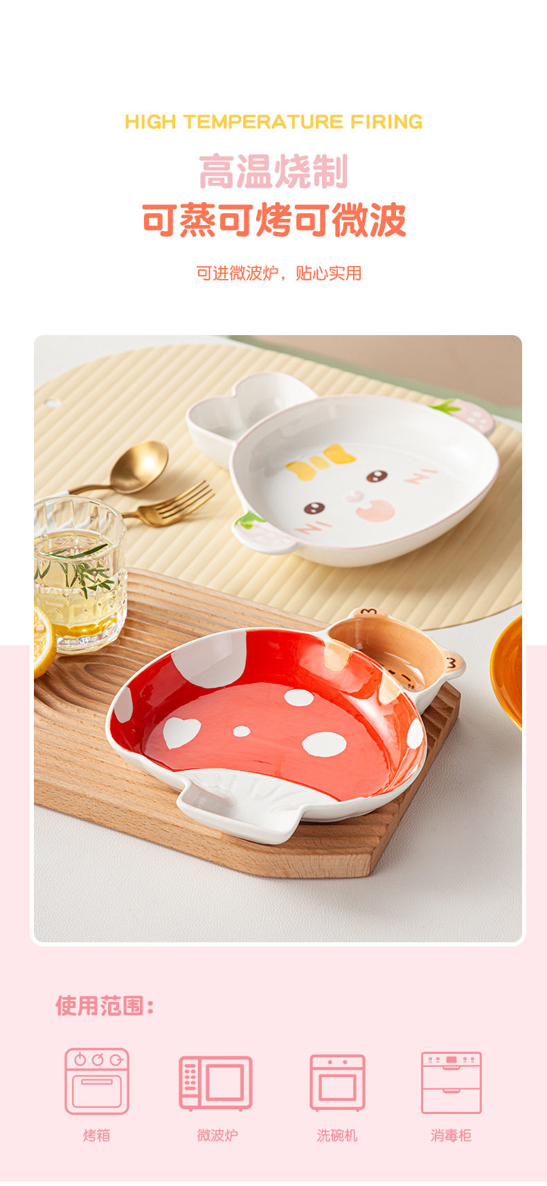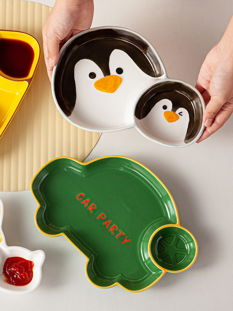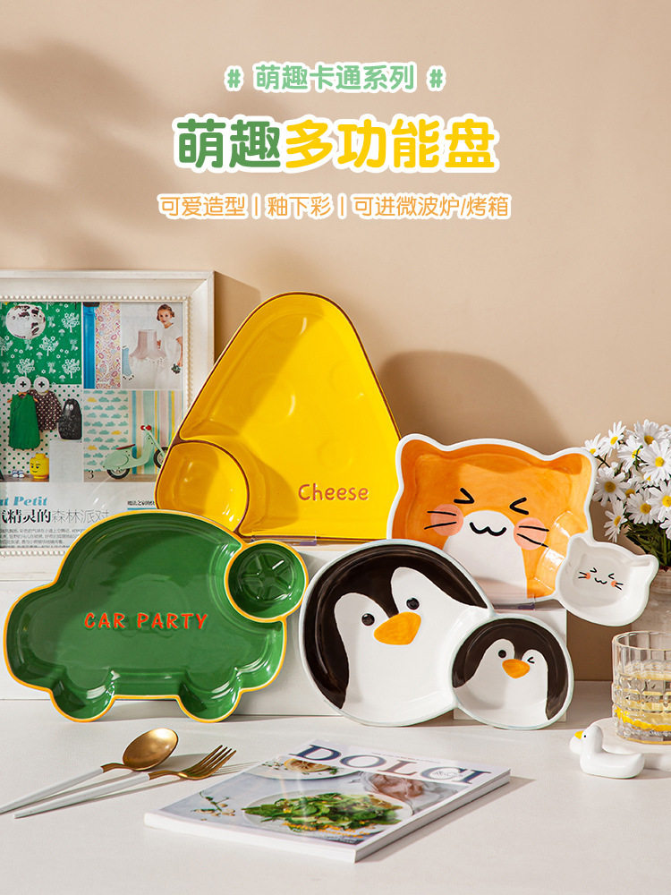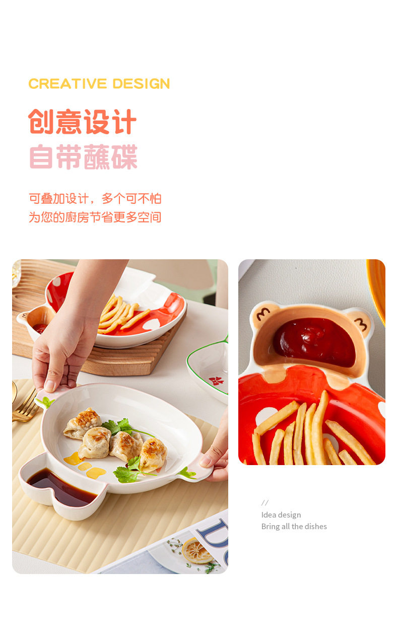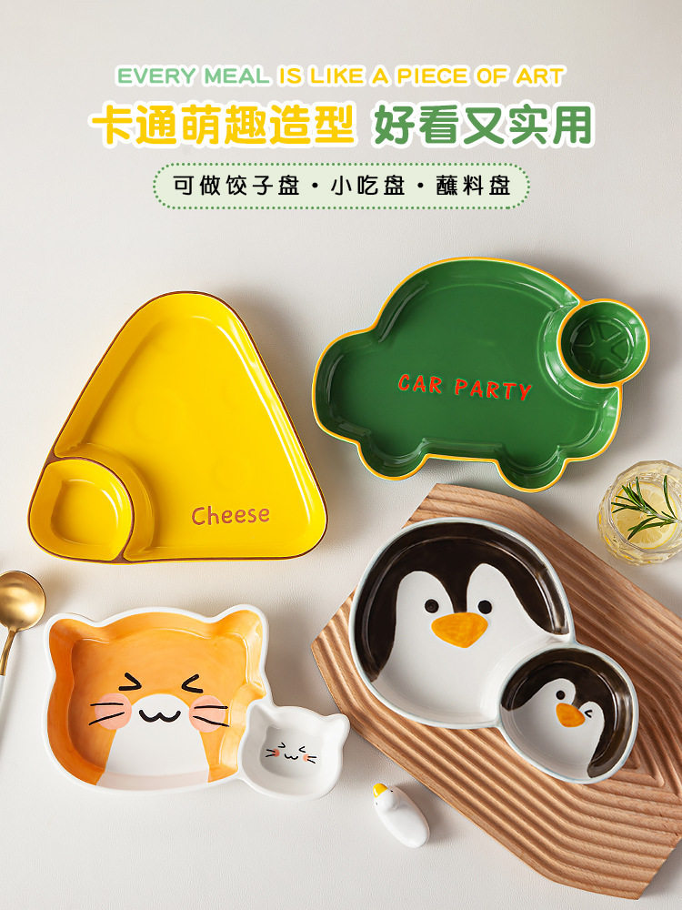陶煲王可爱卡通儿童分格餐盘早餐点心盘饺子盘小盘子家用2025新款