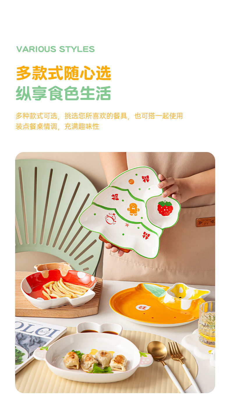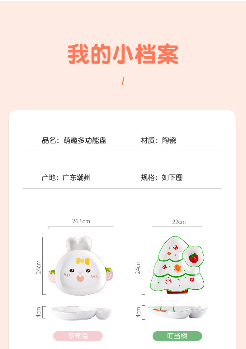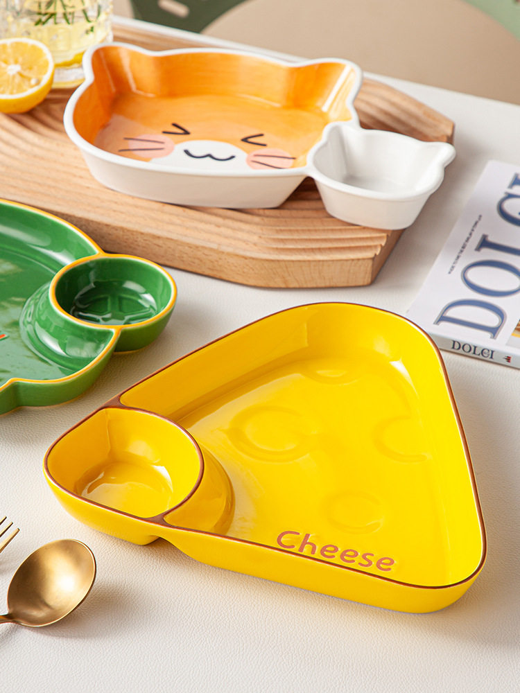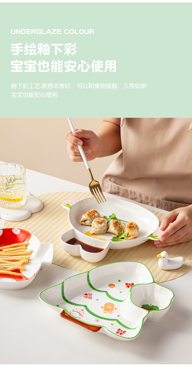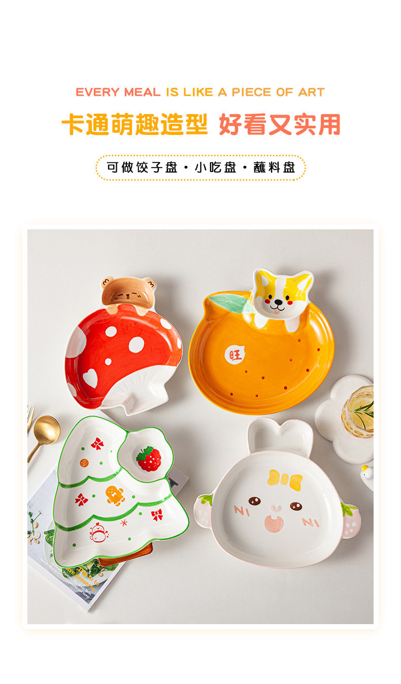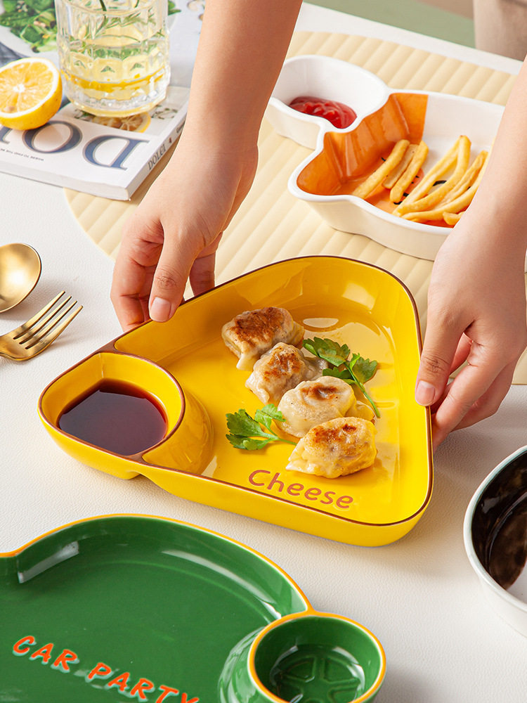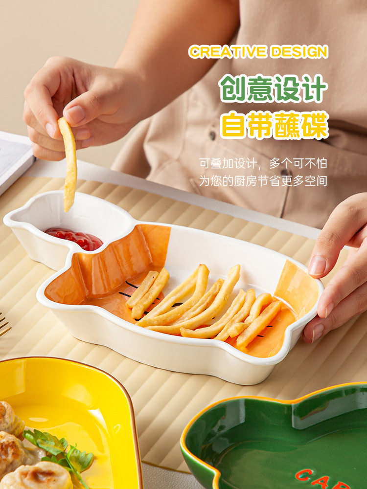 陶煲王可爱卡通儿童分格餐盘早餐点心盘饺子盘小盘子家用2025新款