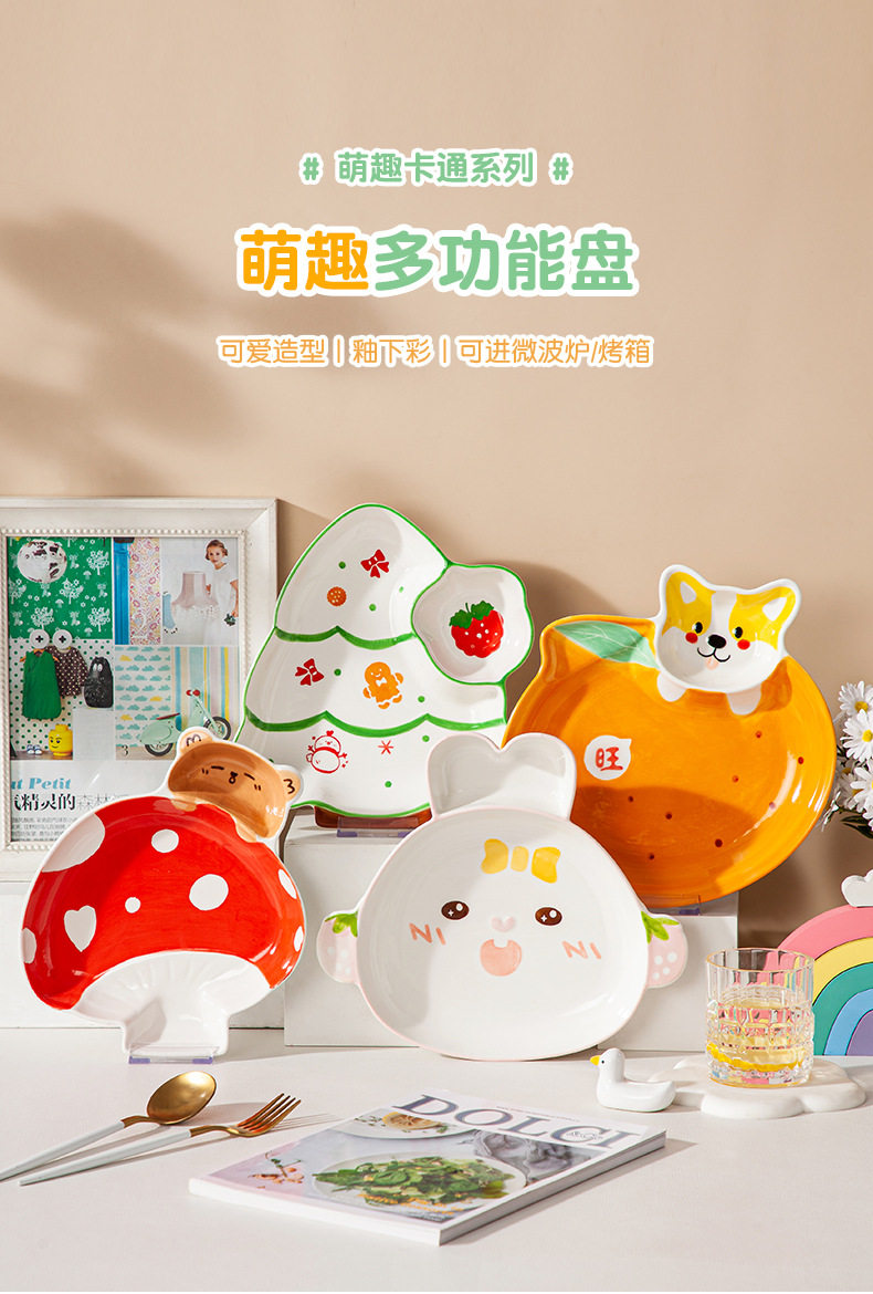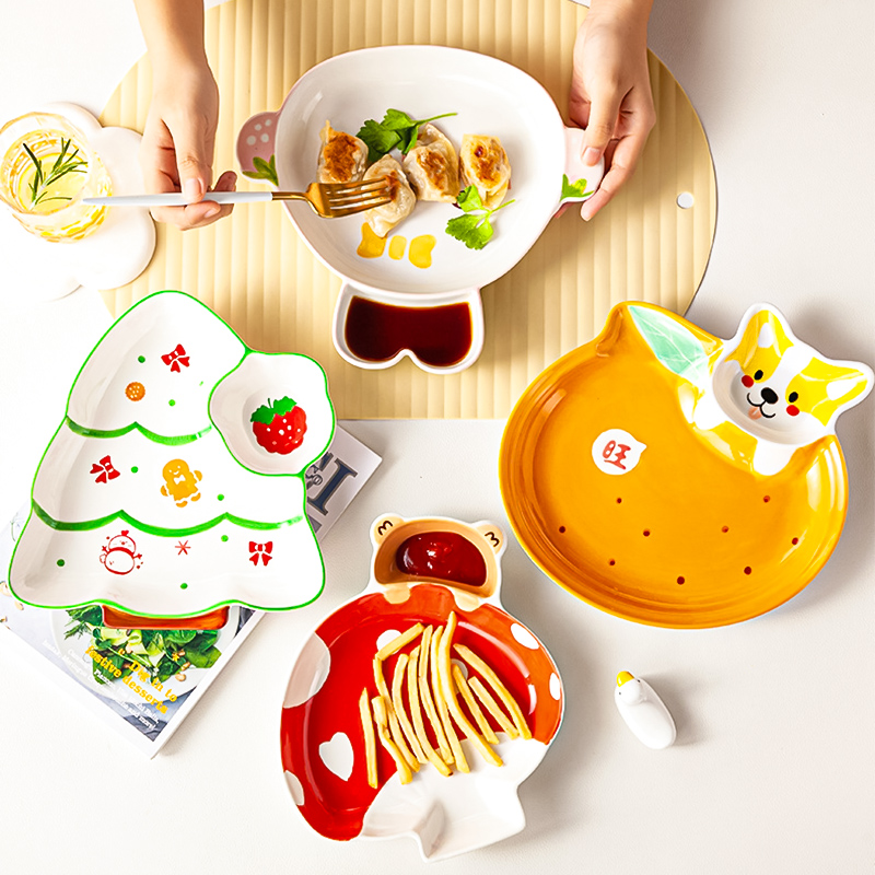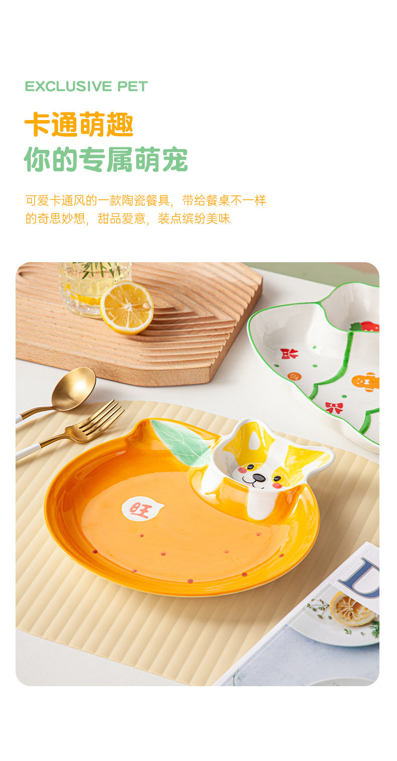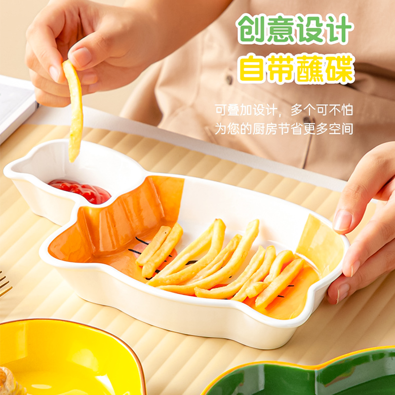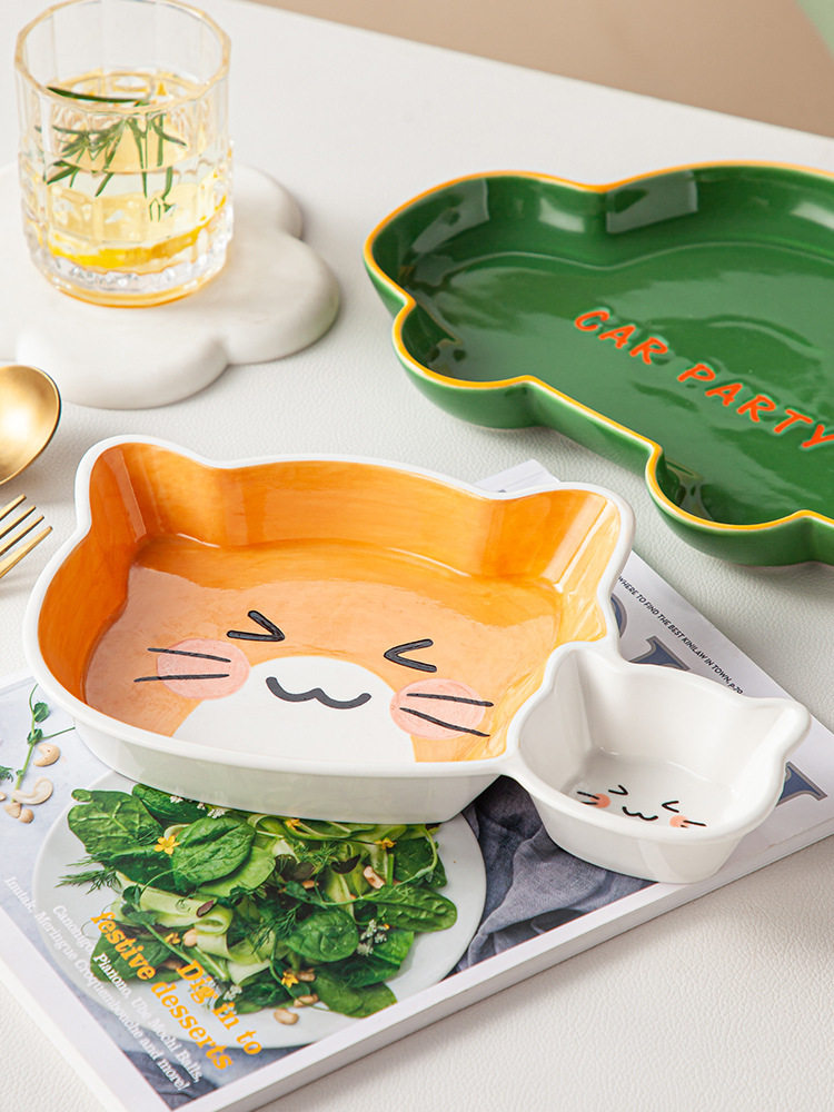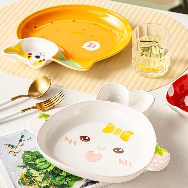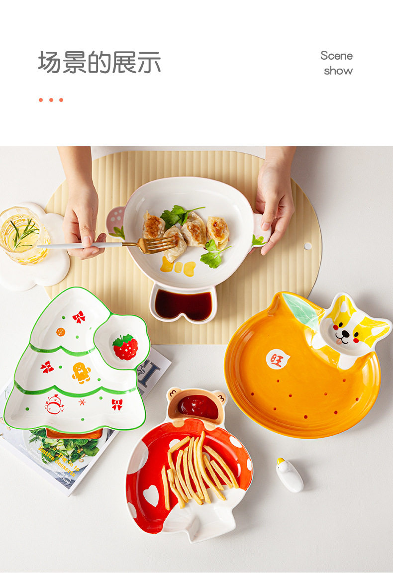 陶煲王可爱卡通儿童分格餐盘早餐点心盘饺子盘小盘子家用2025新款