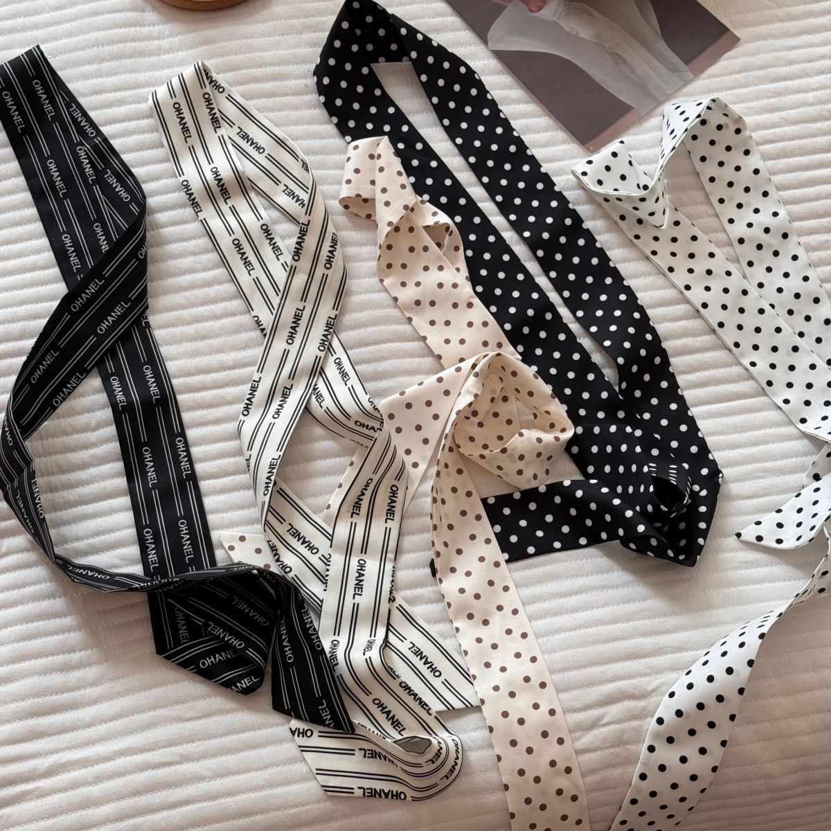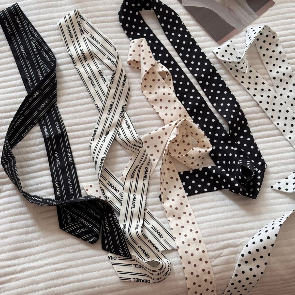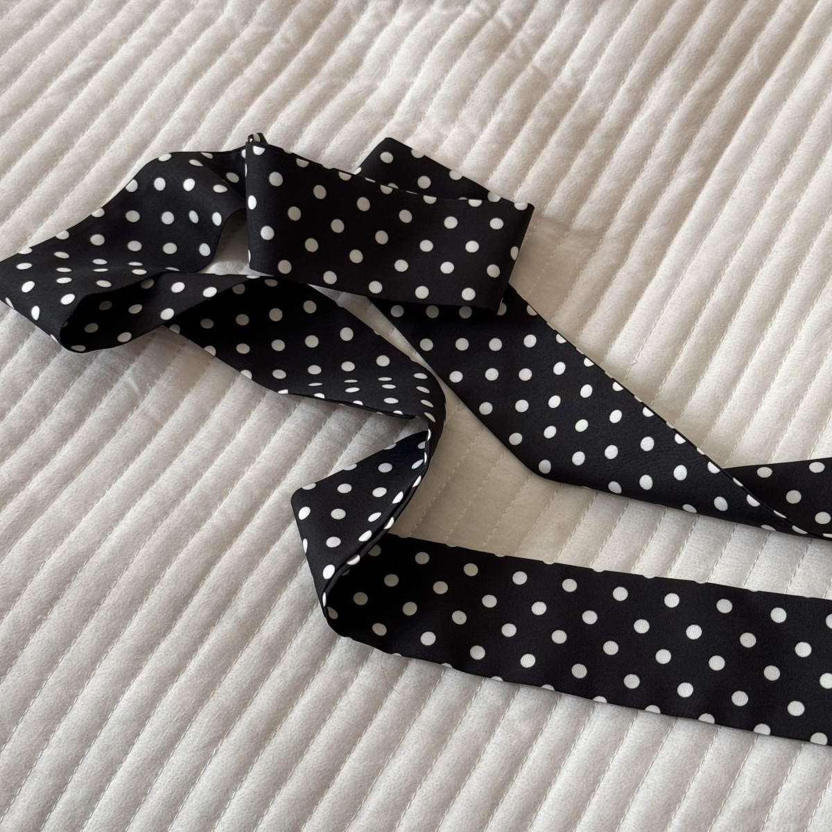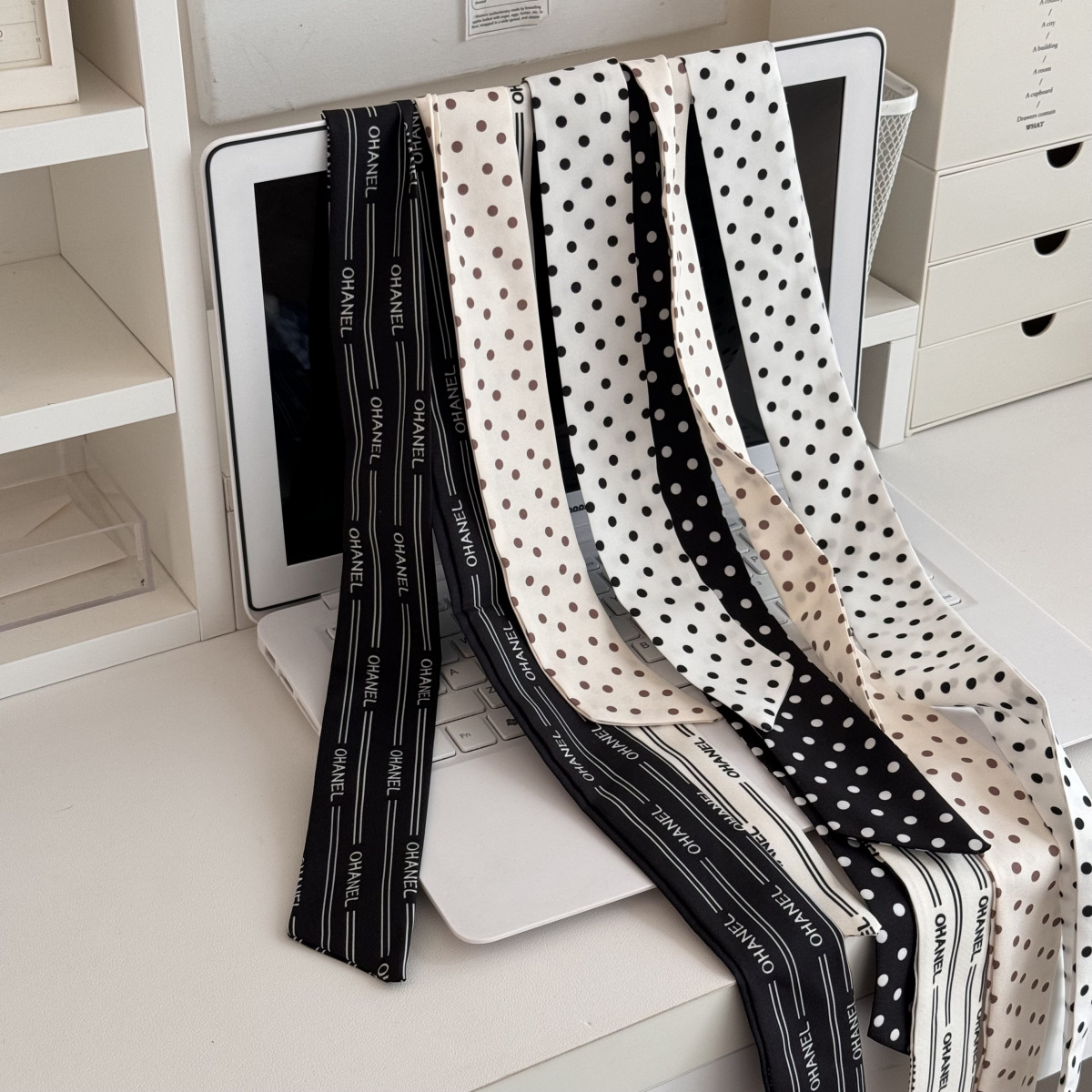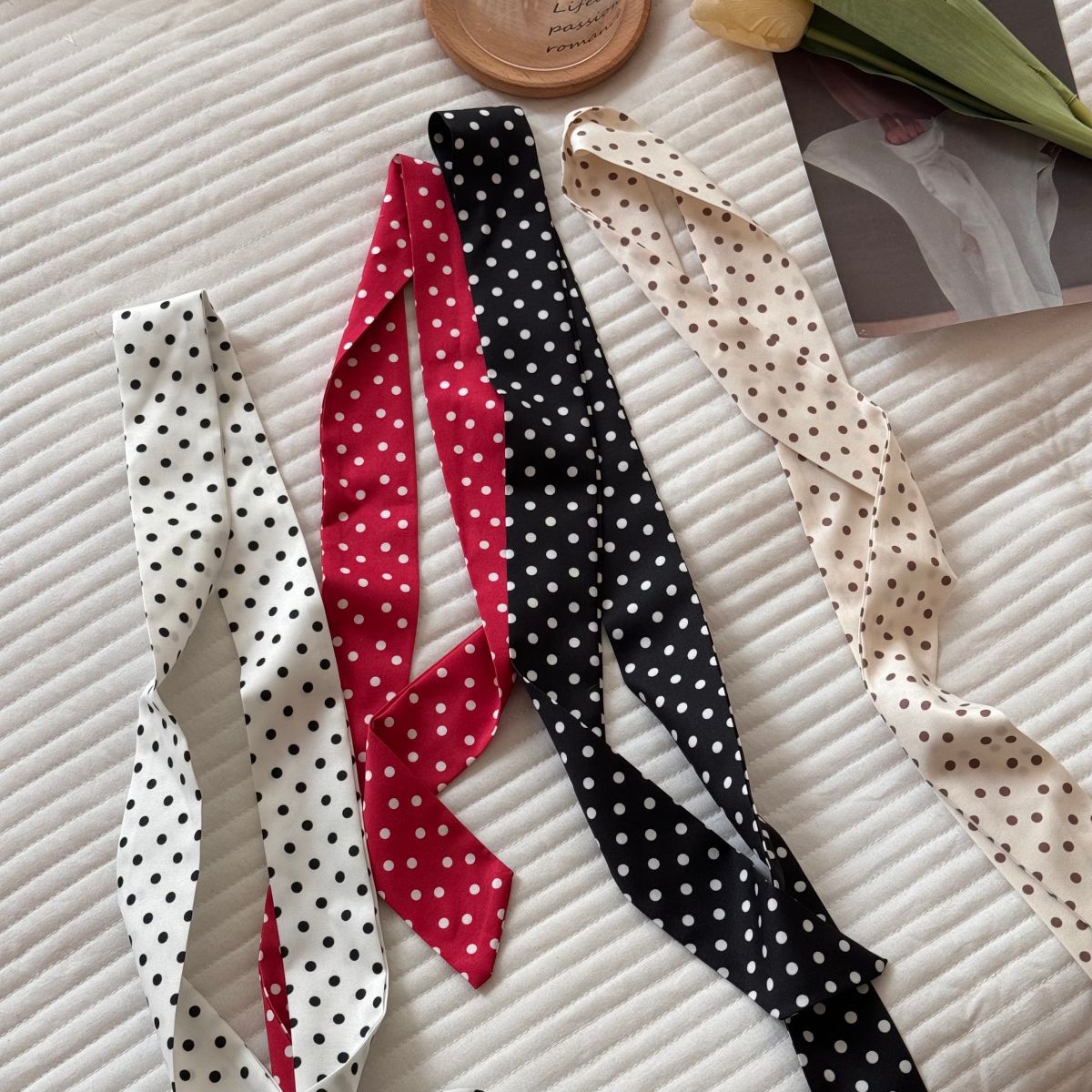温柔长条百搭丝巾波点高级感小众发带绑马尾辫包包丝带发饰新款