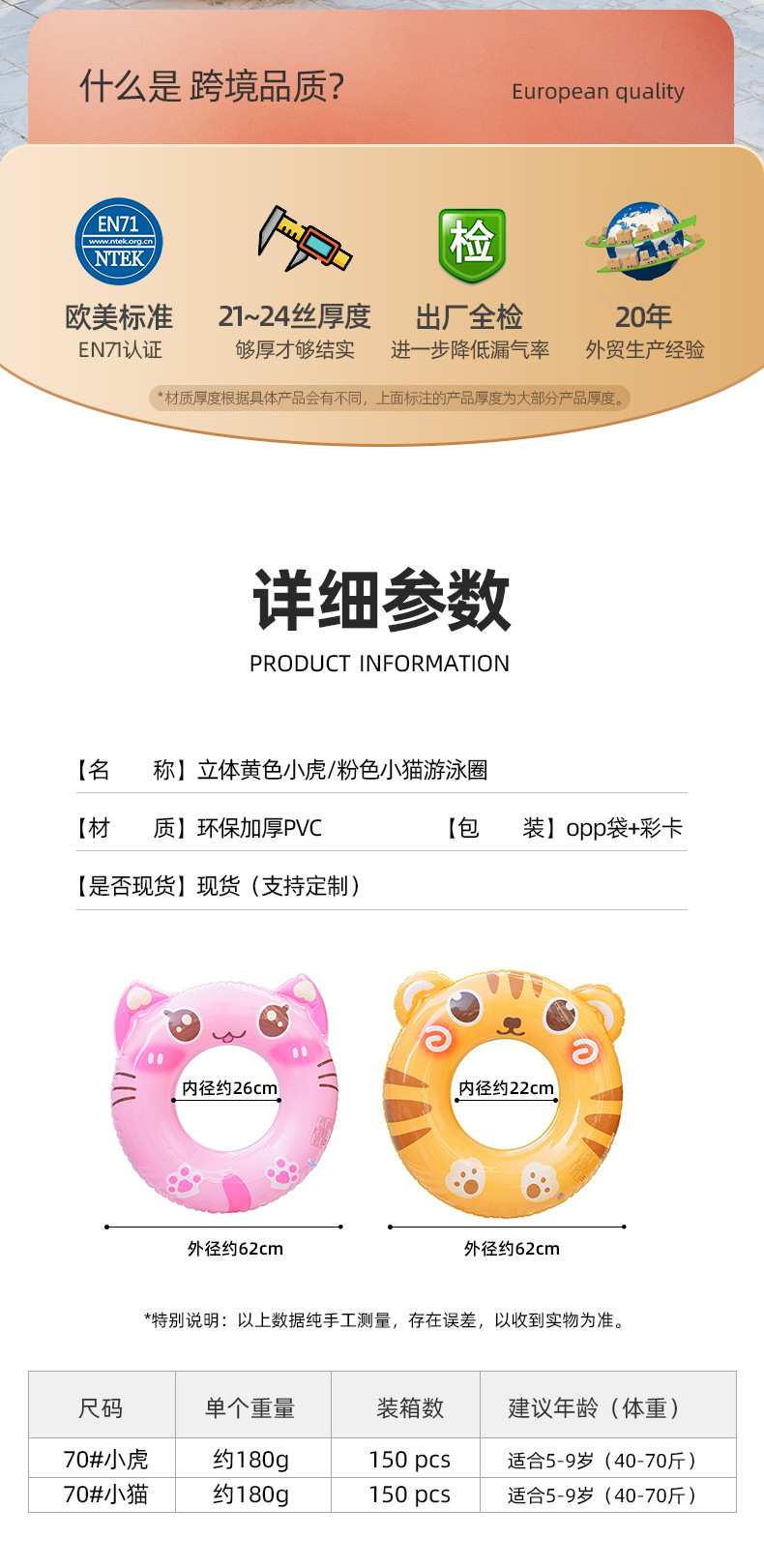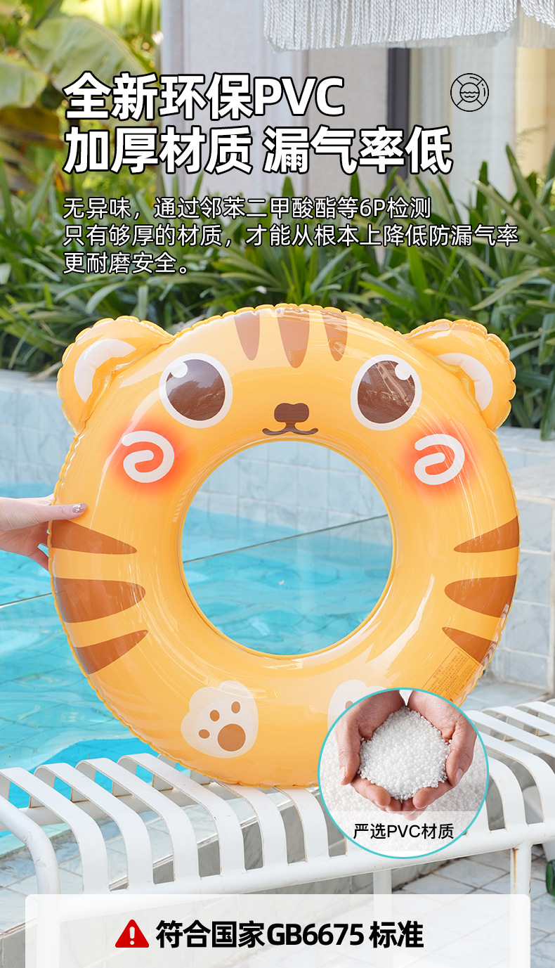 义乌工厂加厚儿童游泳圈6-10岁女孩宝宝卡通小老虎充气游圈批发