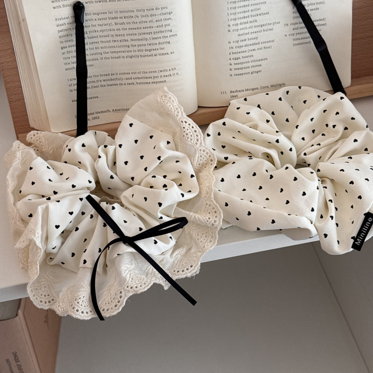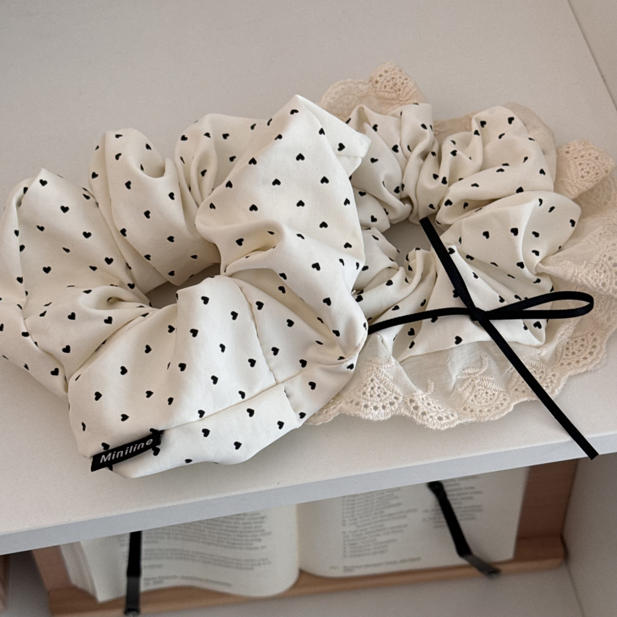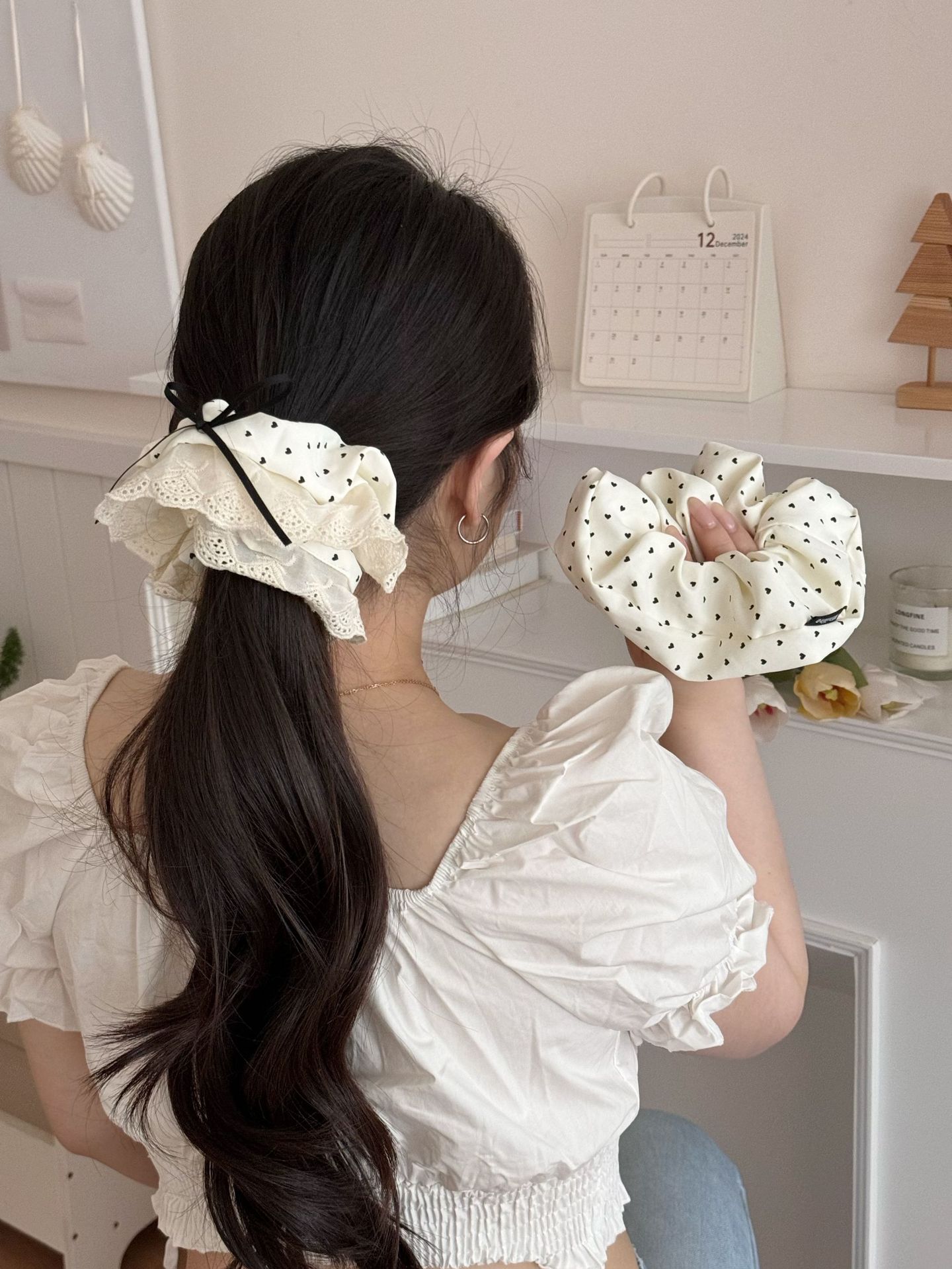 奶白色爱心波点大肠发圈超大头花低马尾高级感发饰头绳发绳发饰
