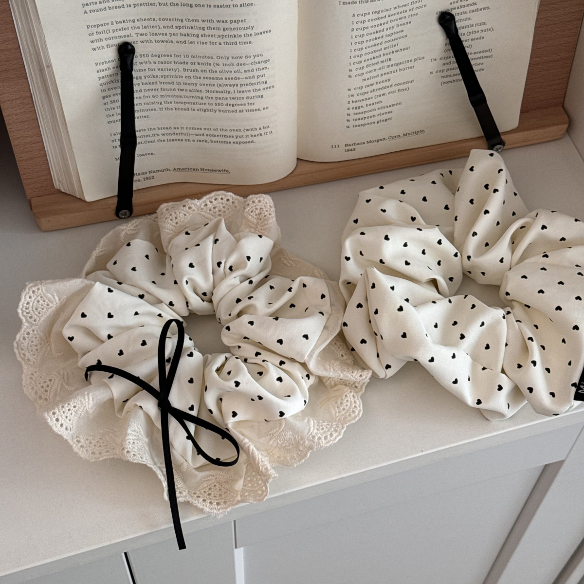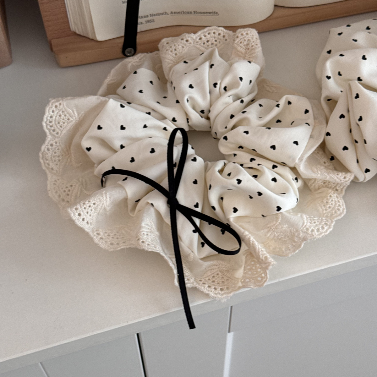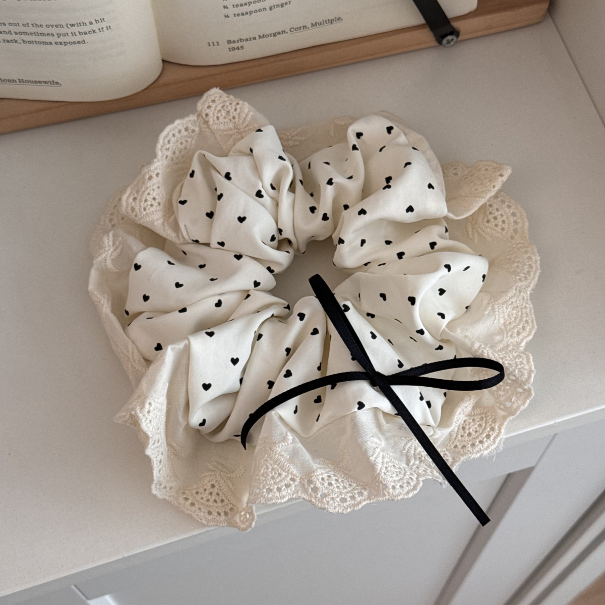 奶白色爱心波点大肠发圈超大头花低马尾高级感发饰头绳发绳发饰