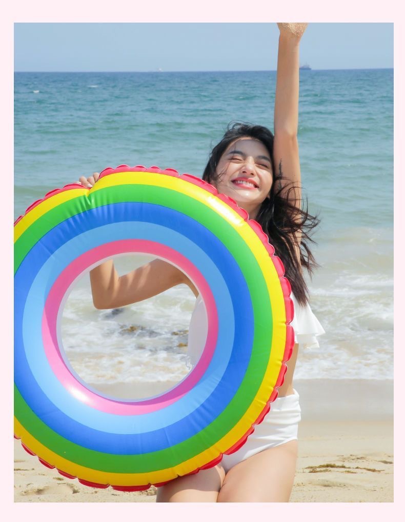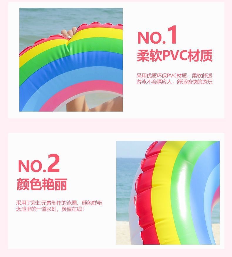 游泳圈成人儿童加厚彩虹泳圈男女童腋下圈充气救生圈加厚游泳浮圈