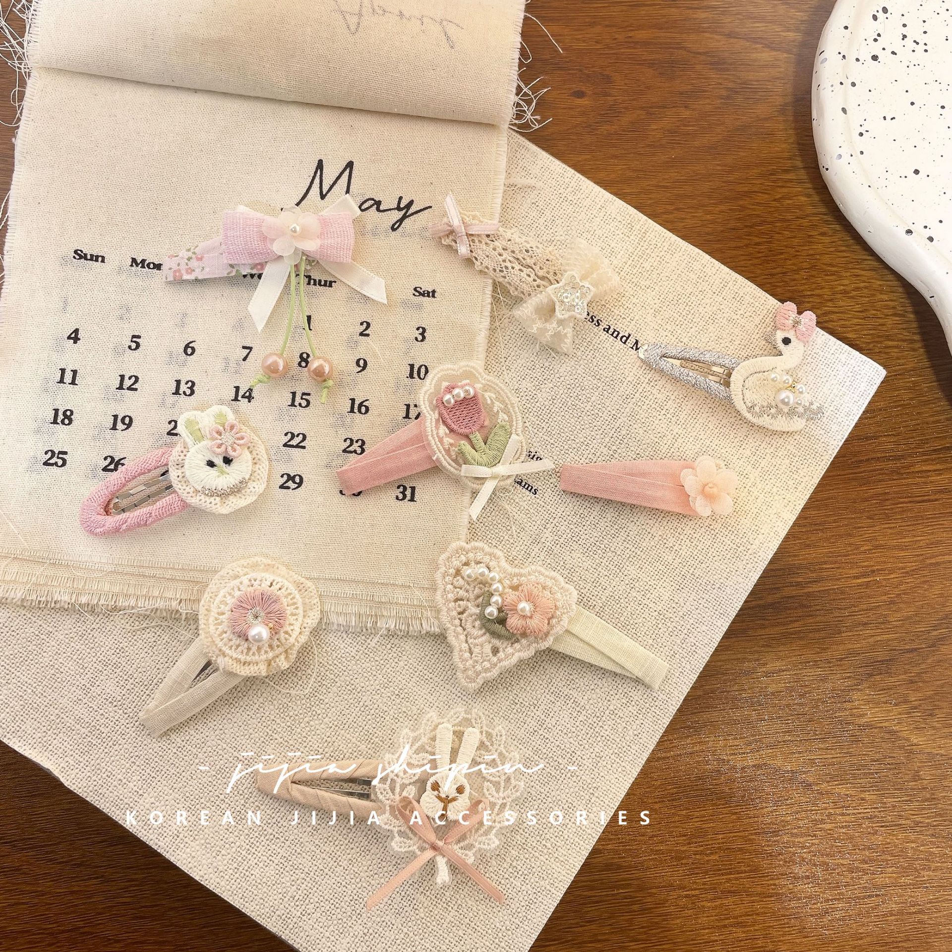 韩系甜美蕾丝网纱花朵发夹手工刺绣贴布小兔BB夹可爱女孩粉系发饰