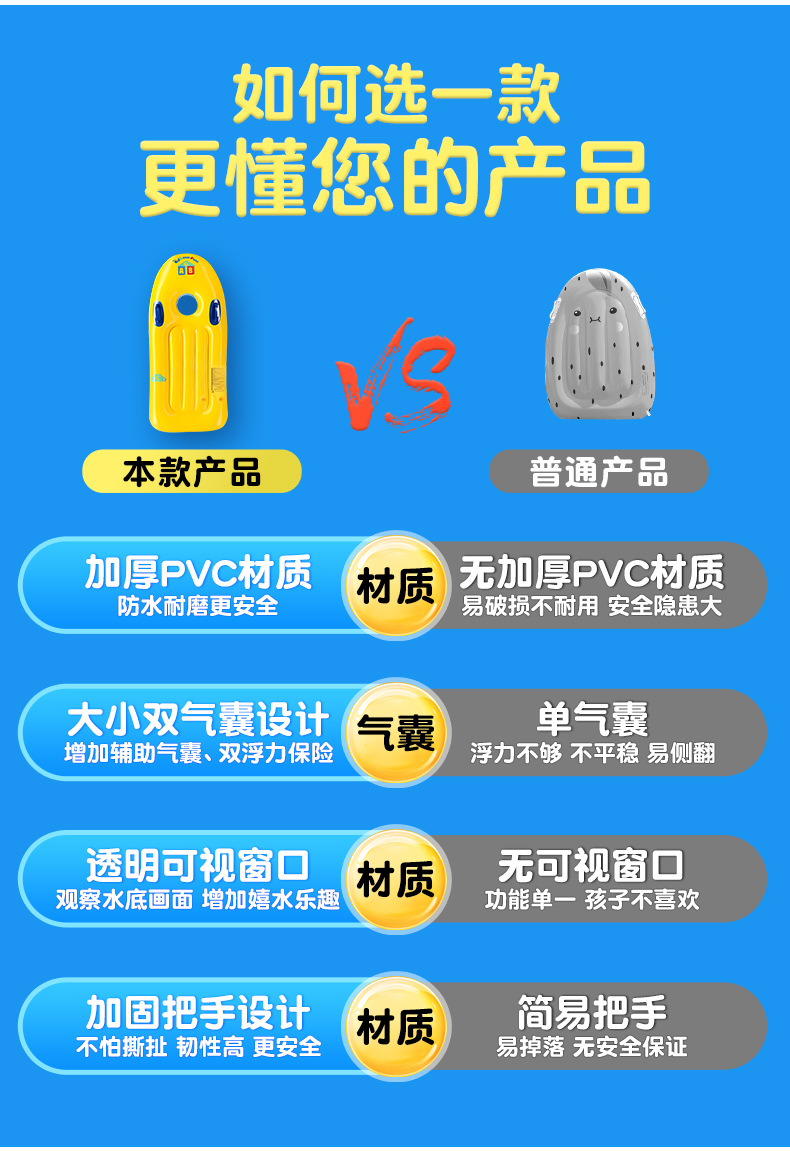 冲浪板儿童加厚戏水浮排加大带把手小孩游泳圈浮板滑水板游泳装备