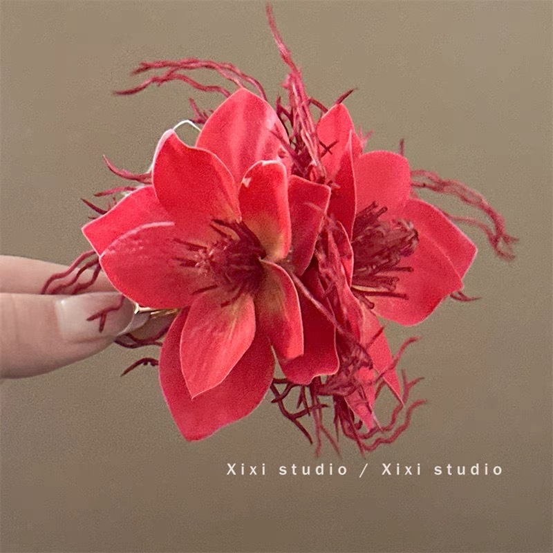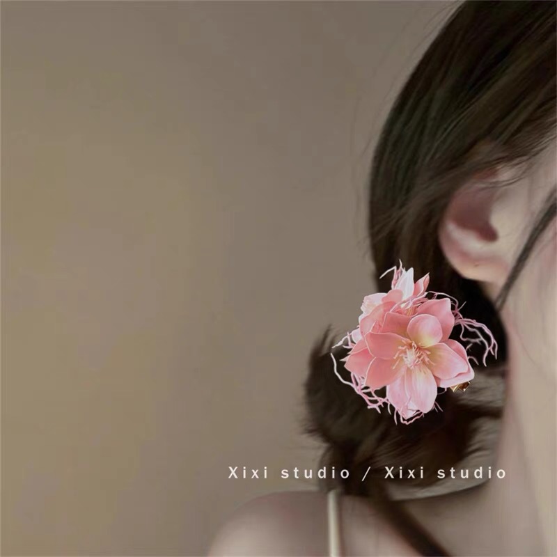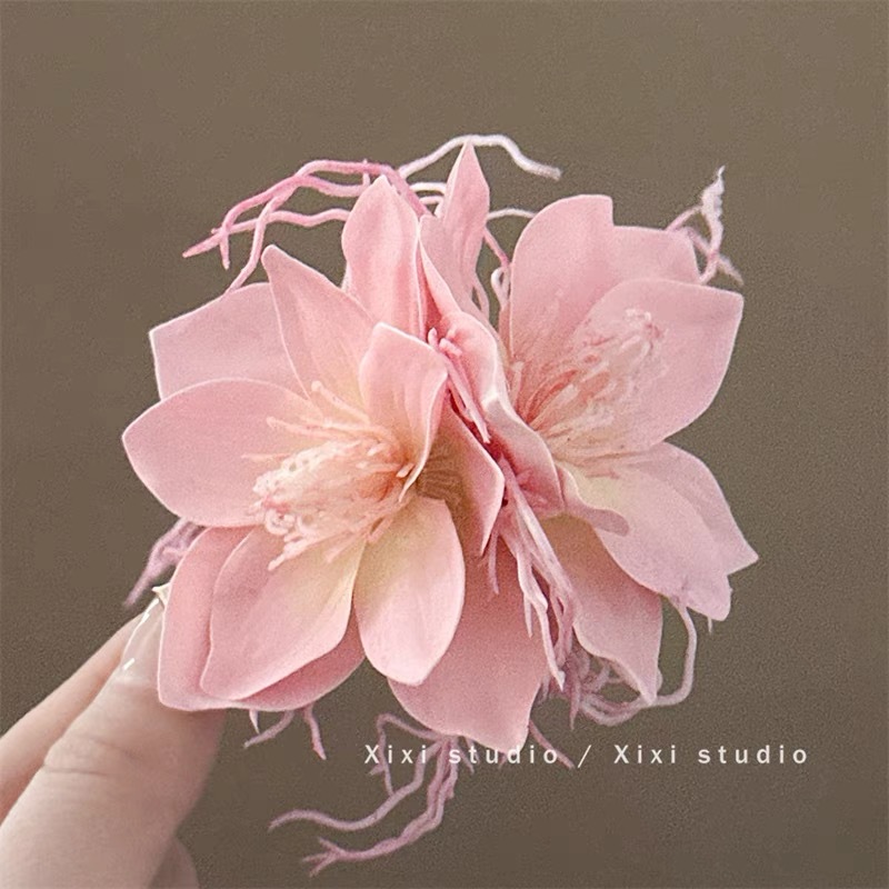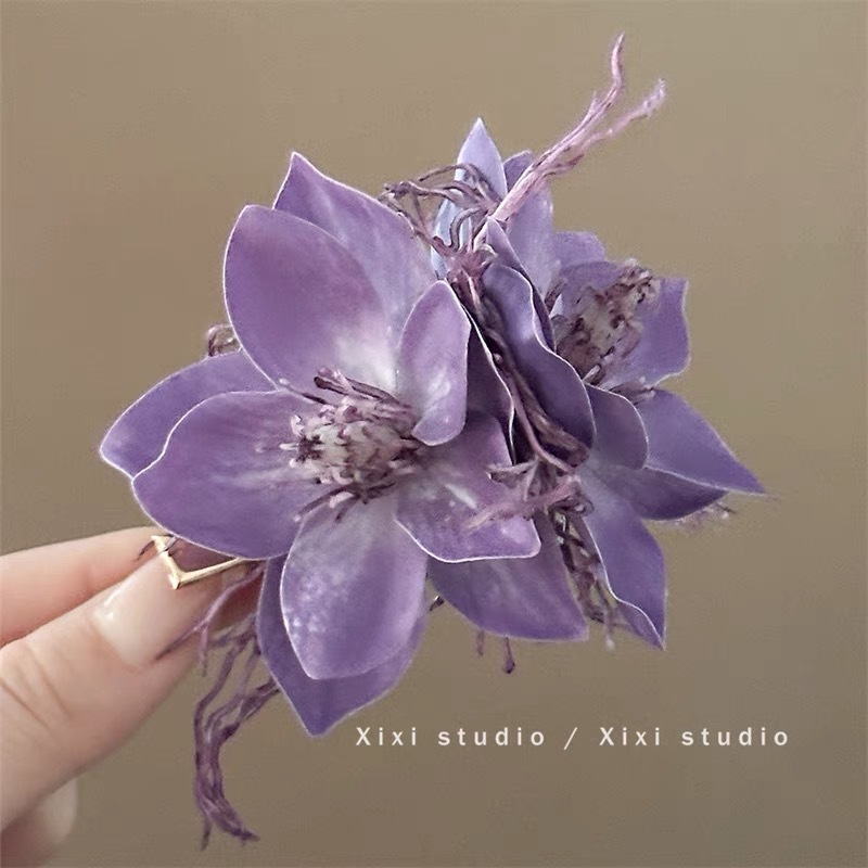 韵味紫色龙须茉莉发夹氛围感仿真花鸭嘴夹侧边刘海夹海边拍照发饰