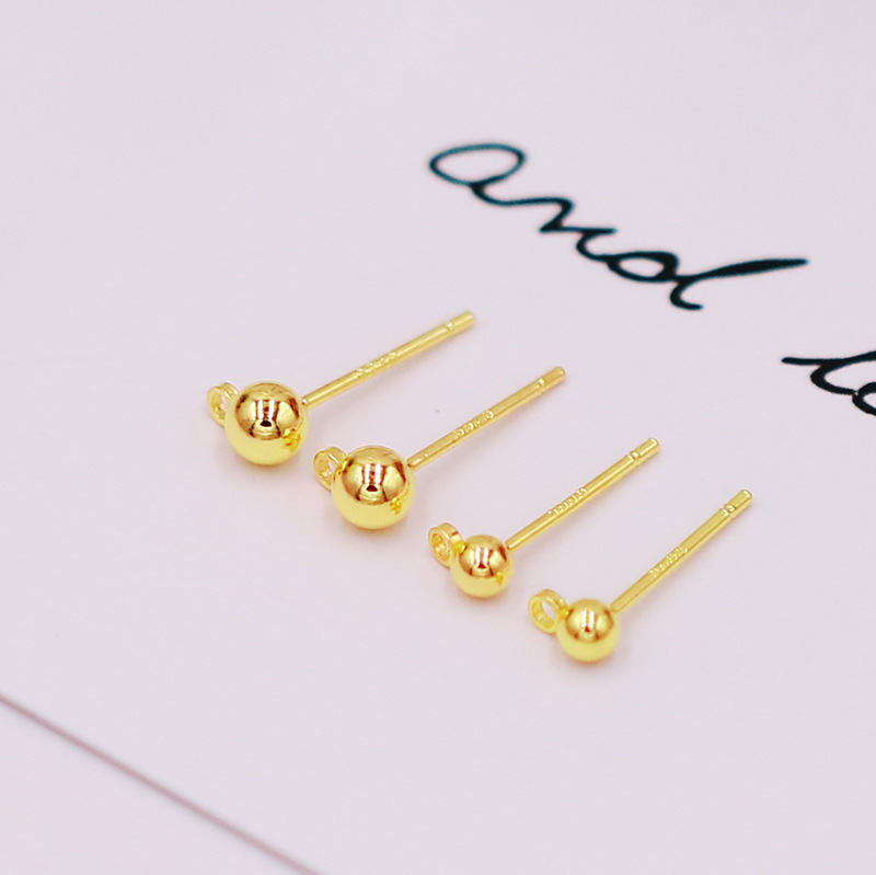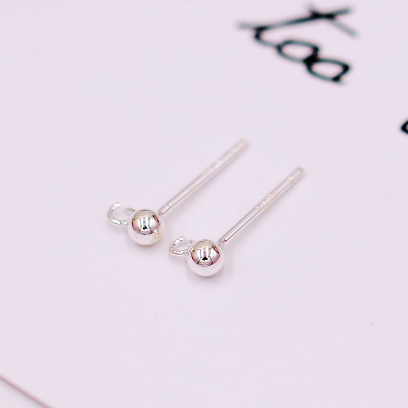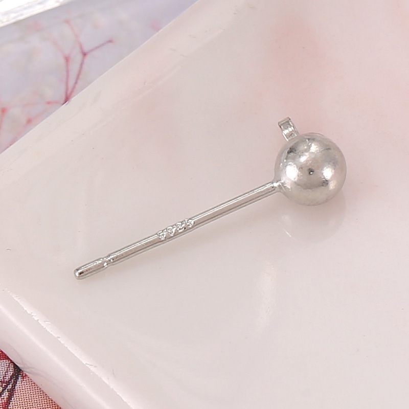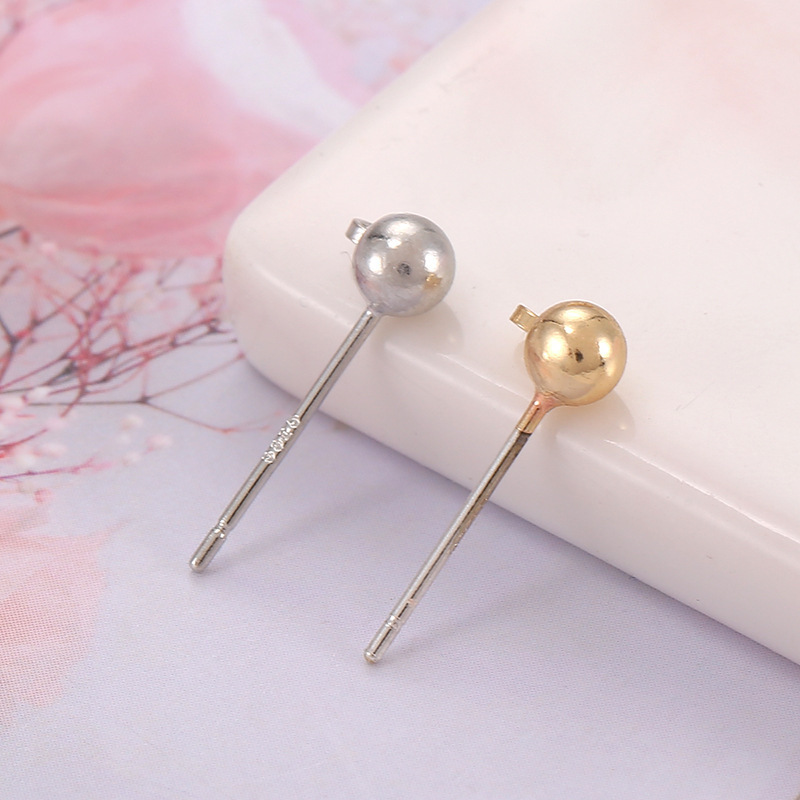 保色925银针带吊圈豆豆耳钉耳针圆球耳环针配件 diy耳饰配件A58