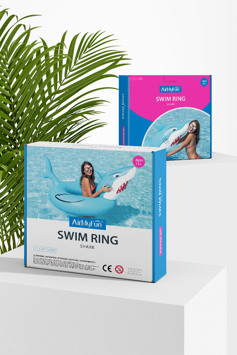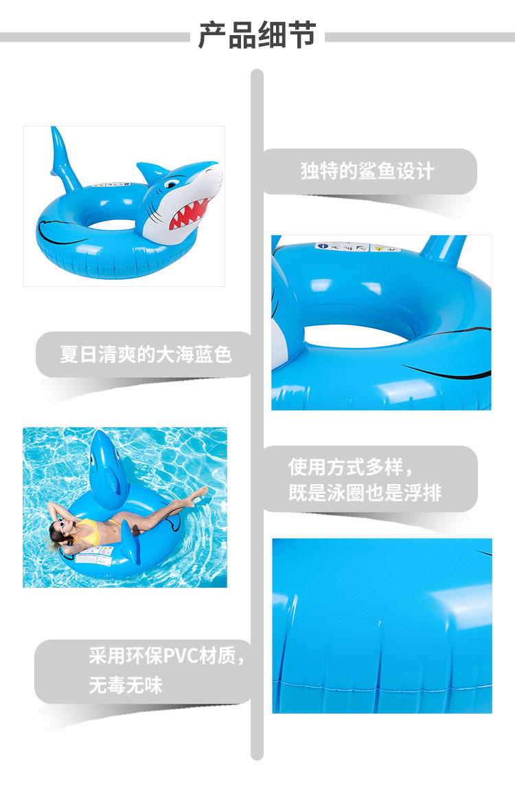 现货批发鲨鱼泳圈动物印花游泳圈水上充气玩具成人戏水充气游泳圈