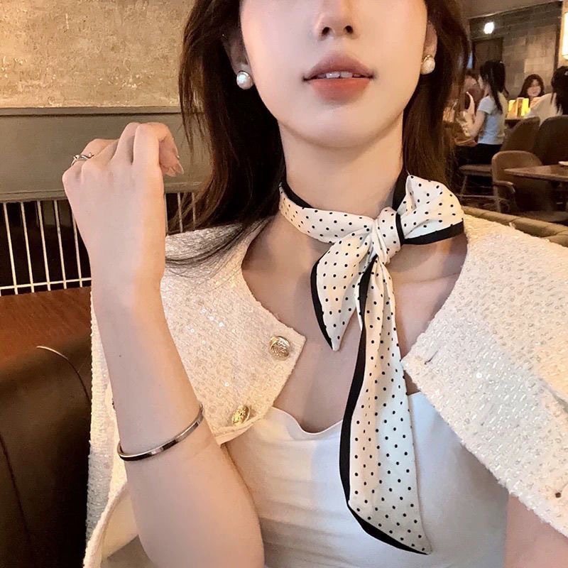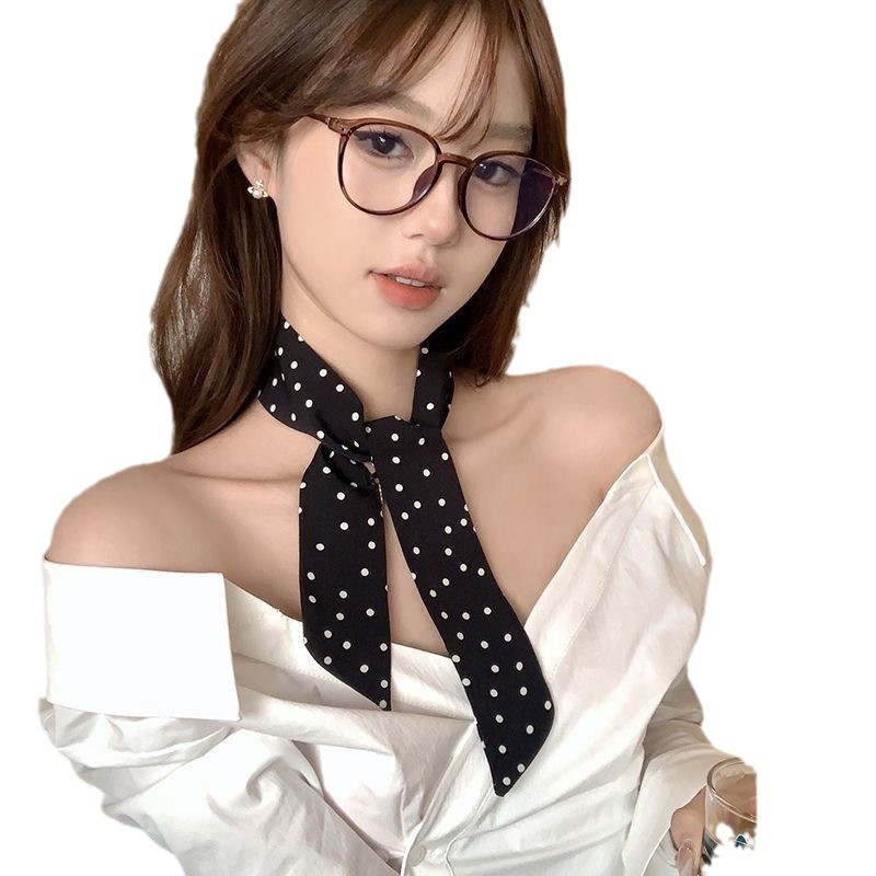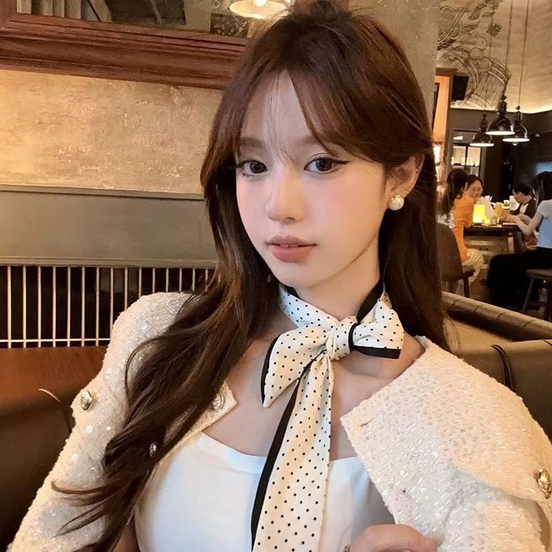 温柔韩系气质飘带波点颈带头绳发带小丝巾领带细窄高级感头饰发饰