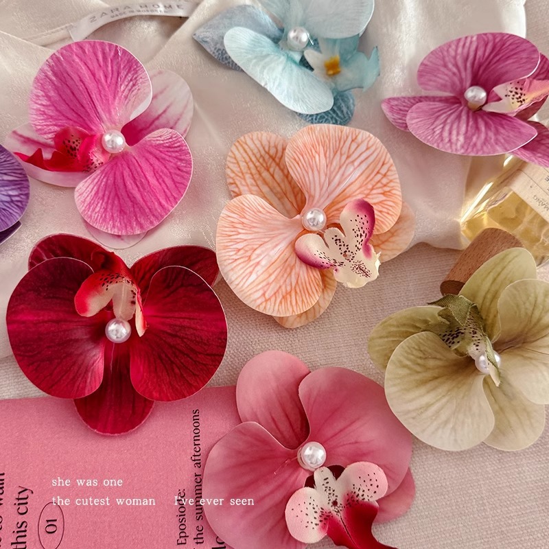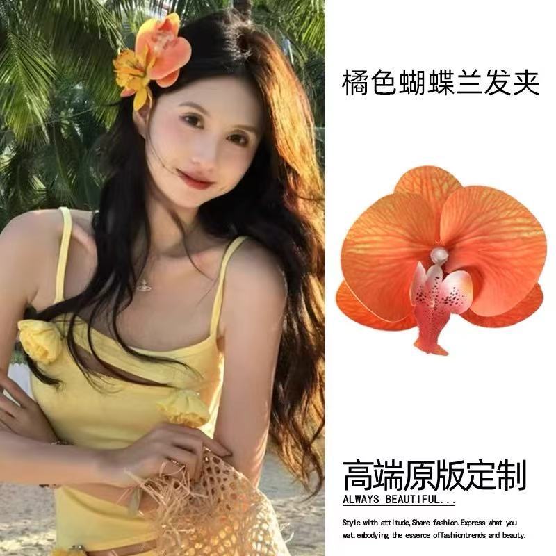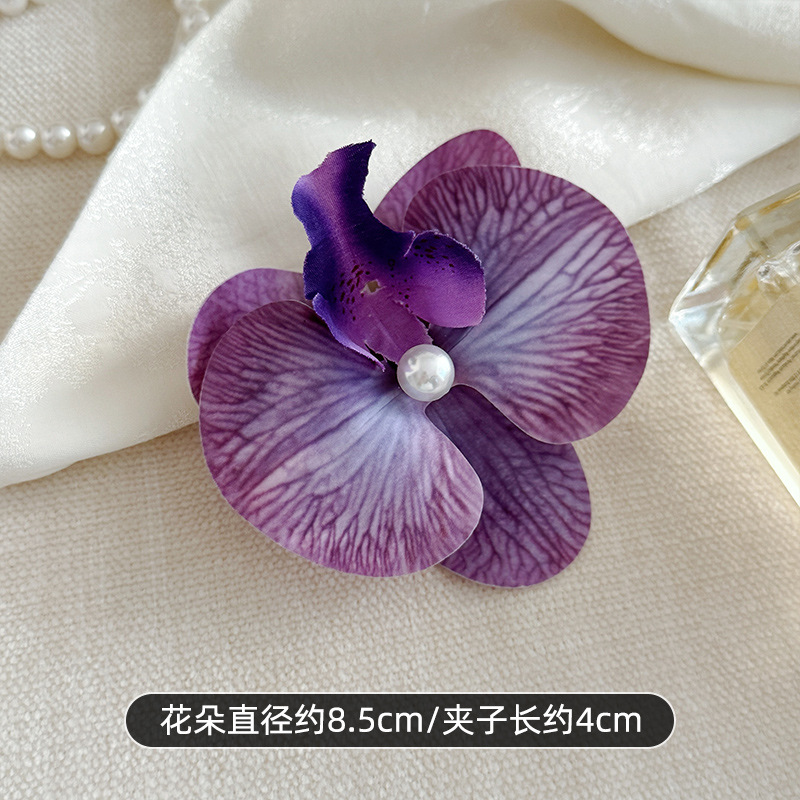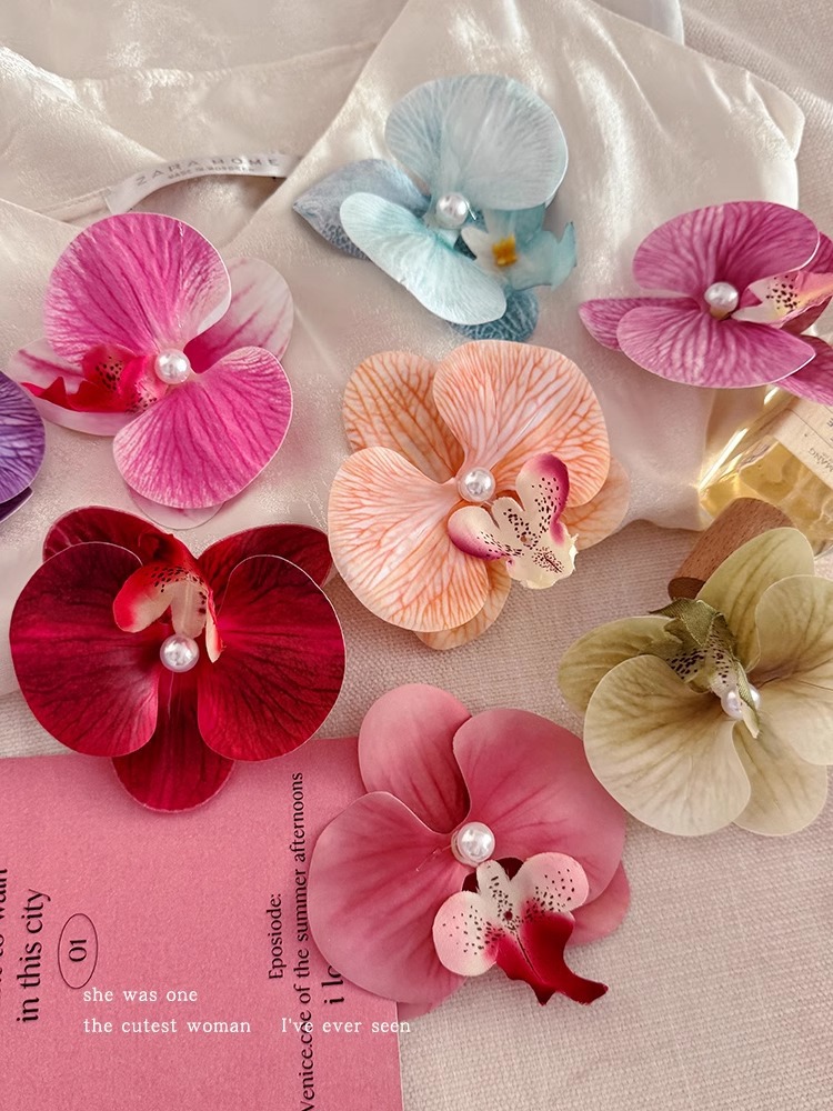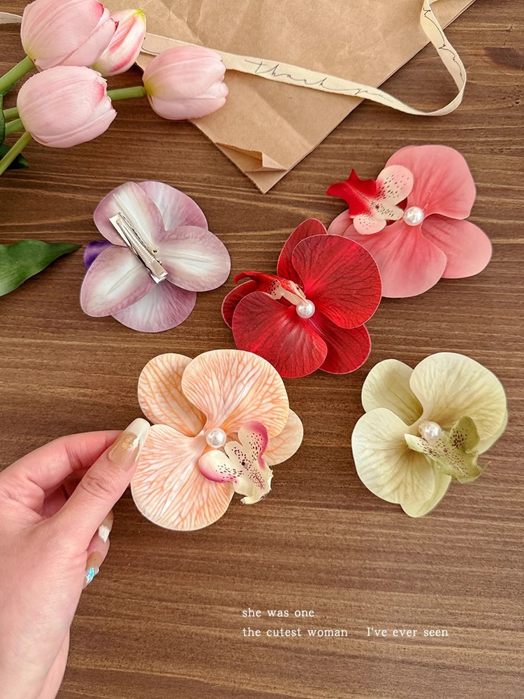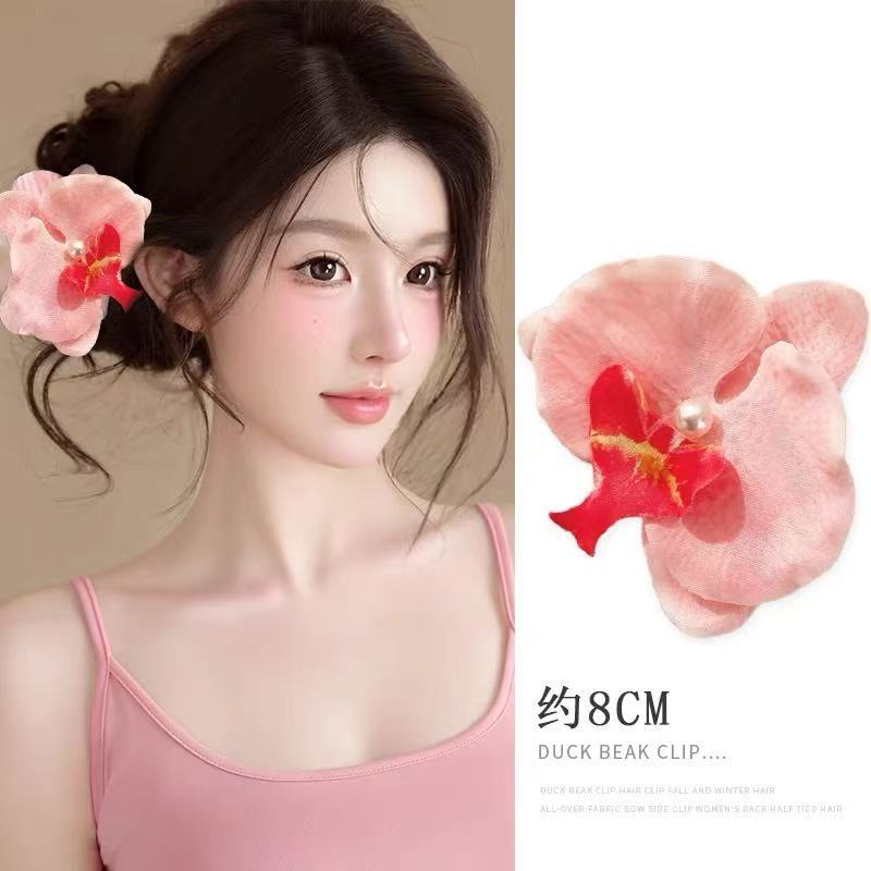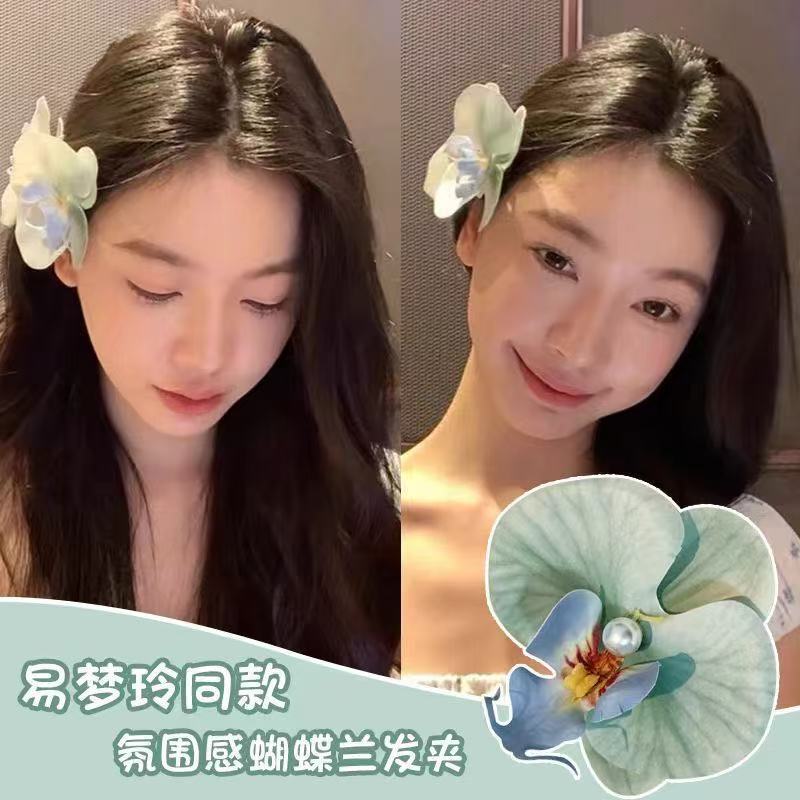 敲仙蝴蝶兰发夹~法式公主超仙花朵发夹盘发卡子氛围感发饰头饰女