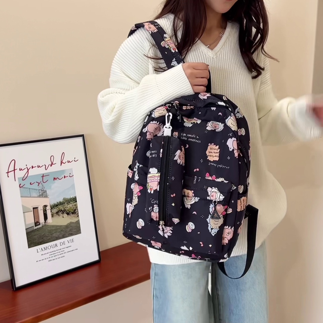日系ins可爱少女卡通水豚双肩包初高中大学生印花书包通勤背包