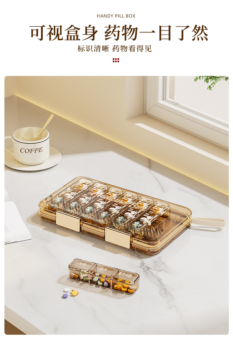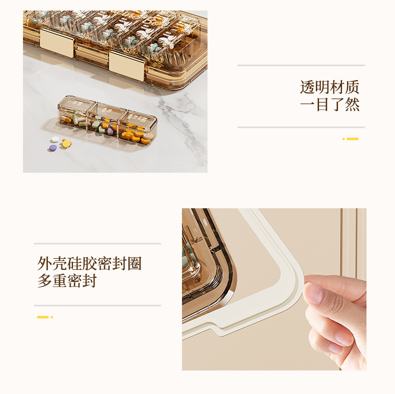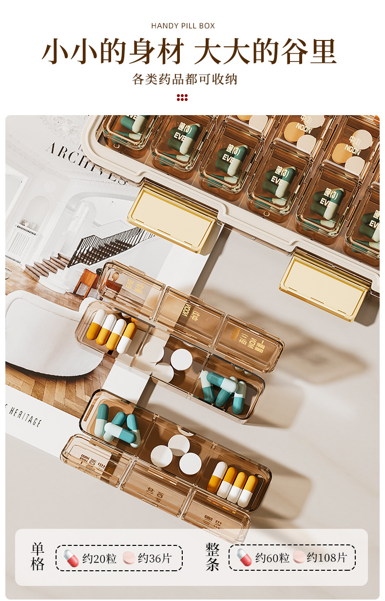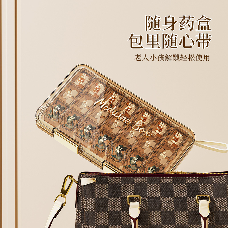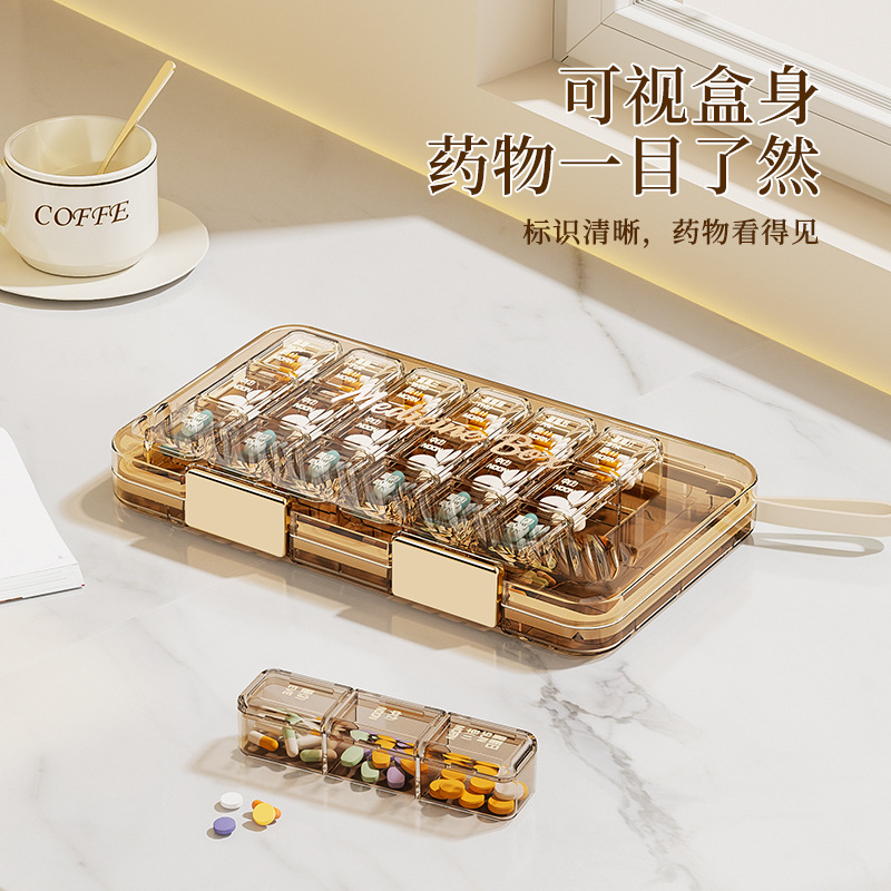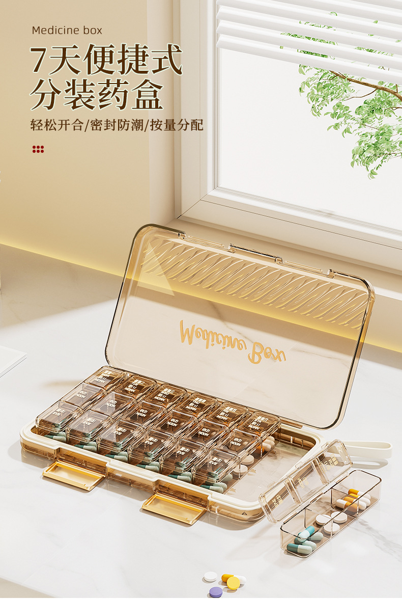 药盒便携式食品级分装透明小盒子带盖塑料一周7天多格药品收纳盒