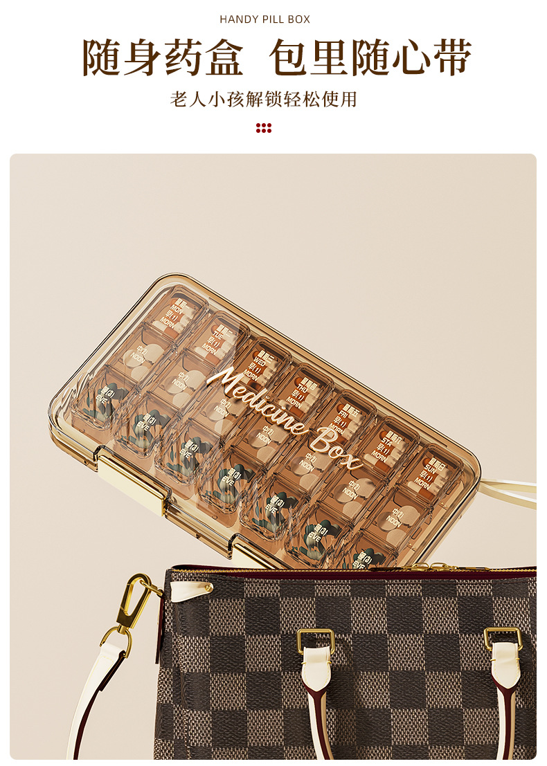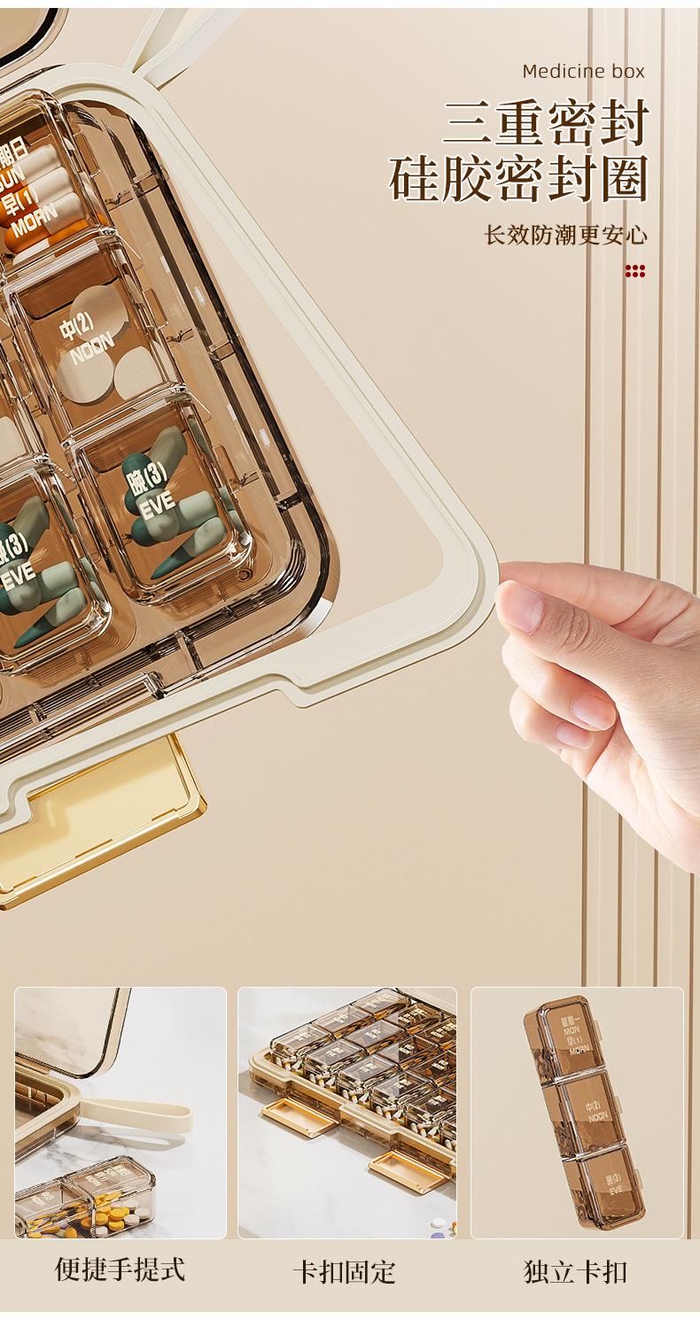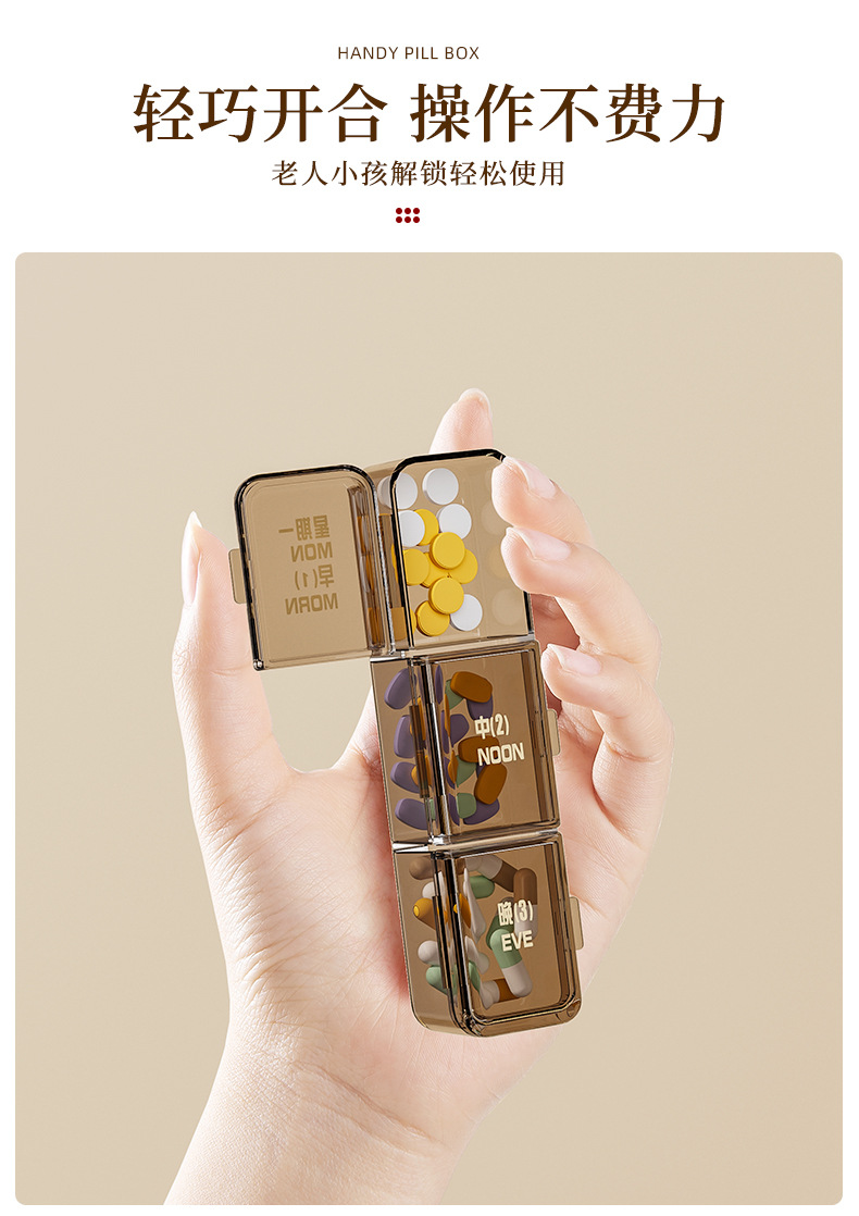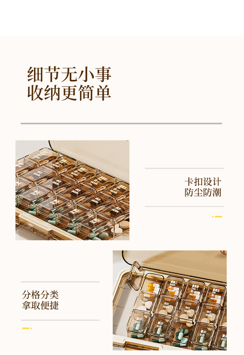 药盒便携式食品级分装透明小盒子带盖塑料一周7天多格药品收纳盒