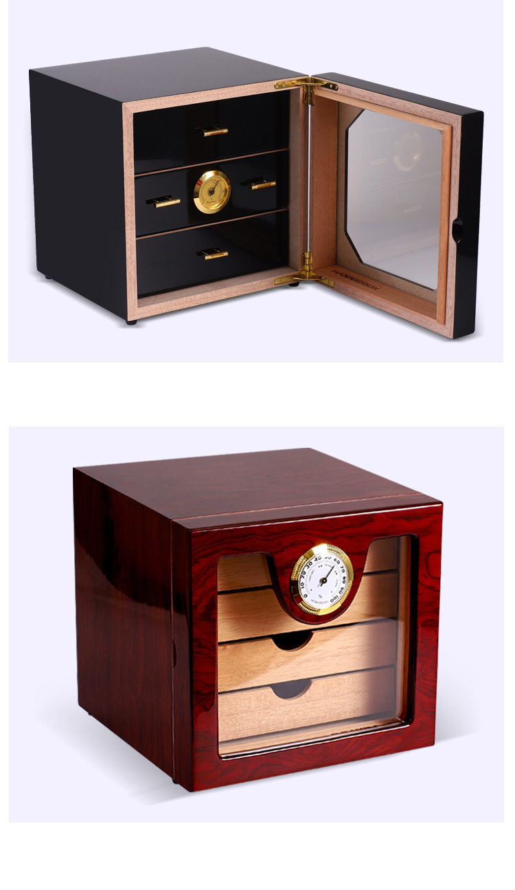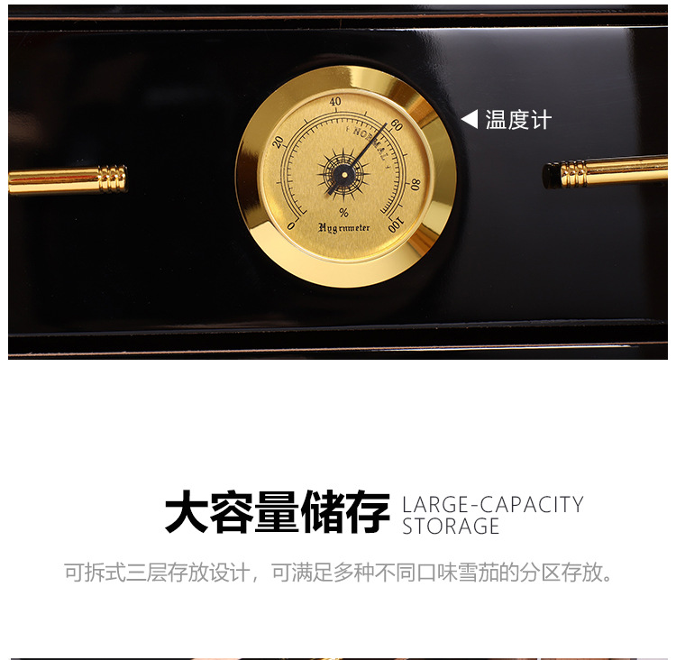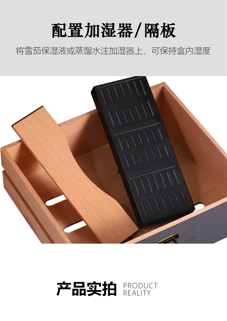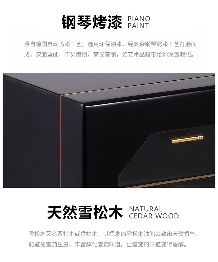 HANNICOOK黑色高光钢琴漆雪茄盒雪茄柜雪松木雪茄箱雪茄保湿盒柜