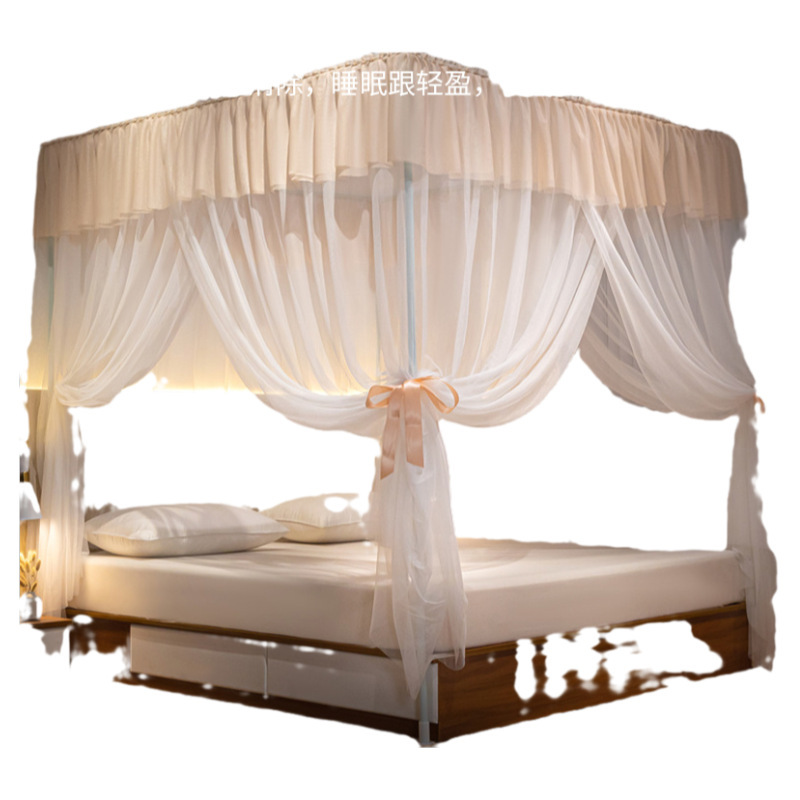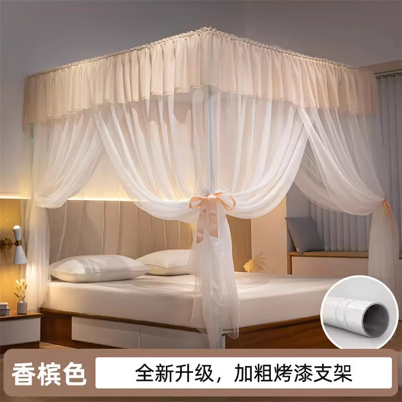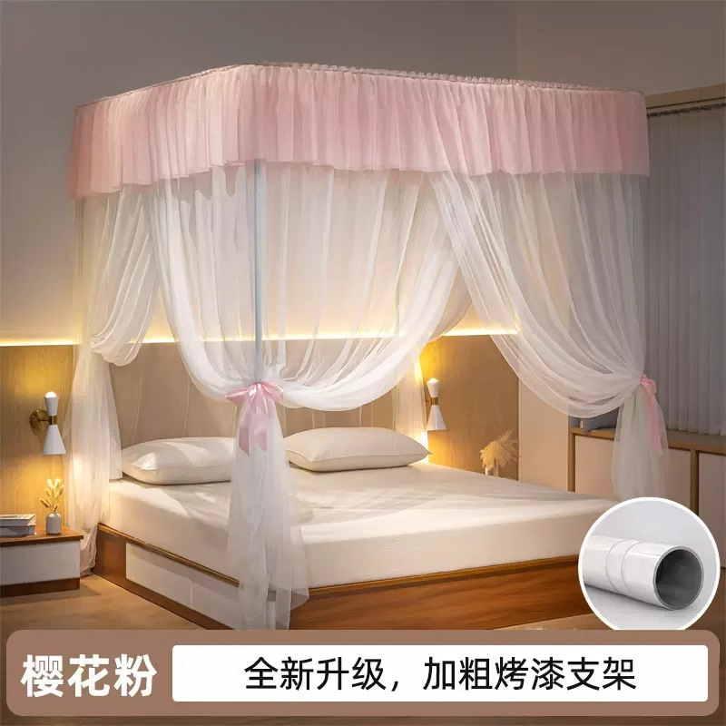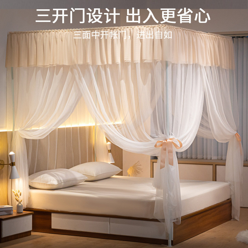 2025新款蚊帐家用宫廷卧室三开门通用加厚落地支架免安装纹帐批发