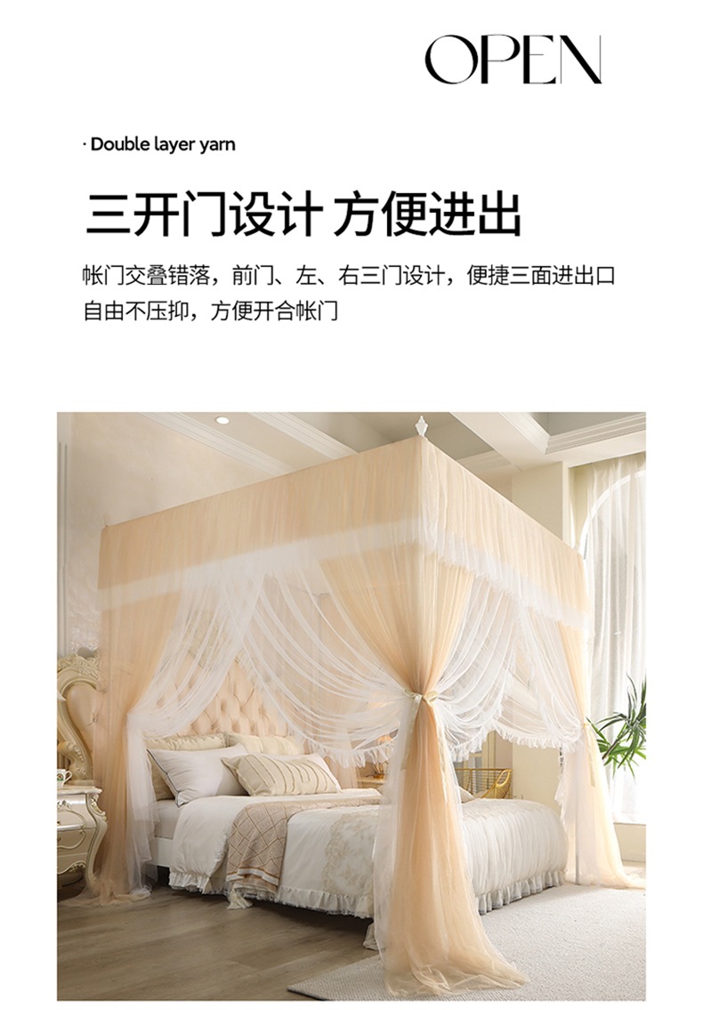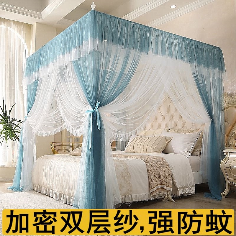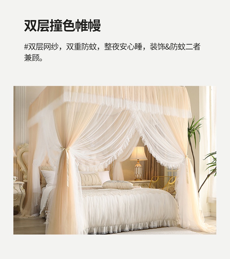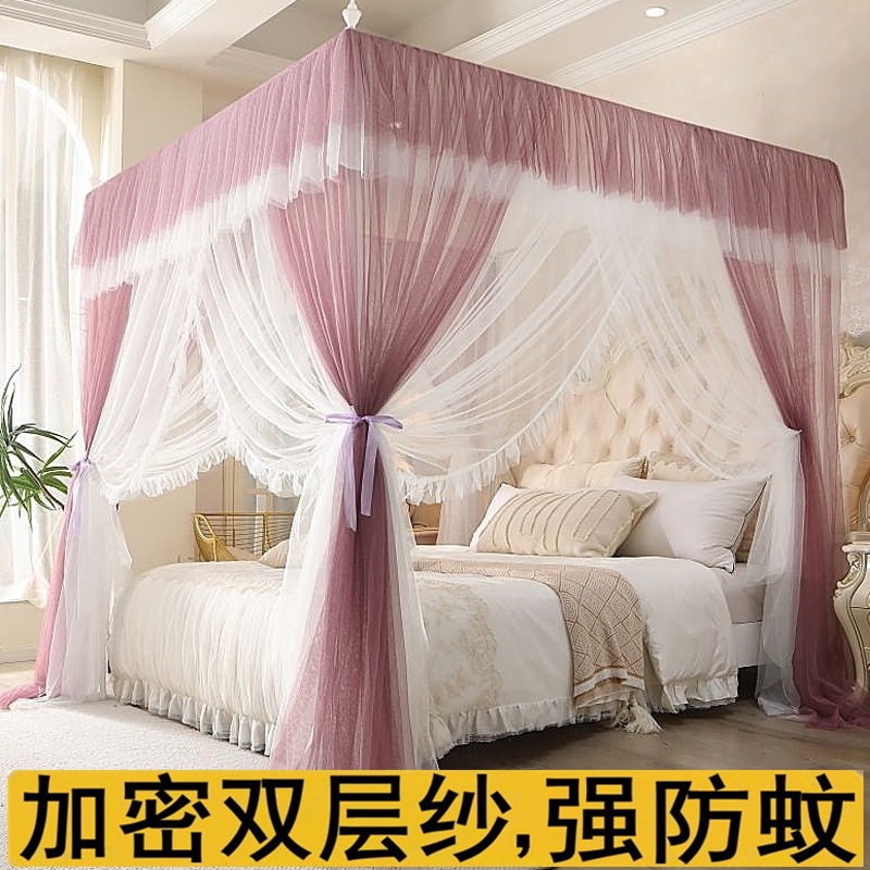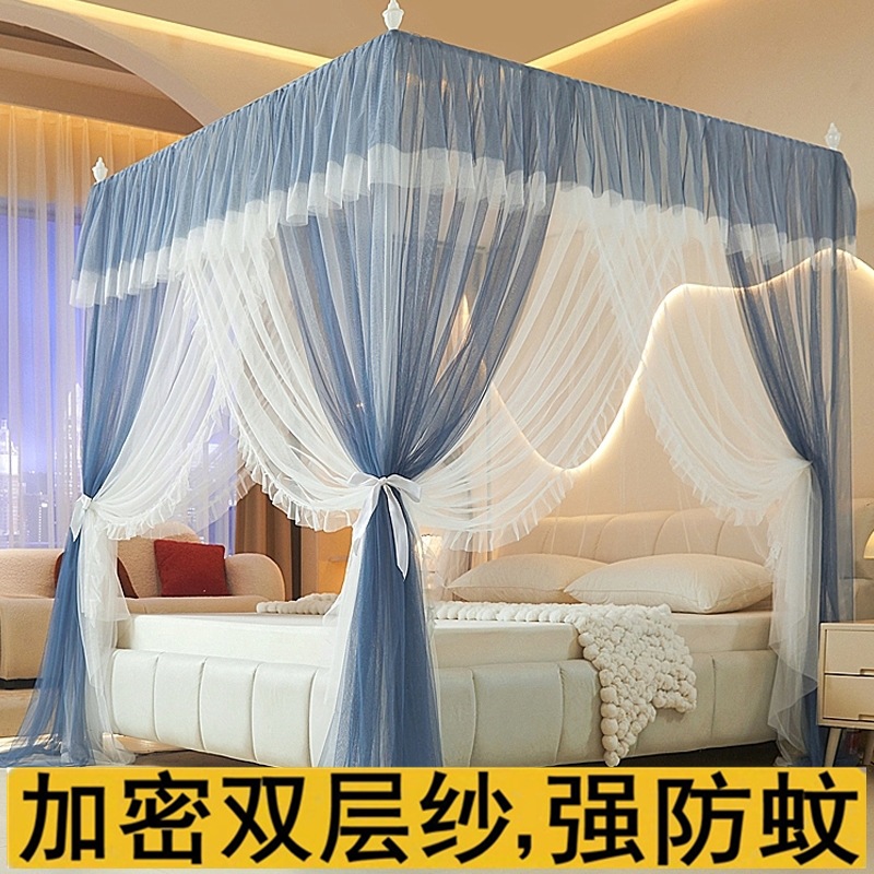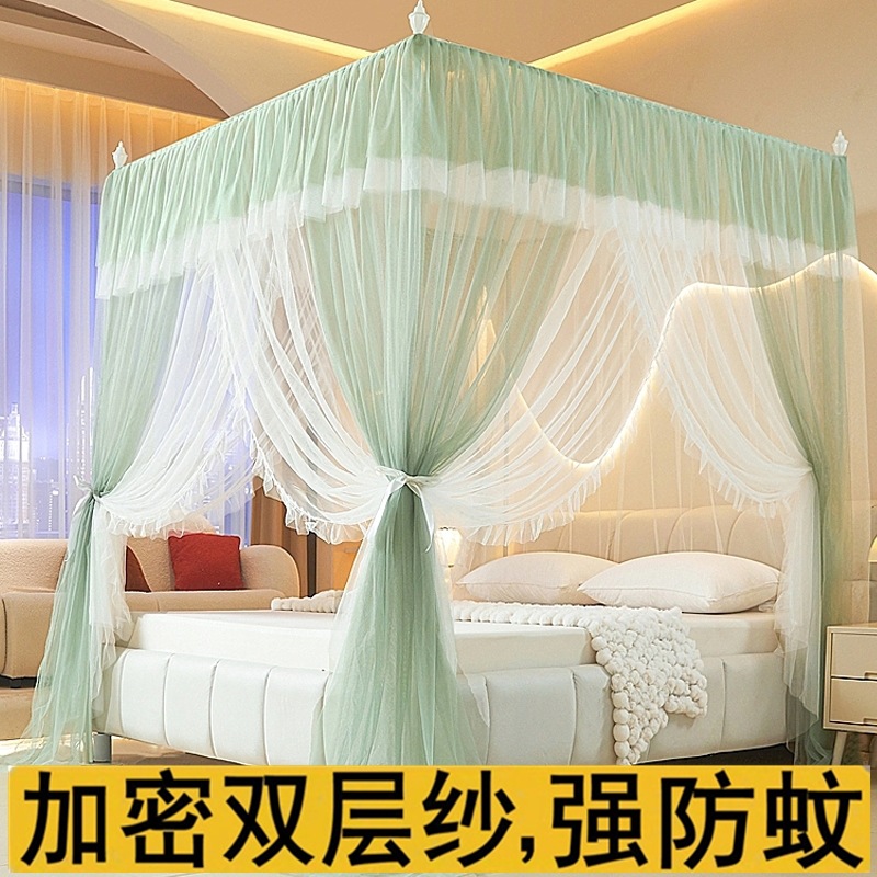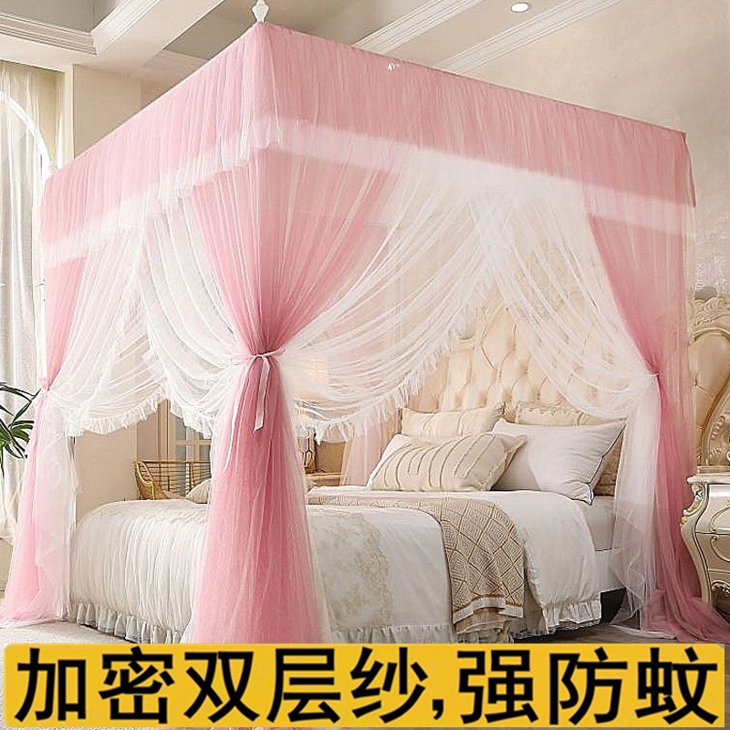 双层纱蚊帐新款宫廷落地家用1米8大床公主风老式三开门加密纹帐子