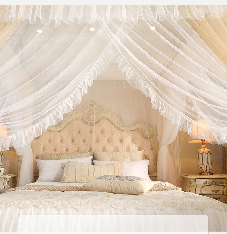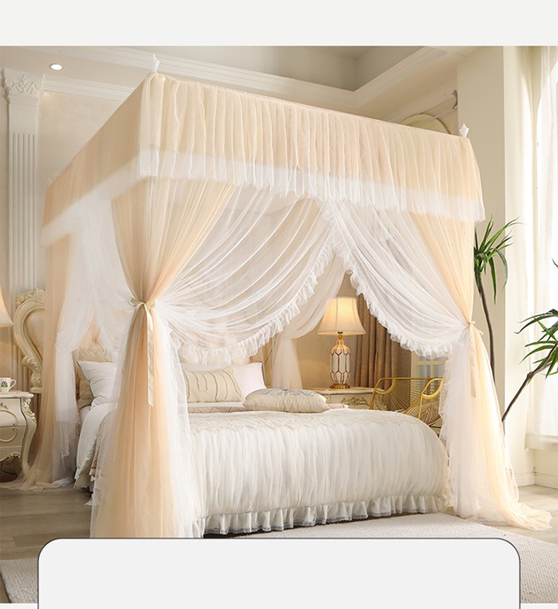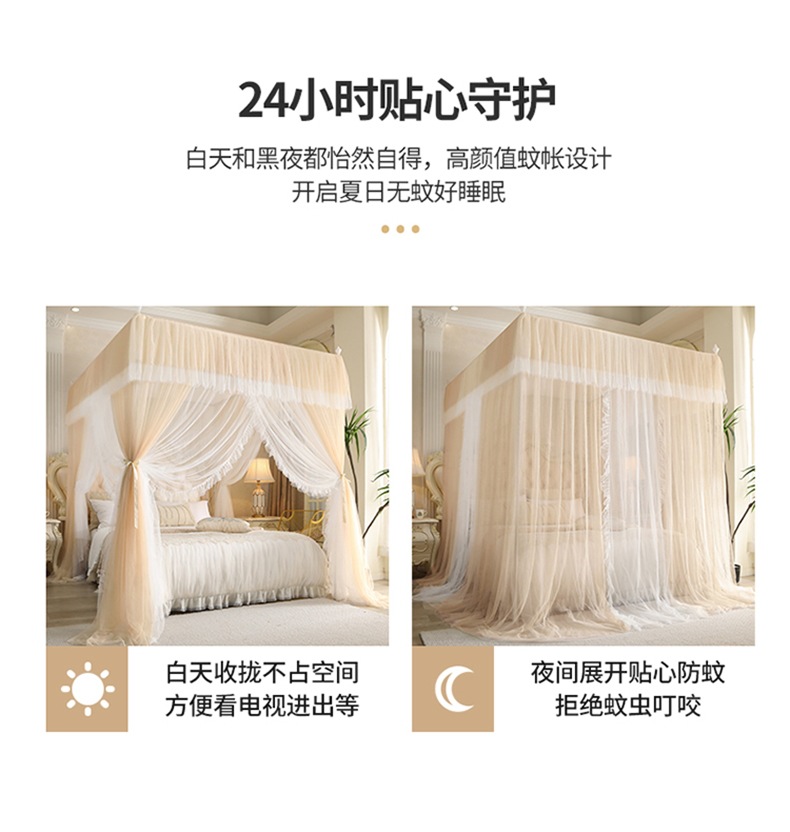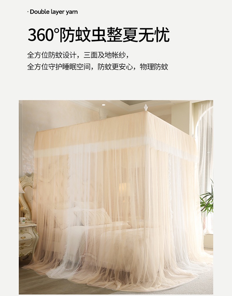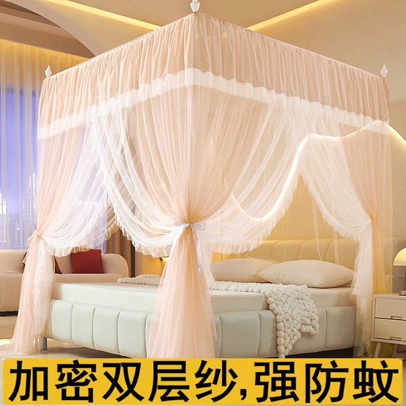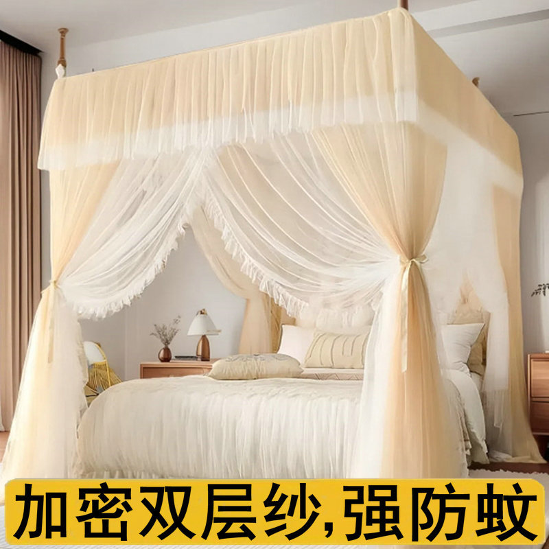 双层纱蚊帐新款宫廷落地家用1米8大床公主风老式三开门加密纹帐子