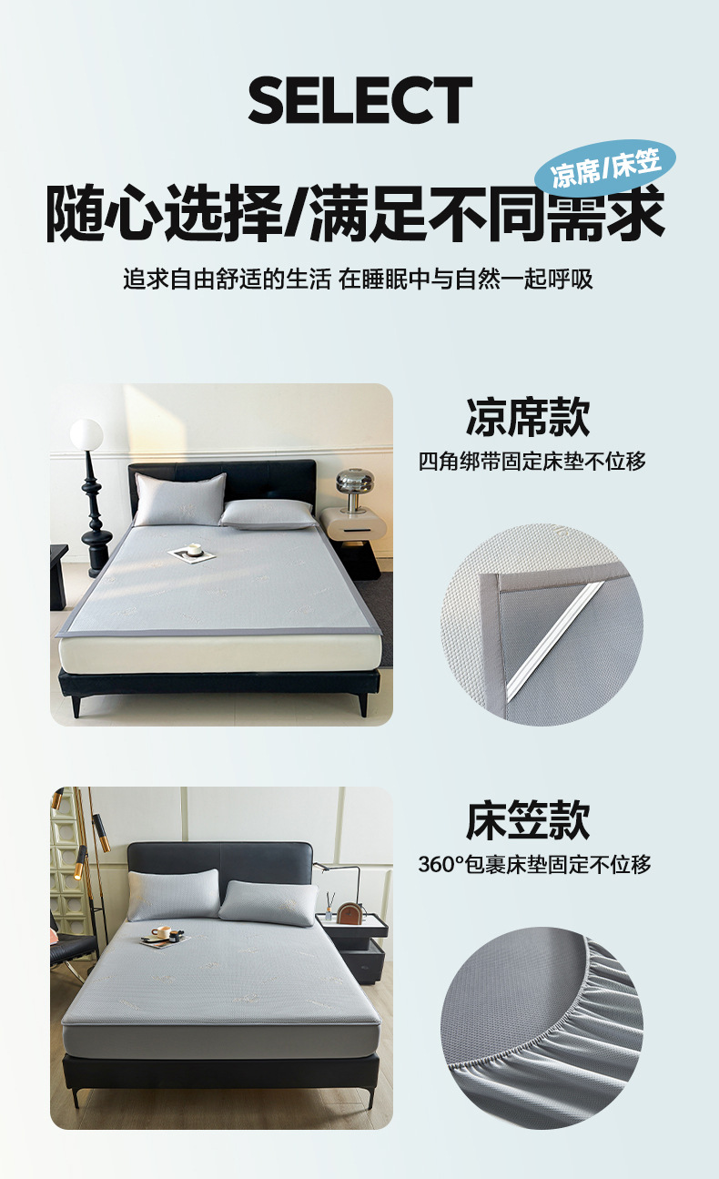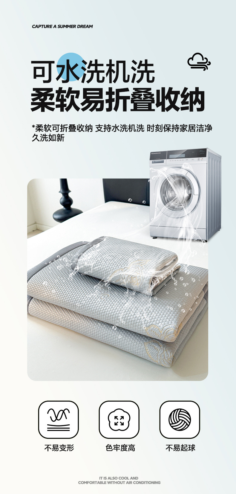 A类夏季凉豆豆冰丝凉席母婴级可机洗空调席凉感可折叠床笠软席子