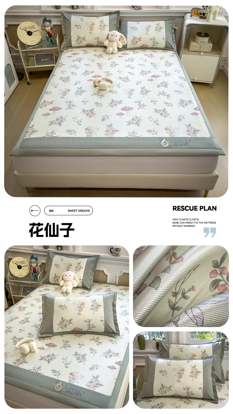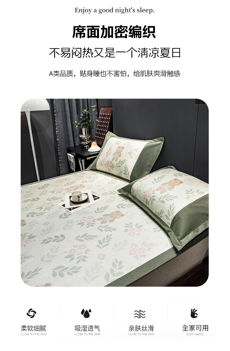 | 180 * 200cm ice rattan mat three-piece set-fitted sheet(180*200cm冰藤席三件套-床笠款) | USD $27.27 | 2535 bed available |