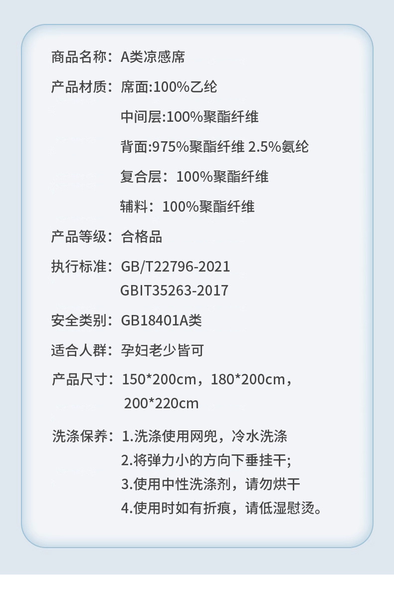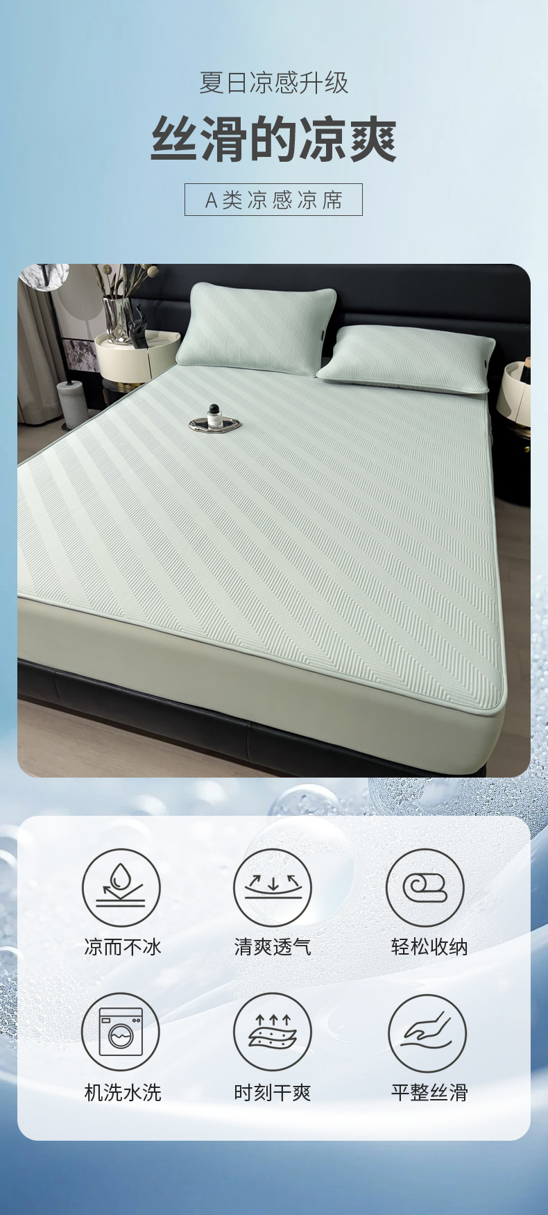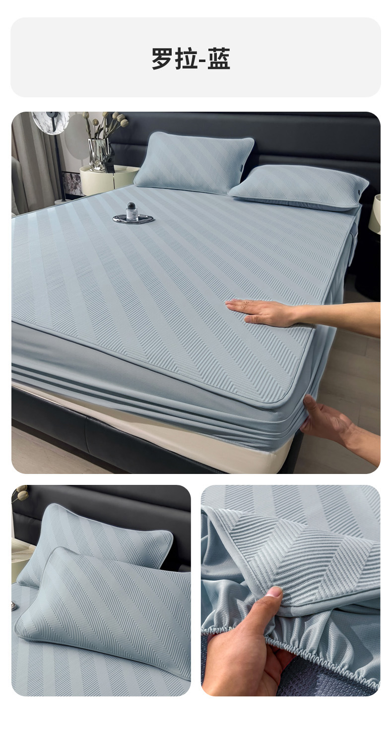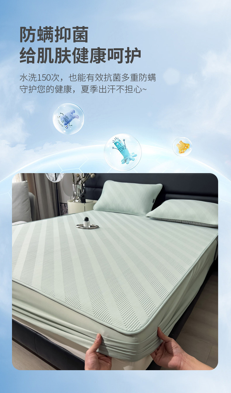 轻奢高端冰豆豆凉席床笠A类母婴级PE冰丝凉席三件套可机洗空调席