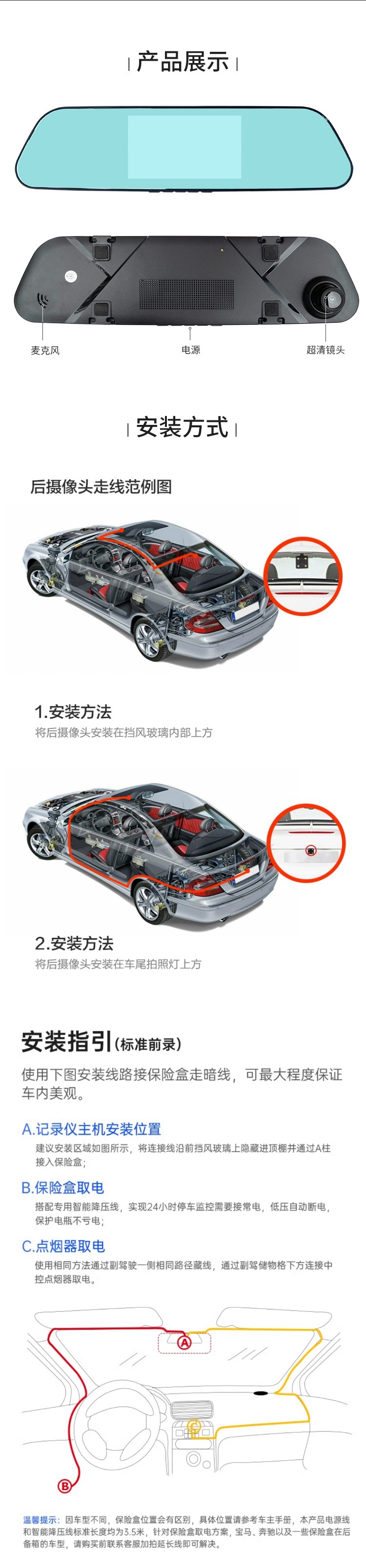 高清双镜头行车记录仪前后双录倒车影像4.5寸后视镜1080P批发包邮
