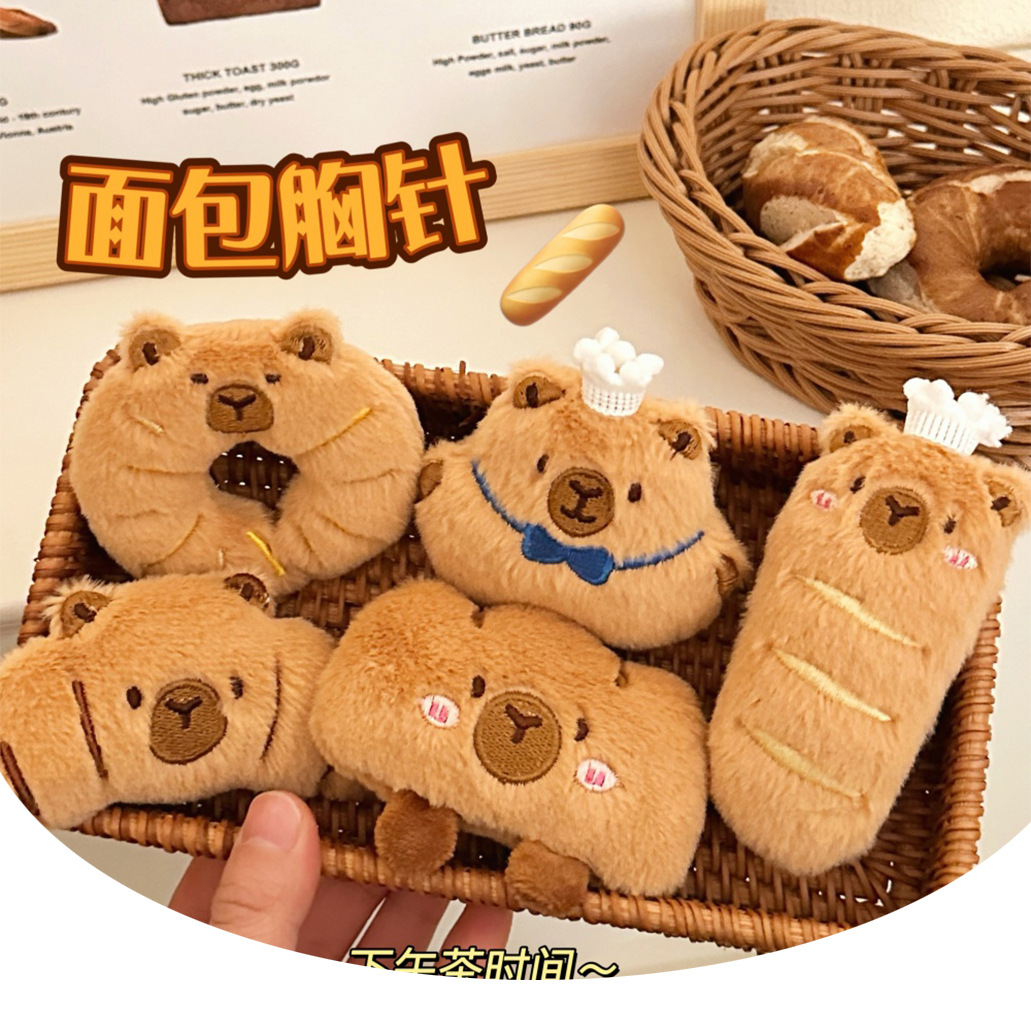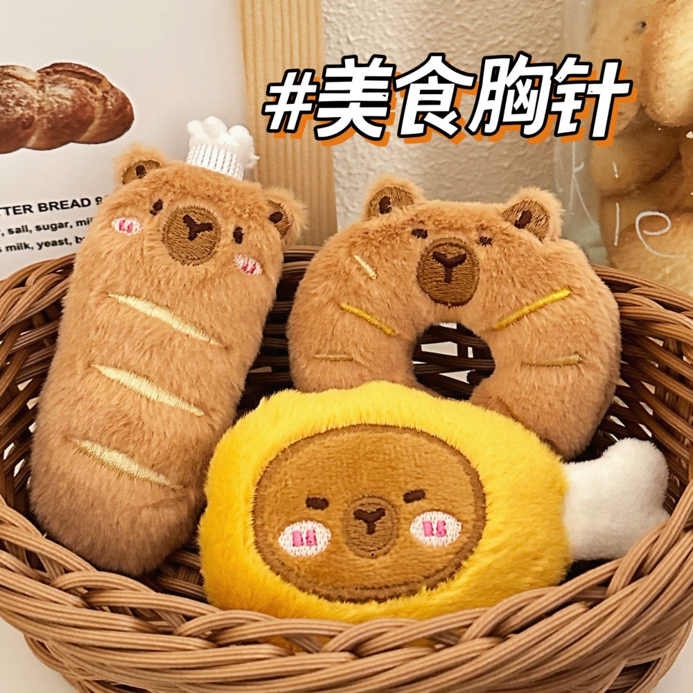 创意可爱豚豚美食胸针少女卡通装饰玩偶食玩公仔面包水豚别针批发