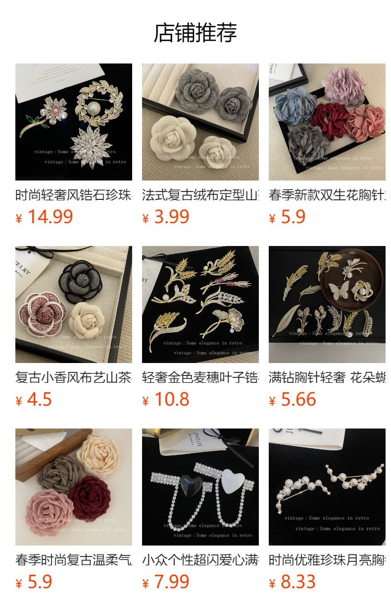 时尚中古胸针别针小众复古山茶花珍珠胸花轻奢高级感小香风胸针女