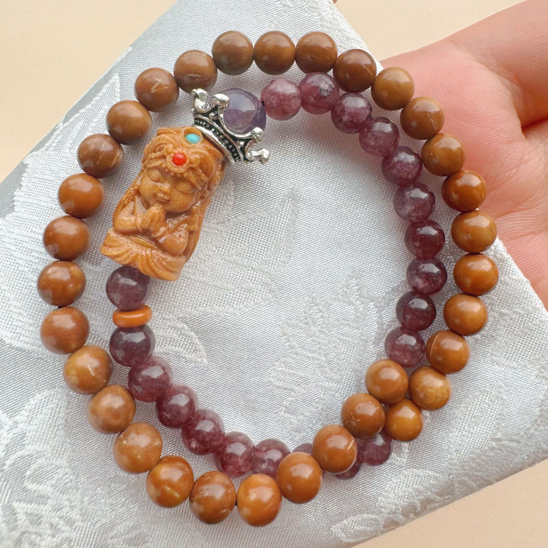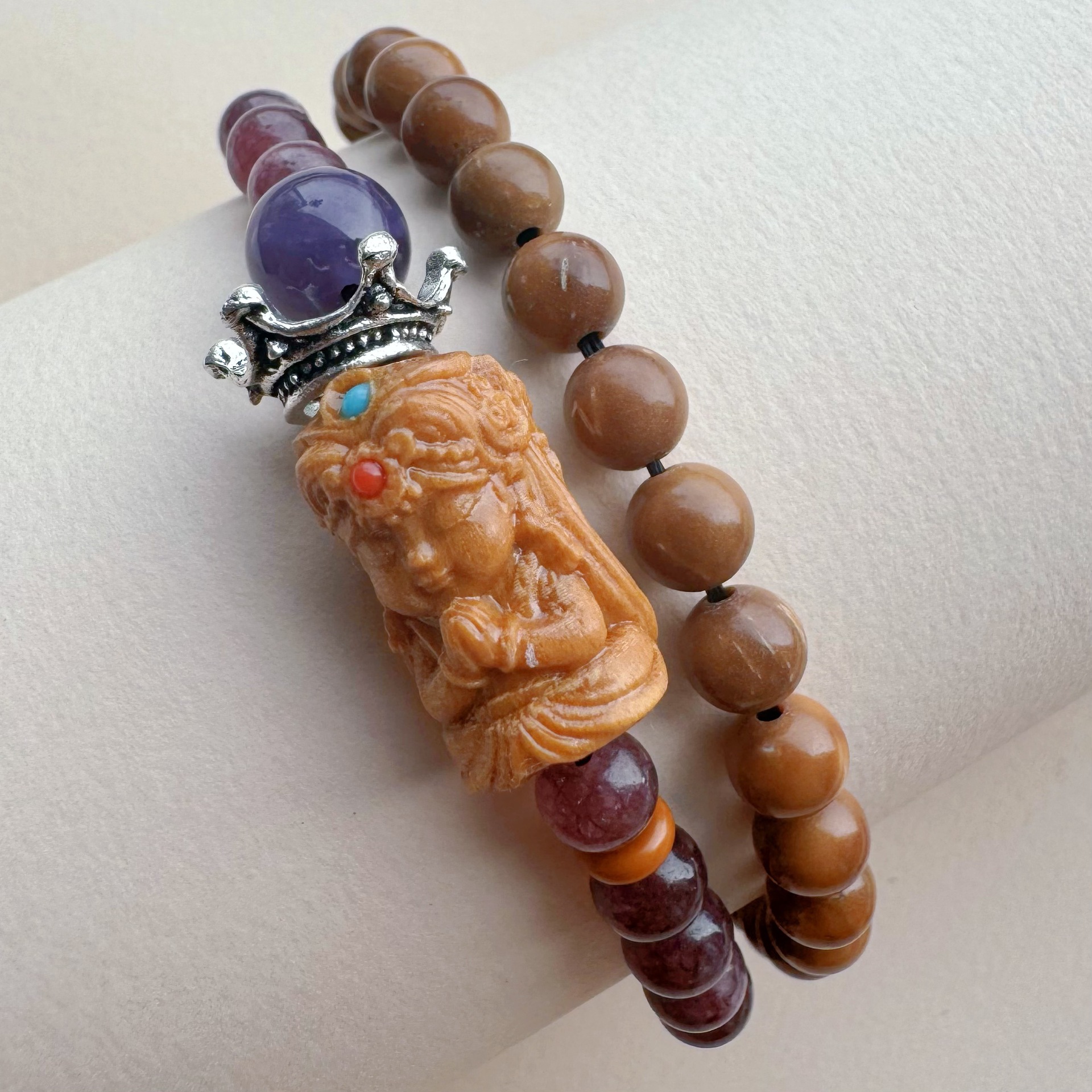 天然手串精品库克菩提紫水晶双圈扎基拉姆小清新女生手链情侣手饰