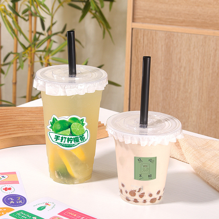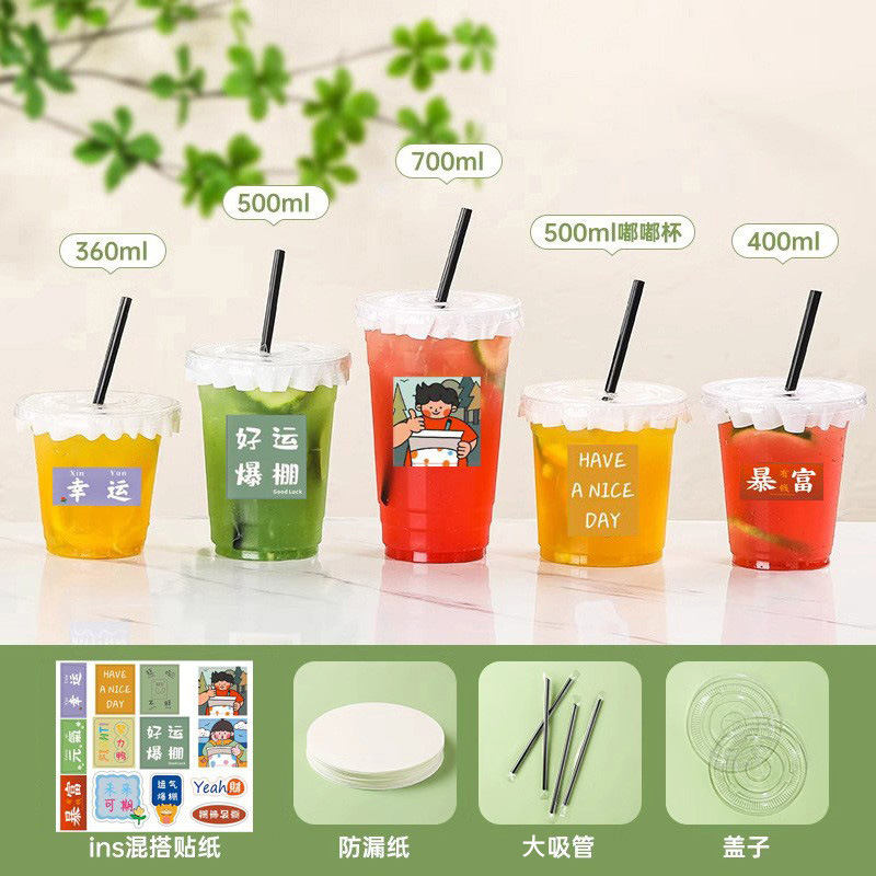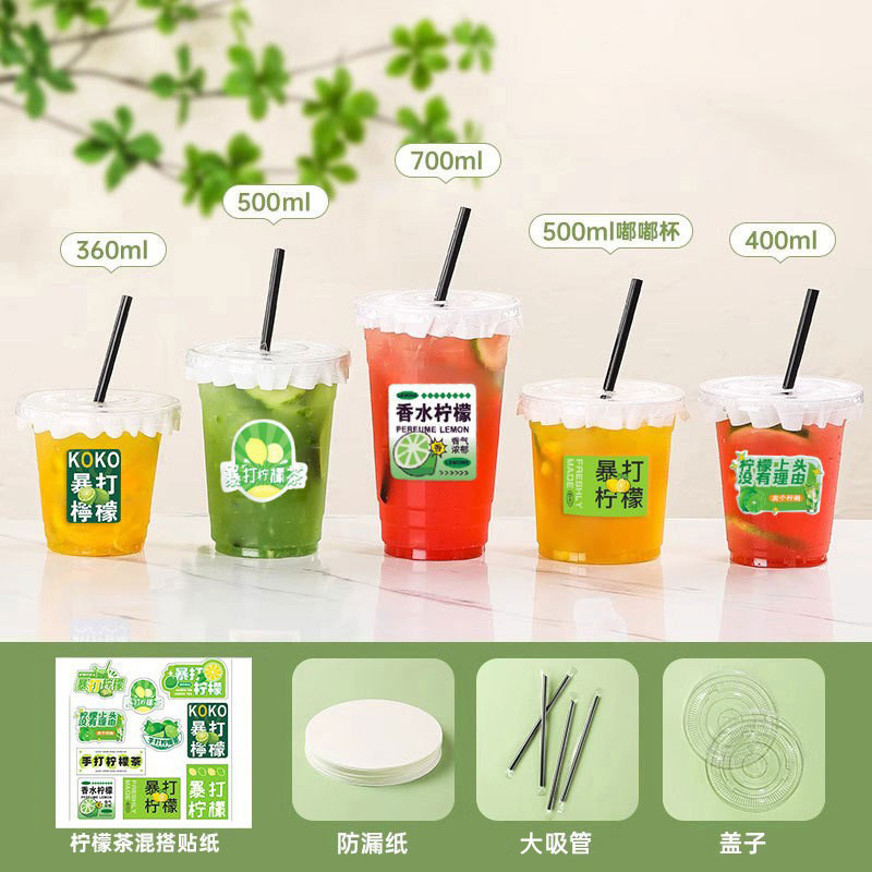柠檬茶杯子批有盖子饮料冷饮塑料杯带吸管一次性高颜值摆摊奶茶杯